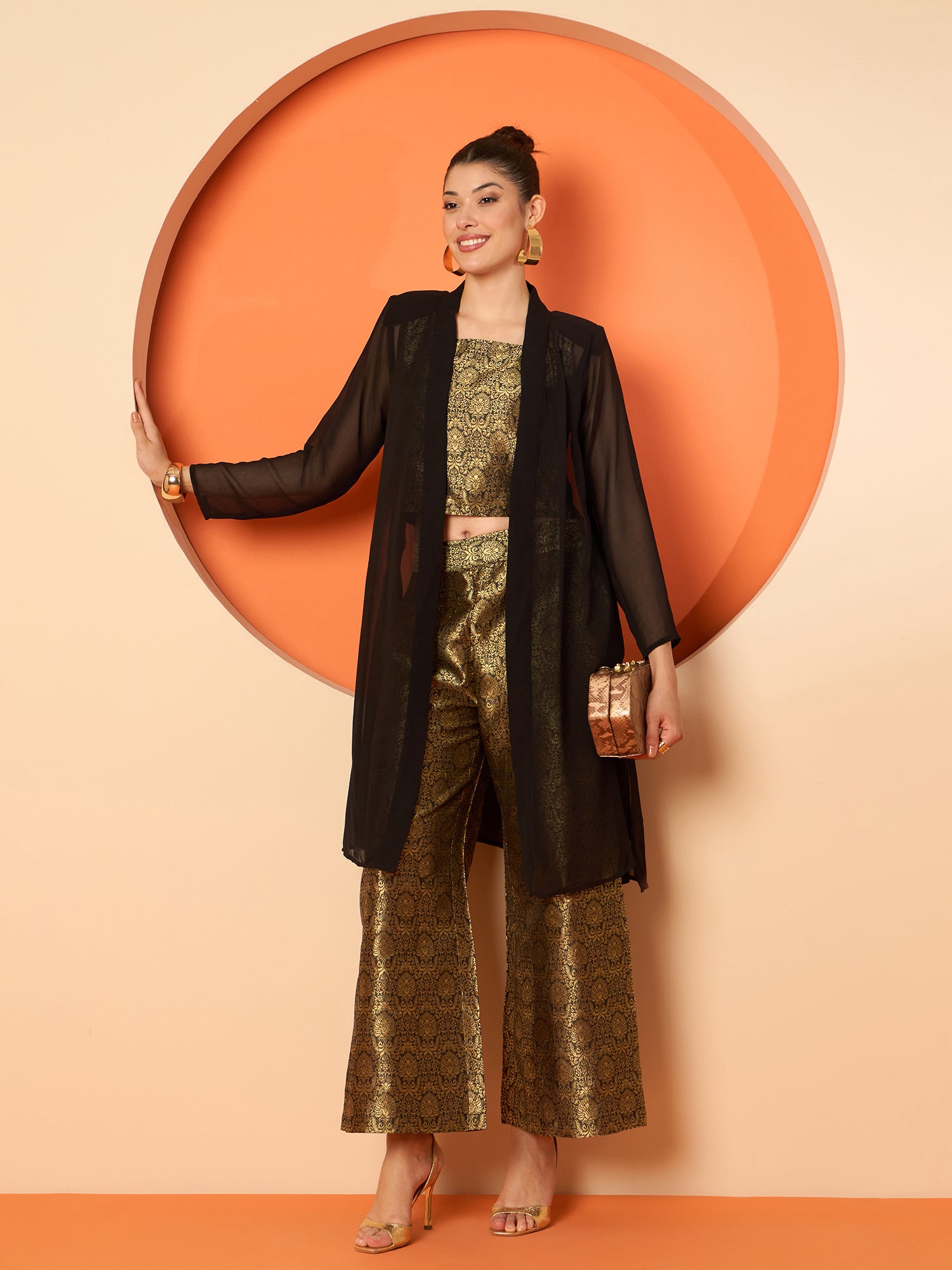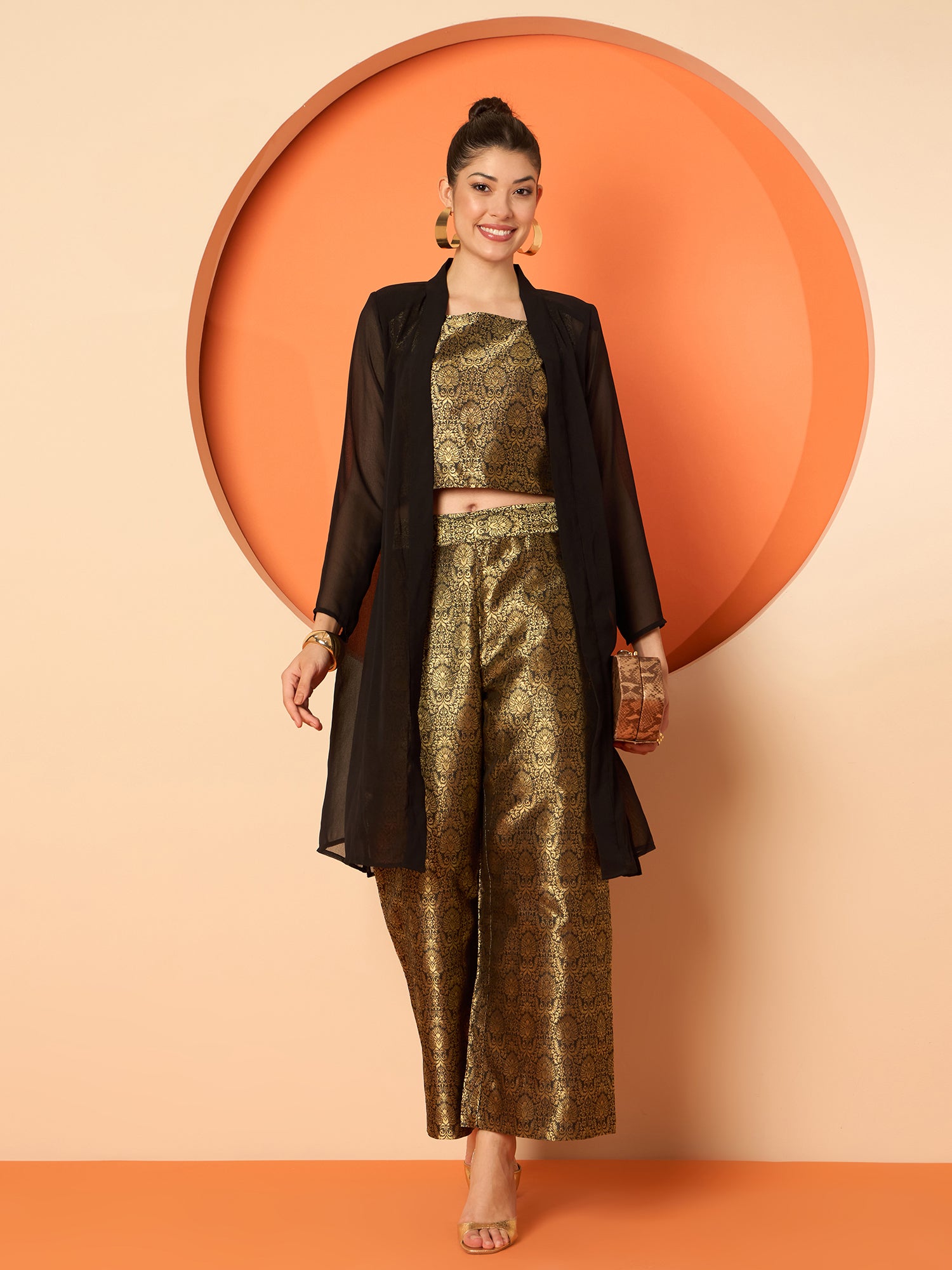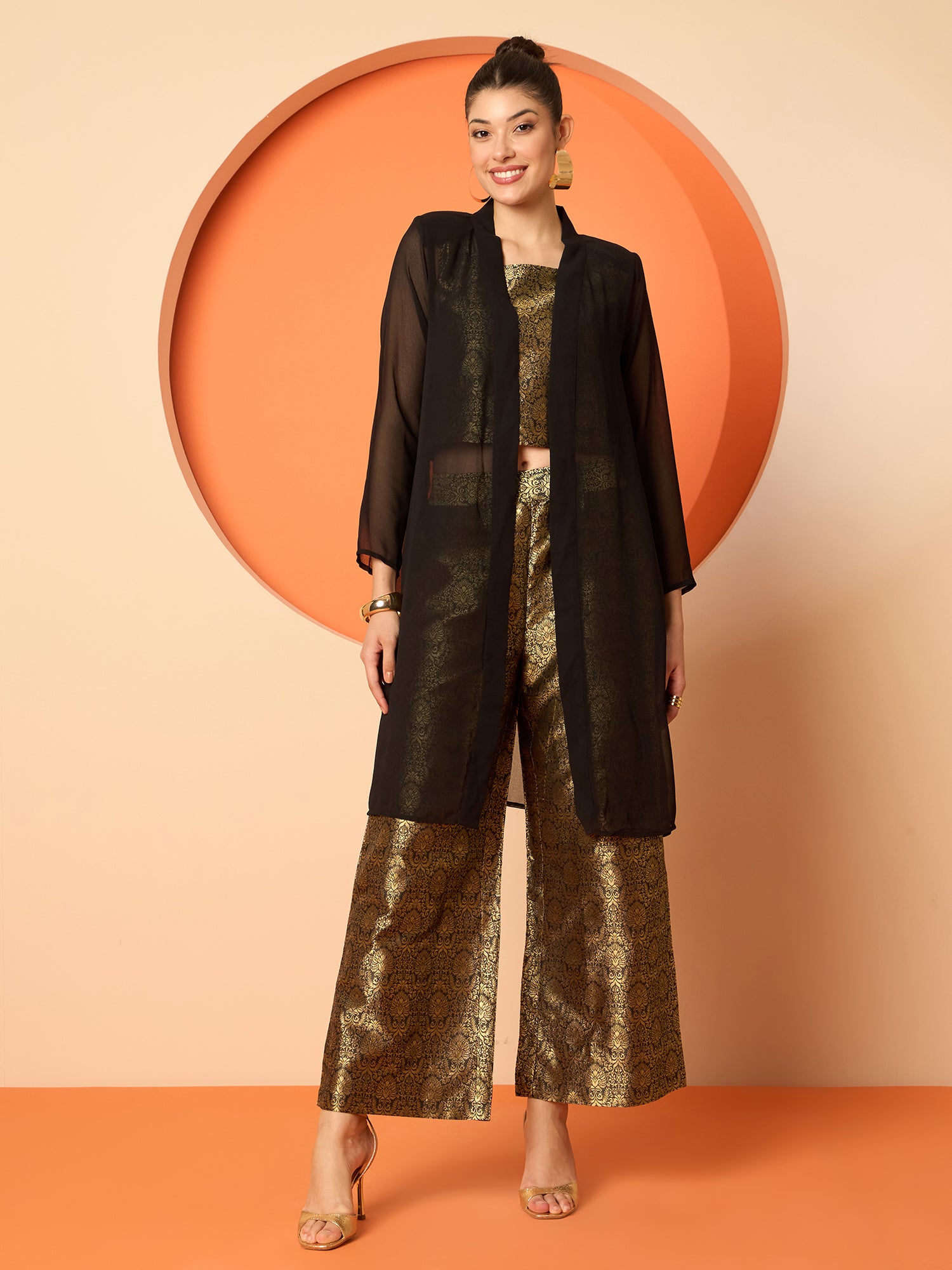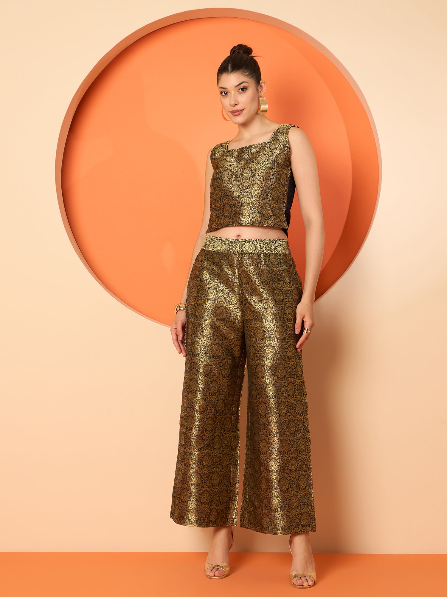 Antheaa Brocade Square Neck Sleeveless Top With Brocade Trousers