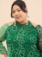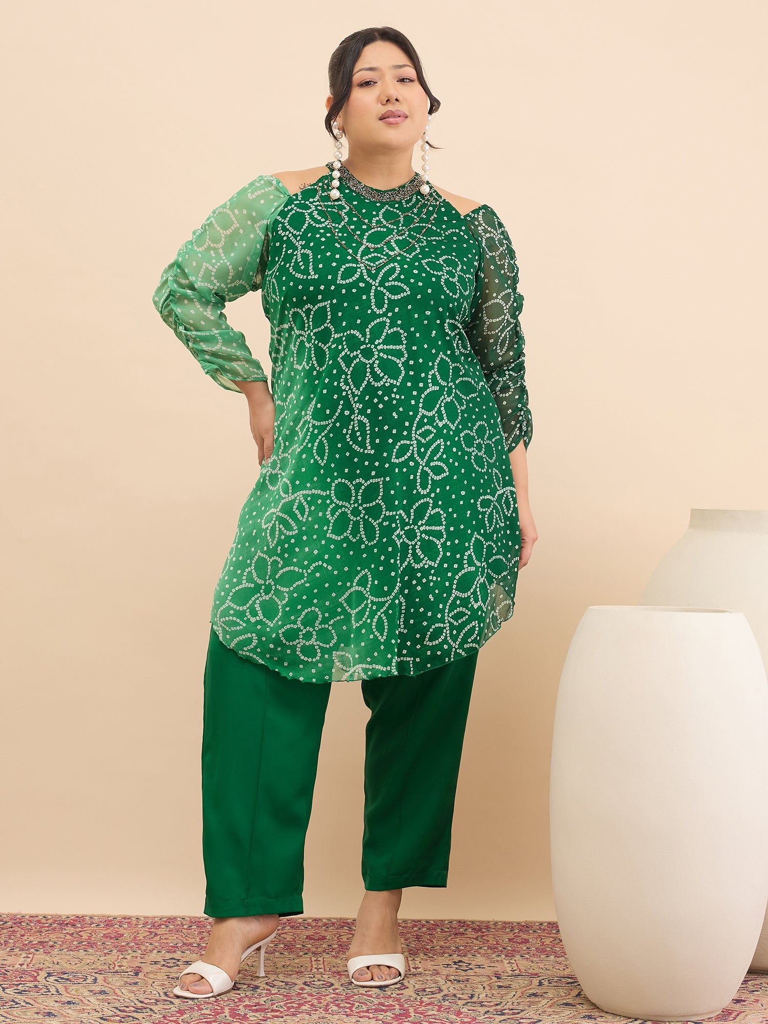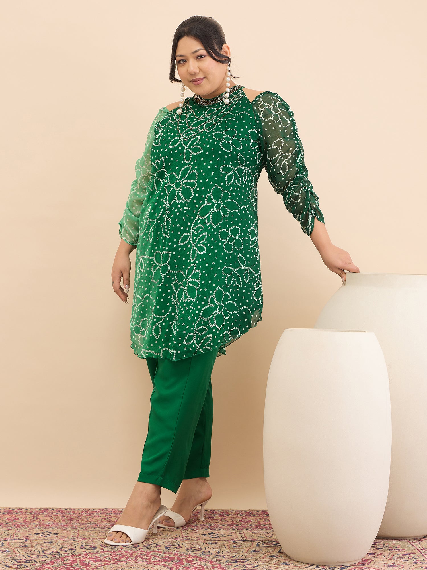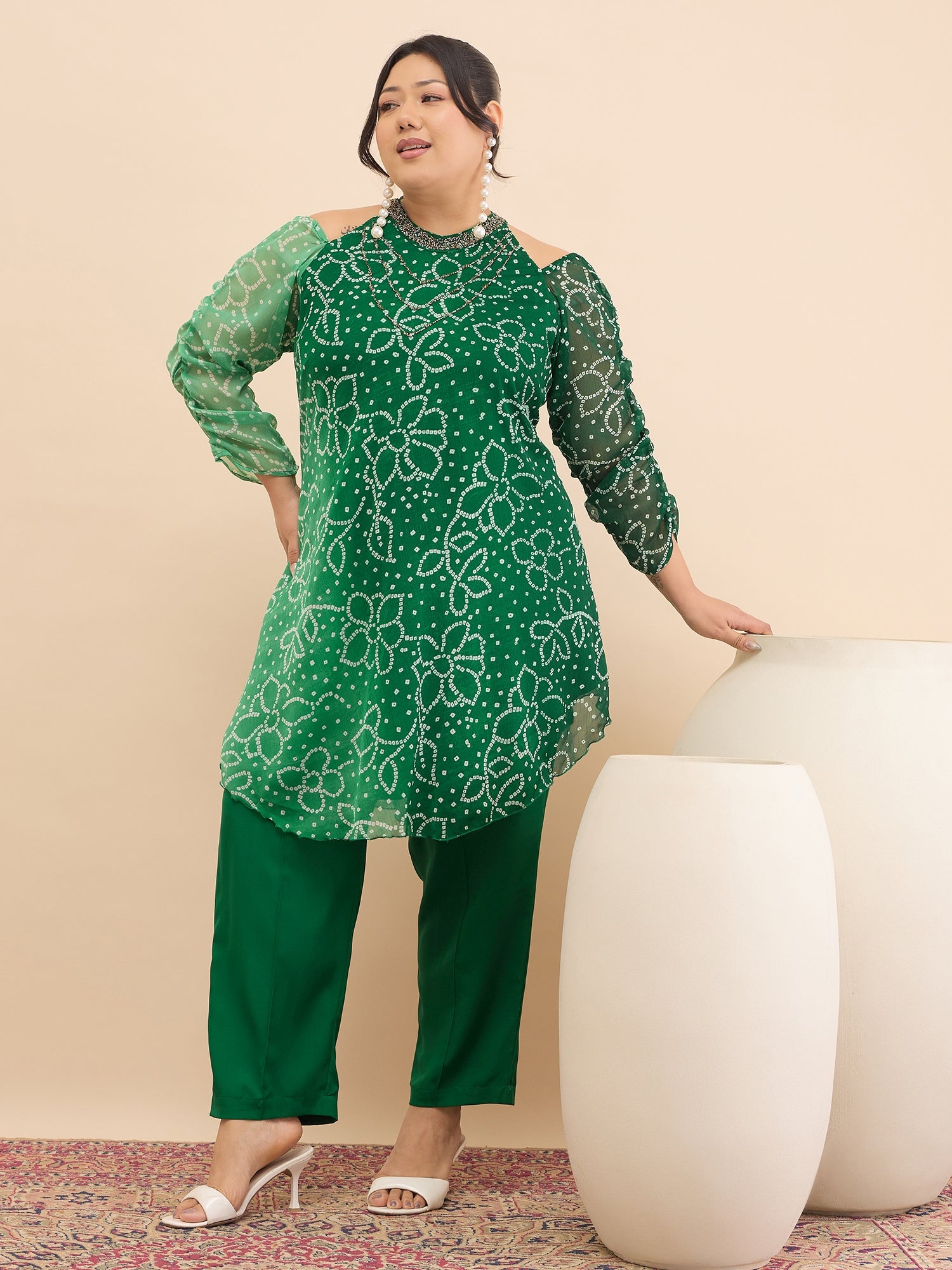 Antheaa Curve Embellished & Printed Mandarin Collar Top & Trousers Co-Ords