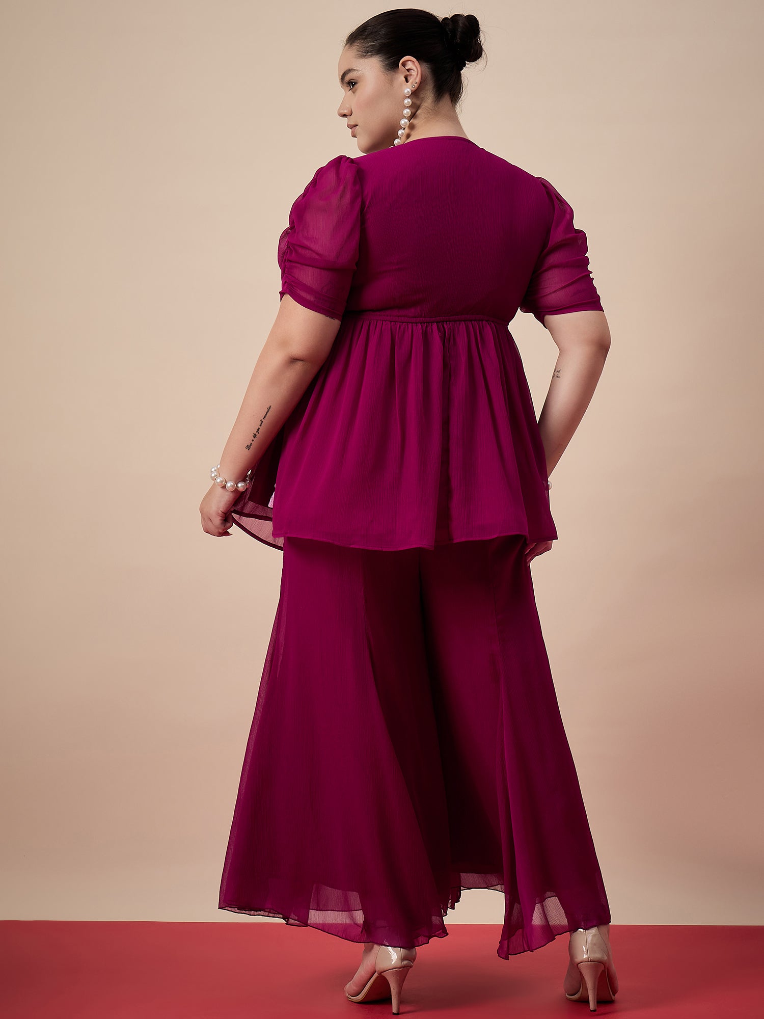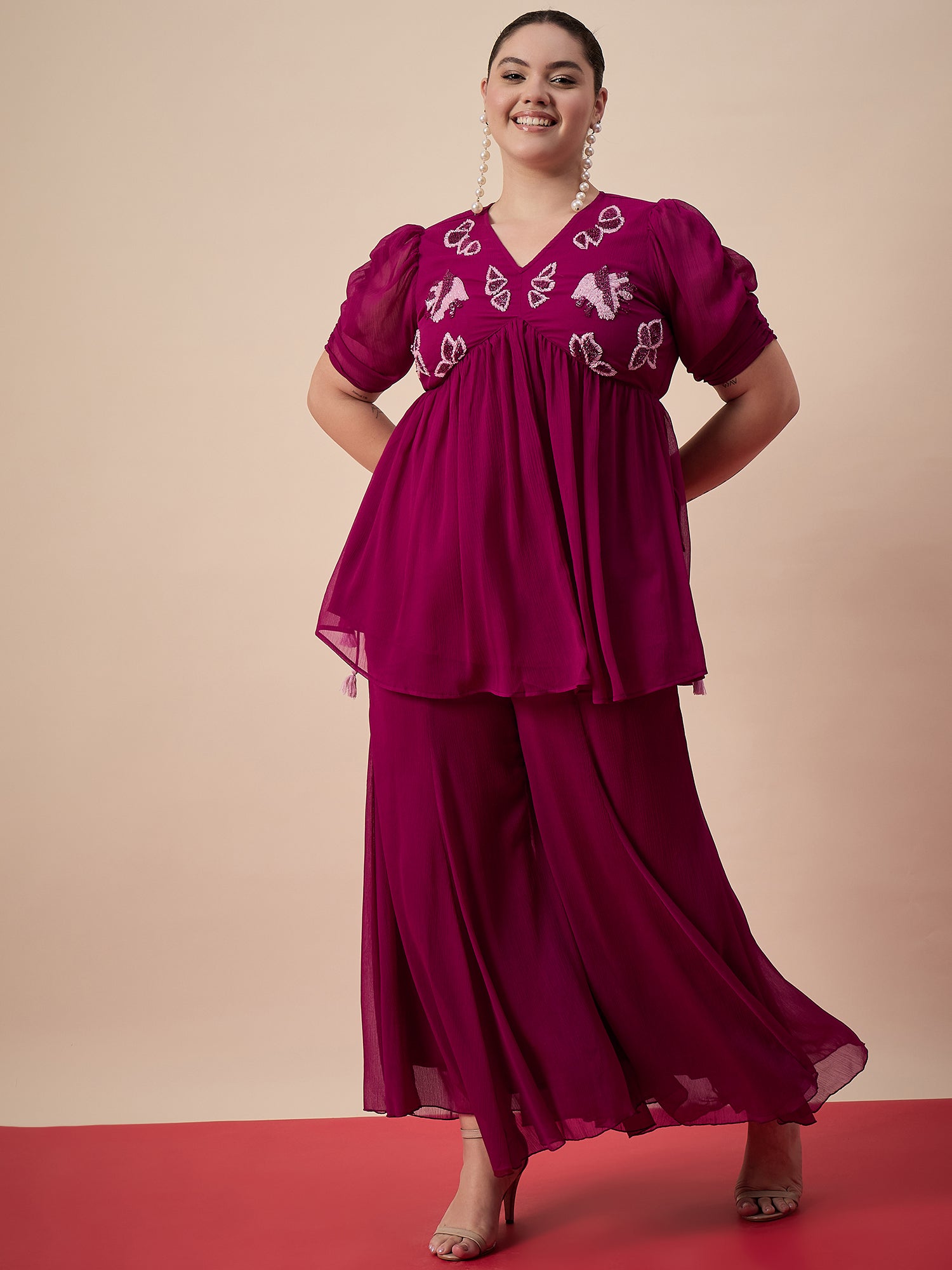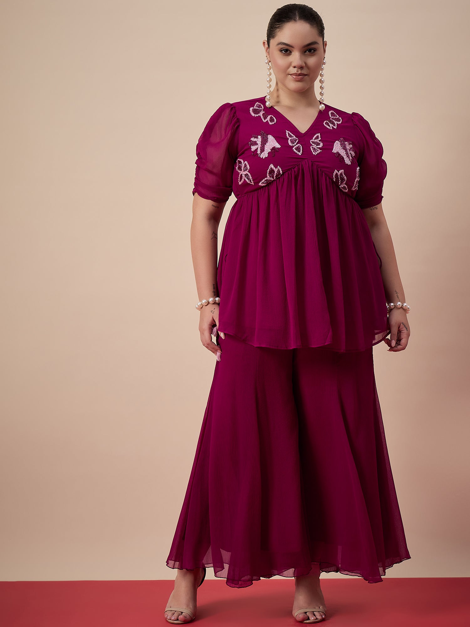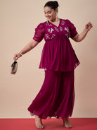Antheaa Curve Embellished Top With Plaazzos