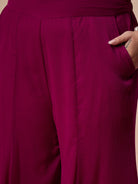 Violet solid palazzos, has a slip on closure and straight hemline
