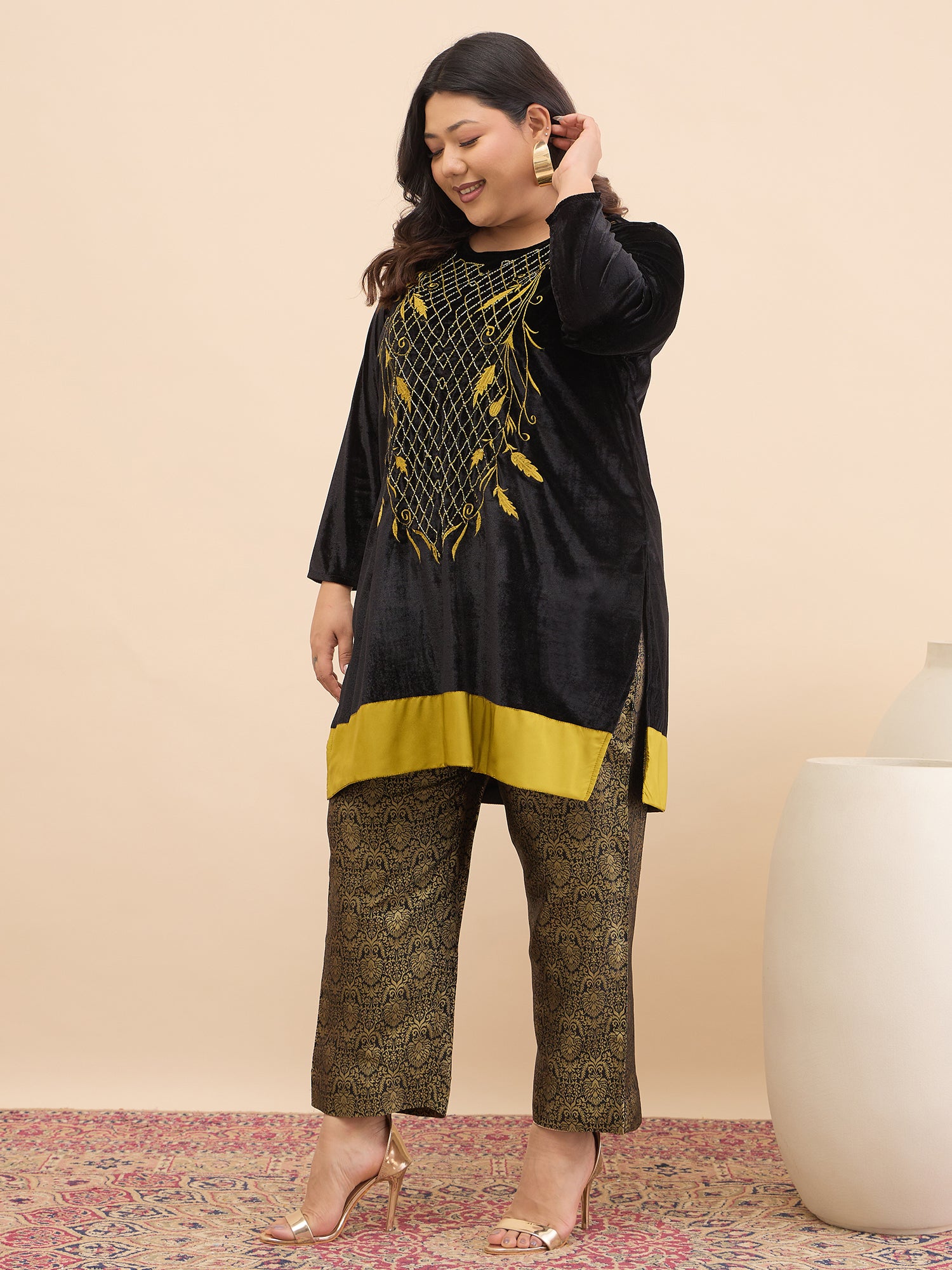 Antheaa Curve Embroidered Round Neck Top & Trousers Co-Ords
