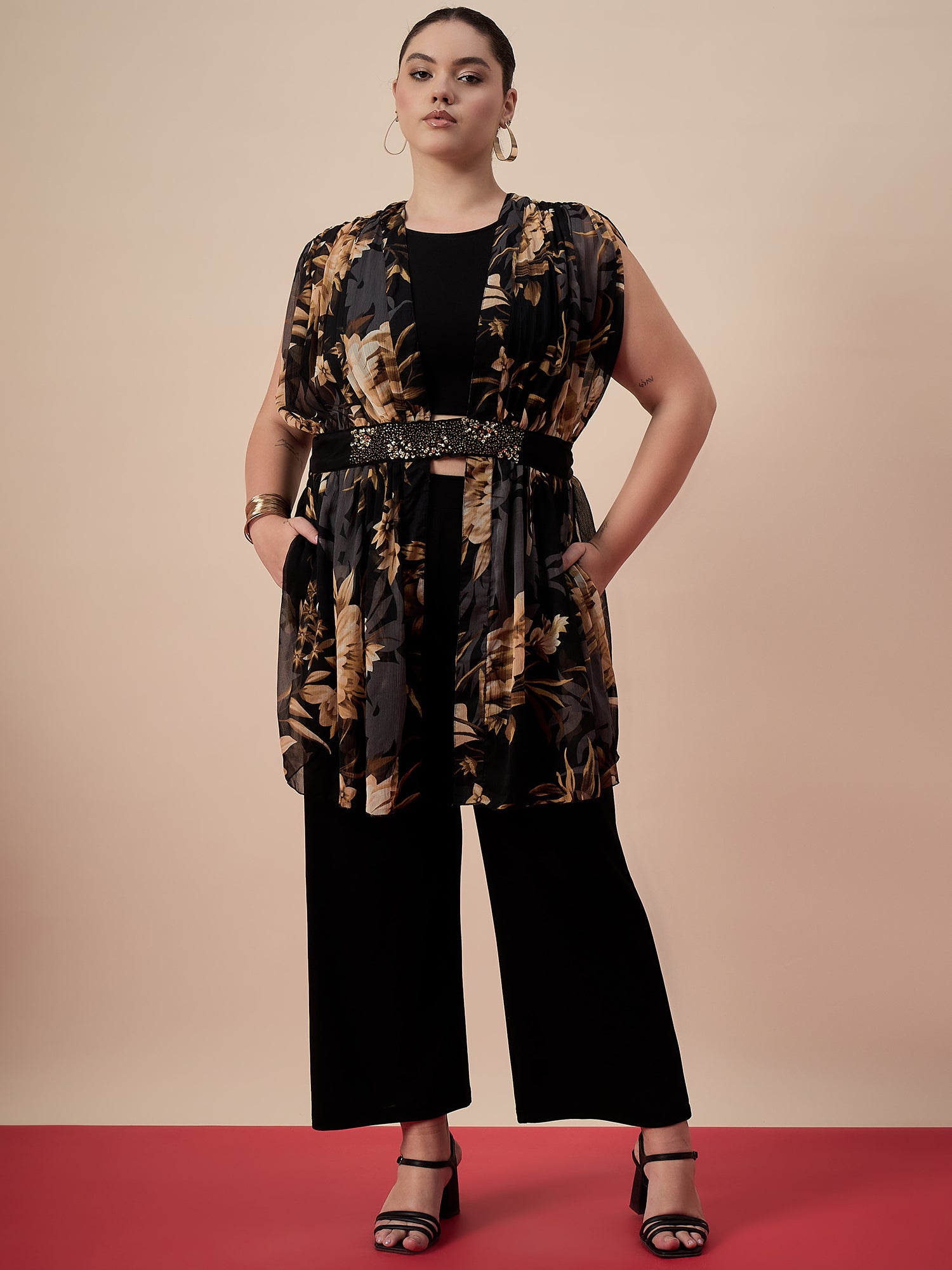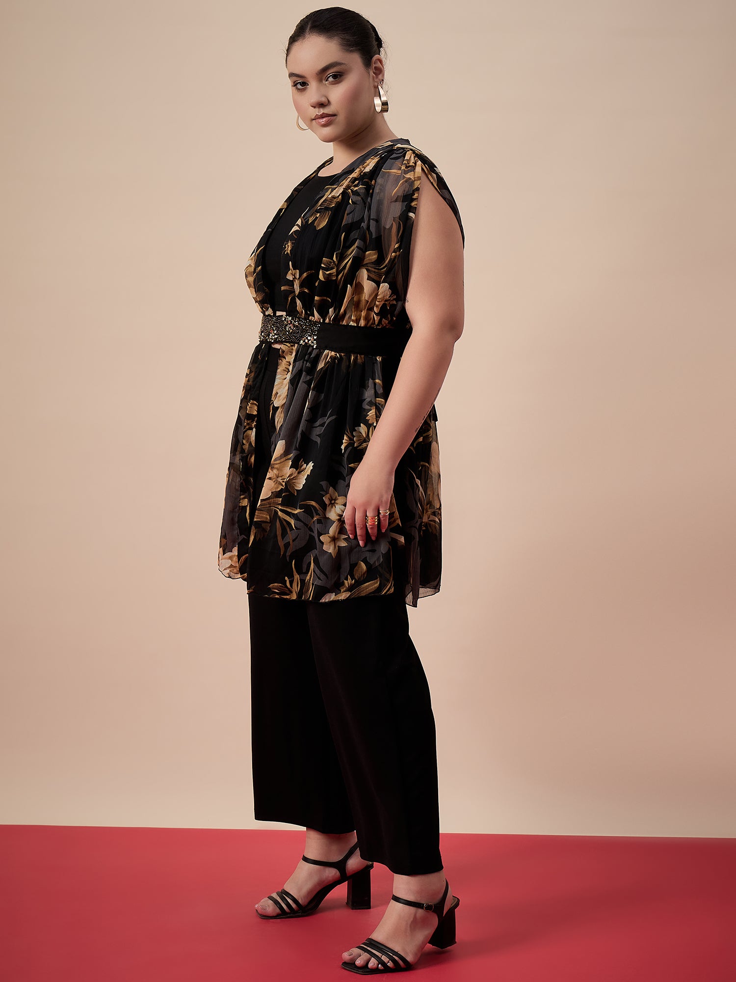 Antheaa Curve Printed & Embellished Round Neck Plus Size Top And Trouser