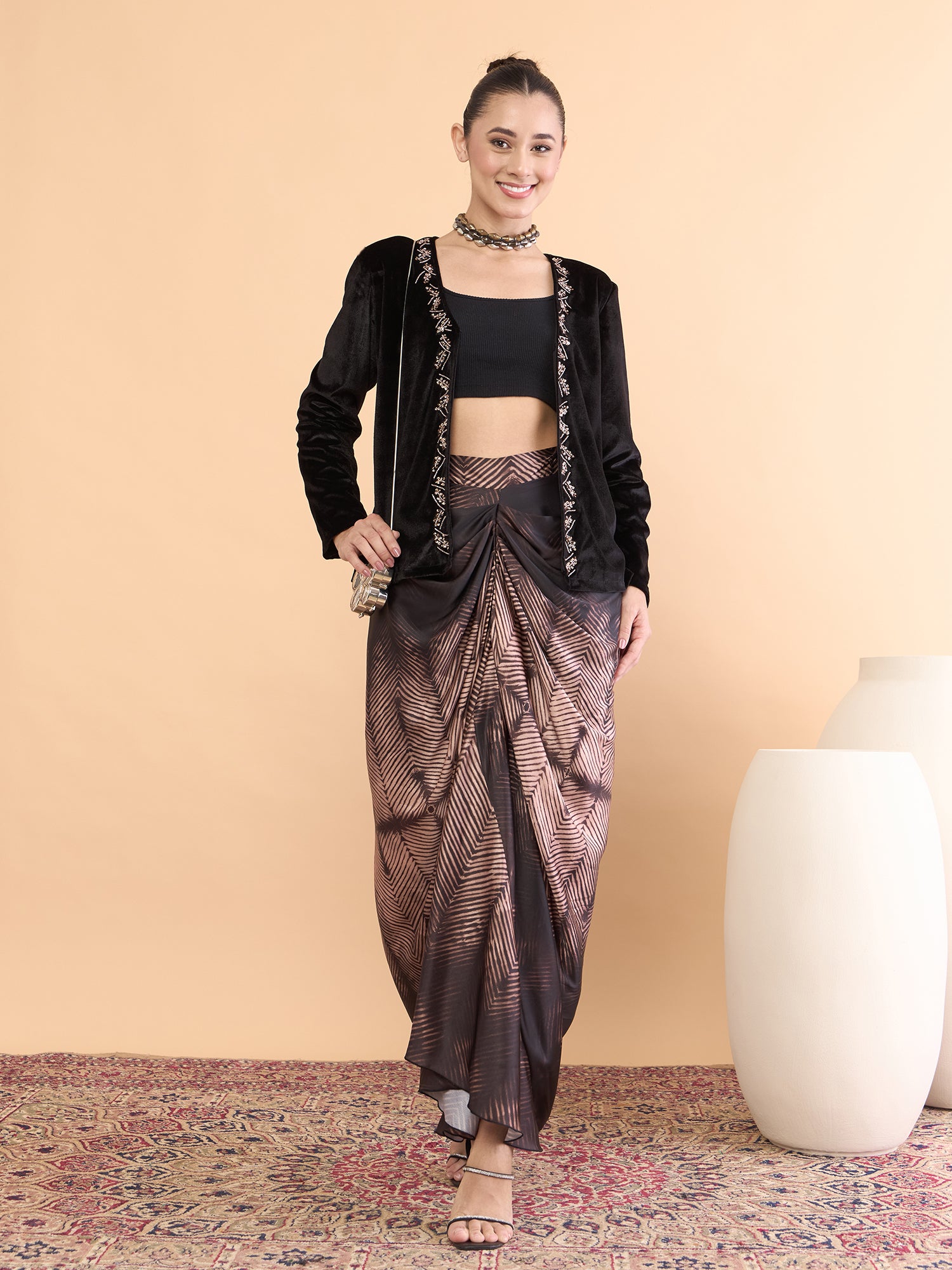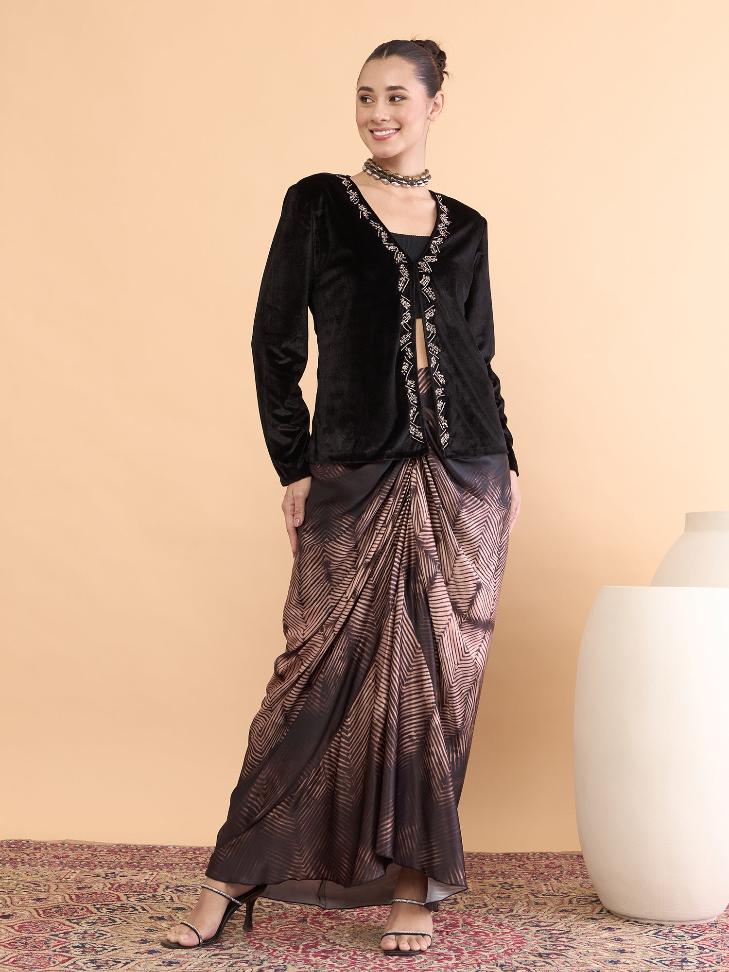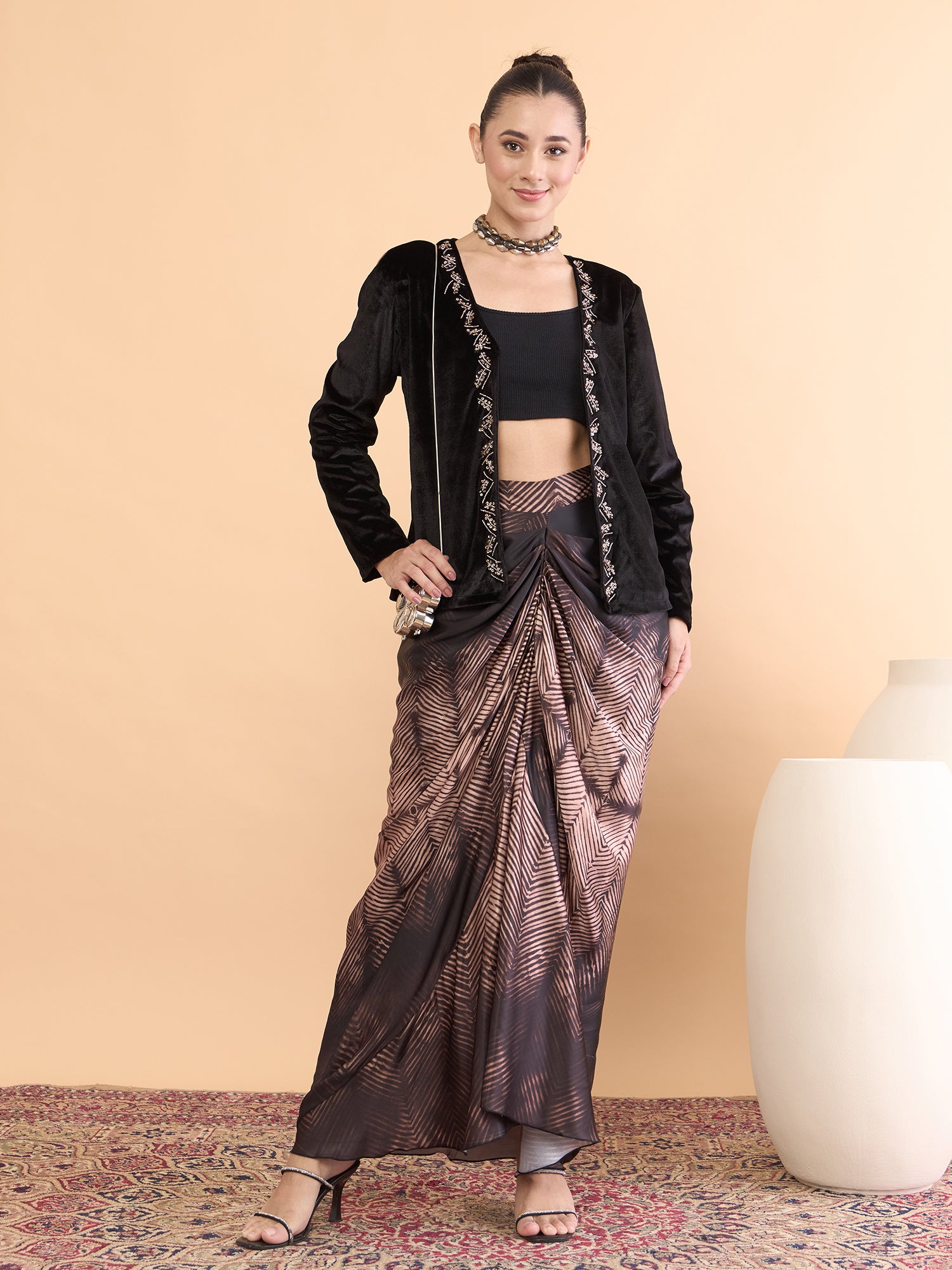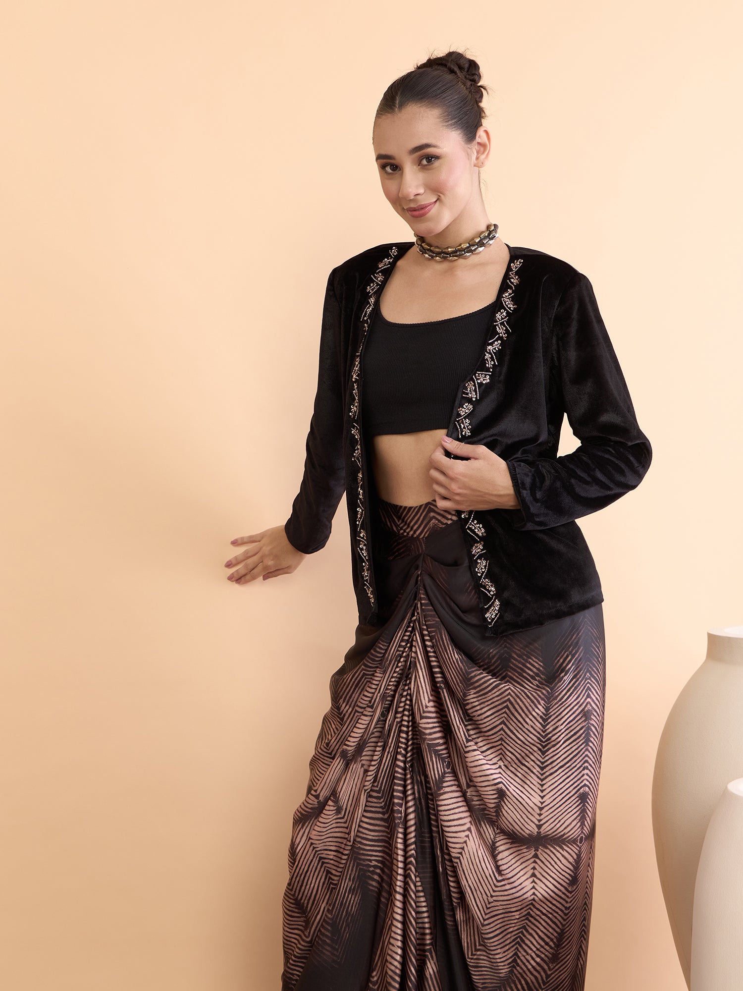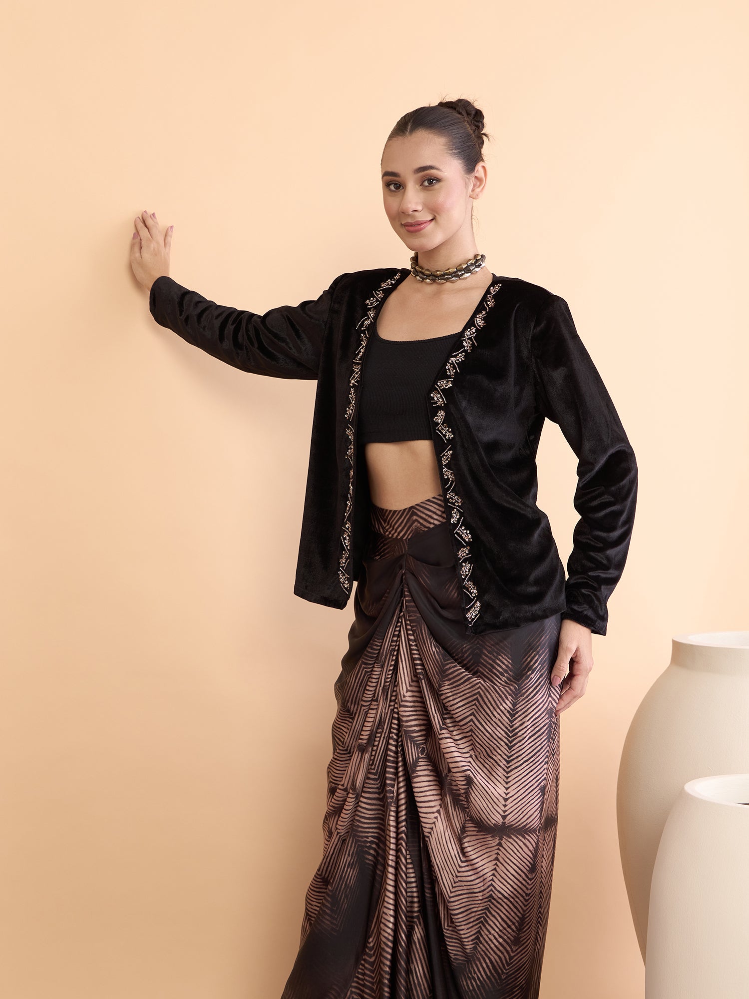 Antheaa Embellished Long Sleeves Jacket With Skirt