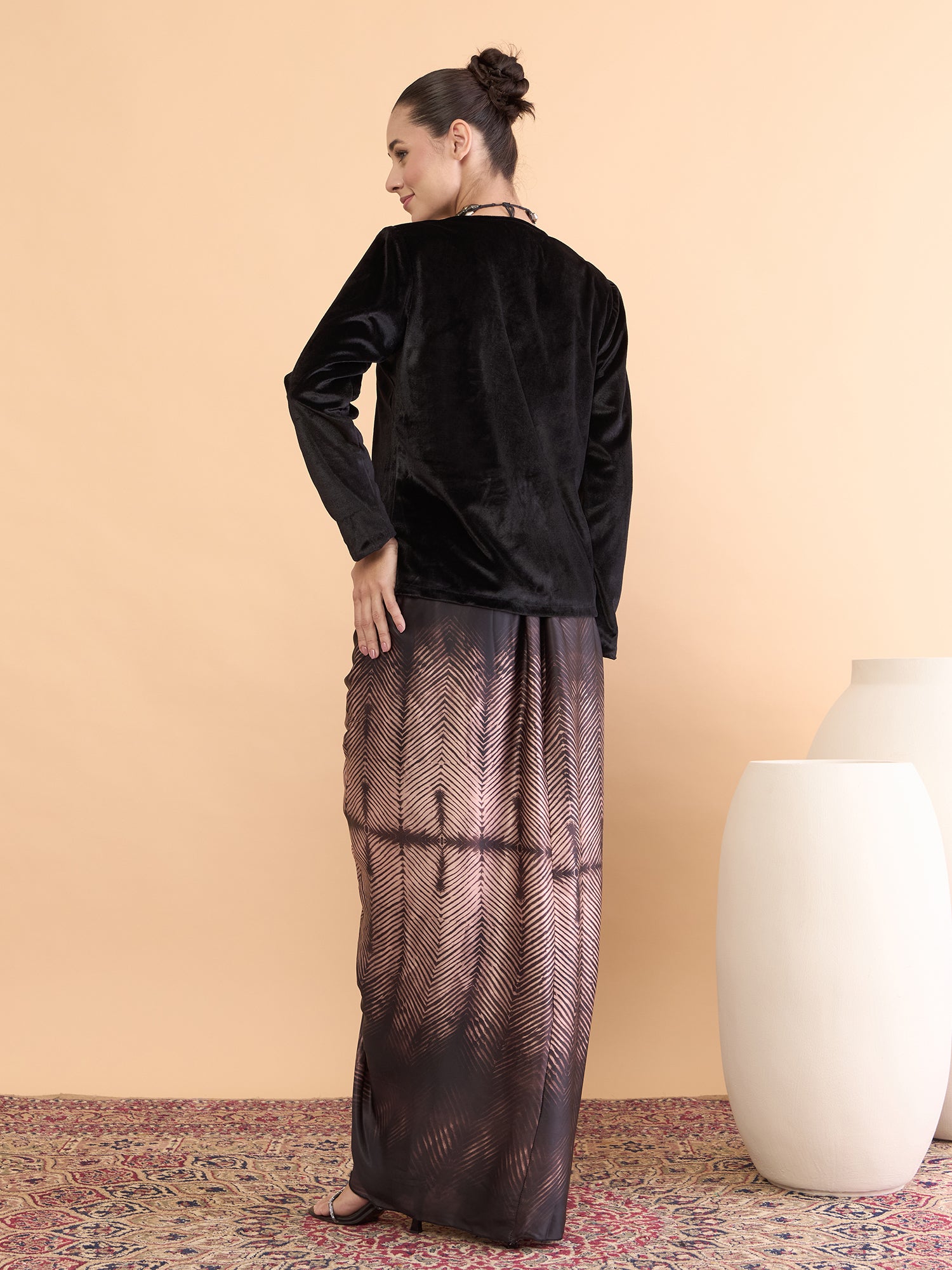 Black and brown printed skirt, has an elasticated waistband with slip on closure