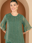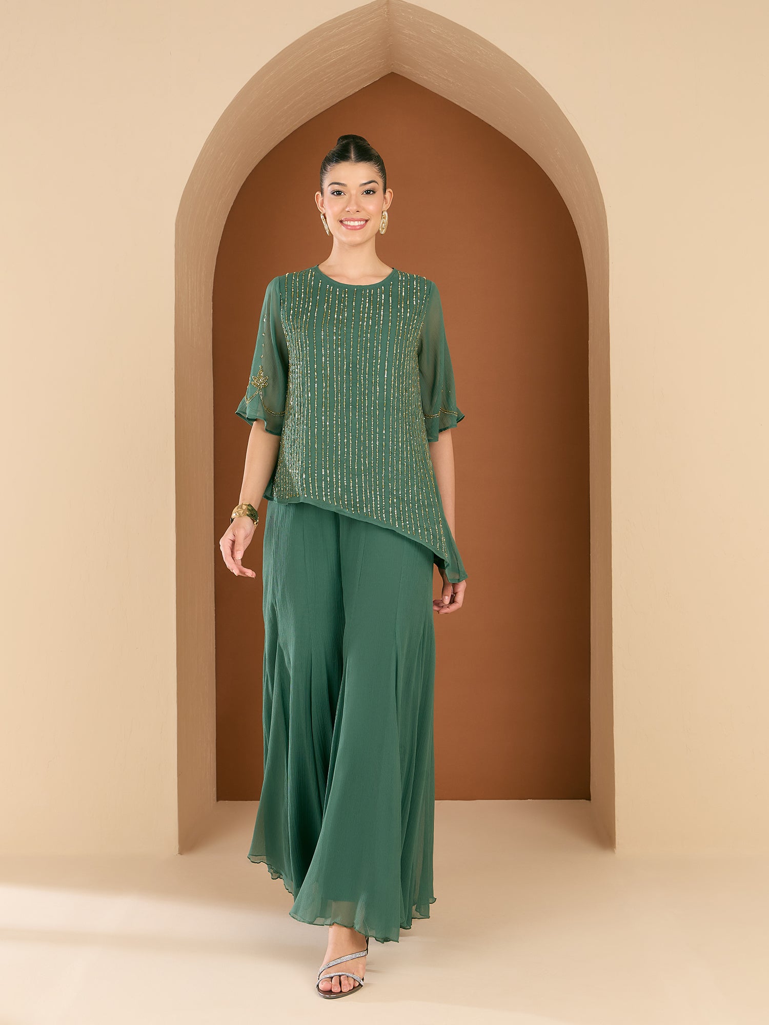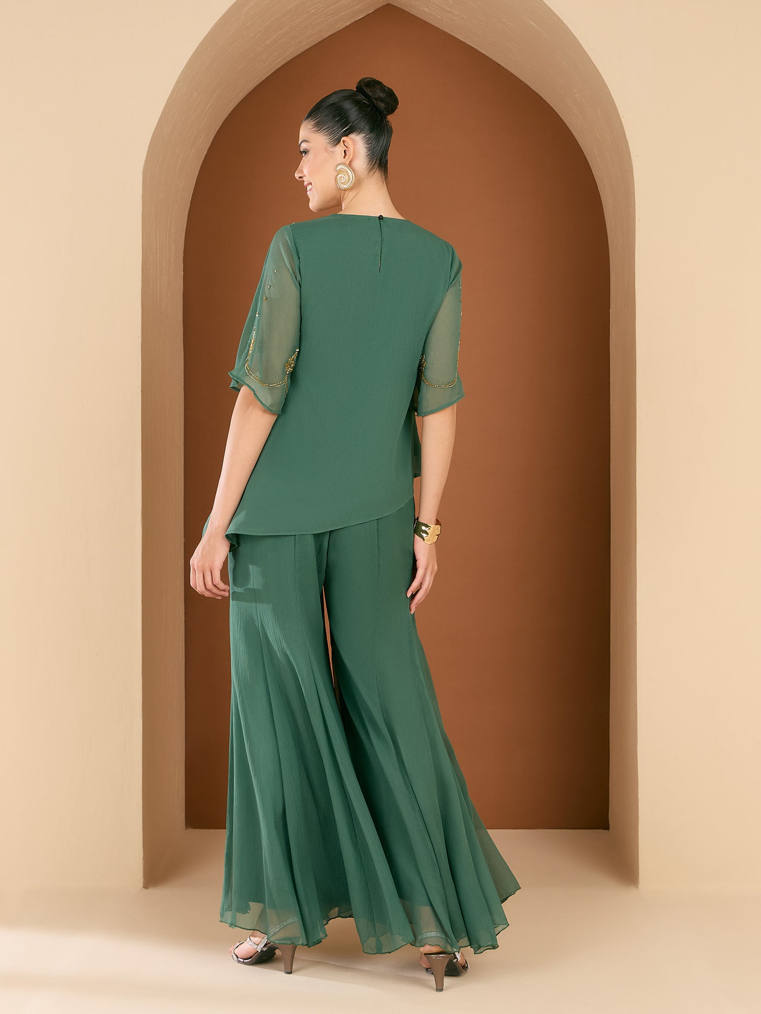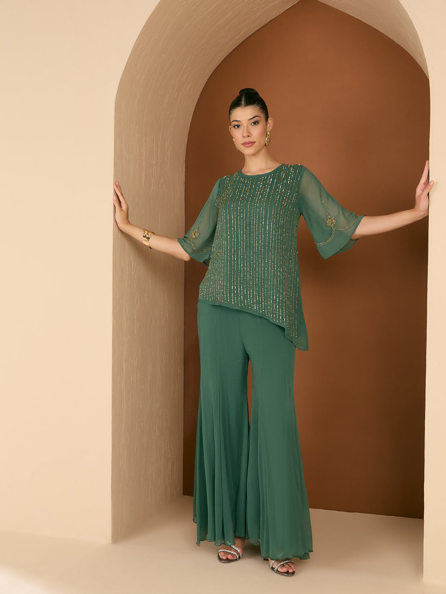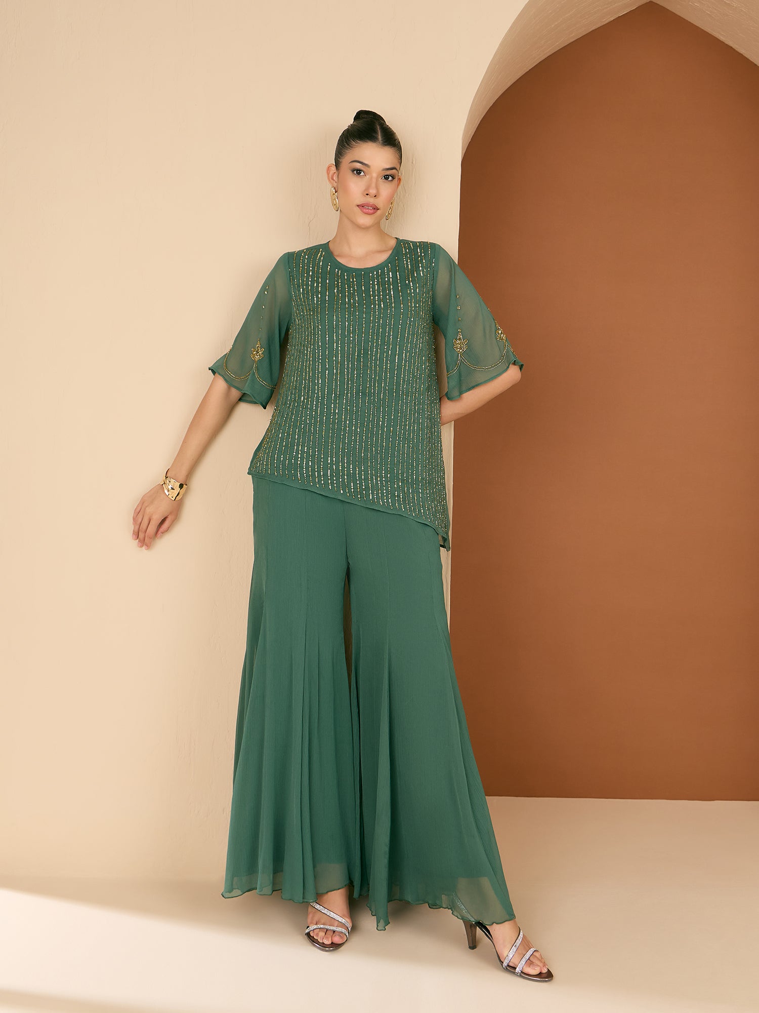 Antheaa Embellished Round Neck Top & Palazzo Co-Ords