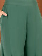 Green solid palazzo, has an elasticated waistband with slip-on closure has 2 pockets