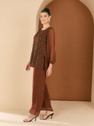Antheaa Embellished Round Neck Top & Trousers Co-ord