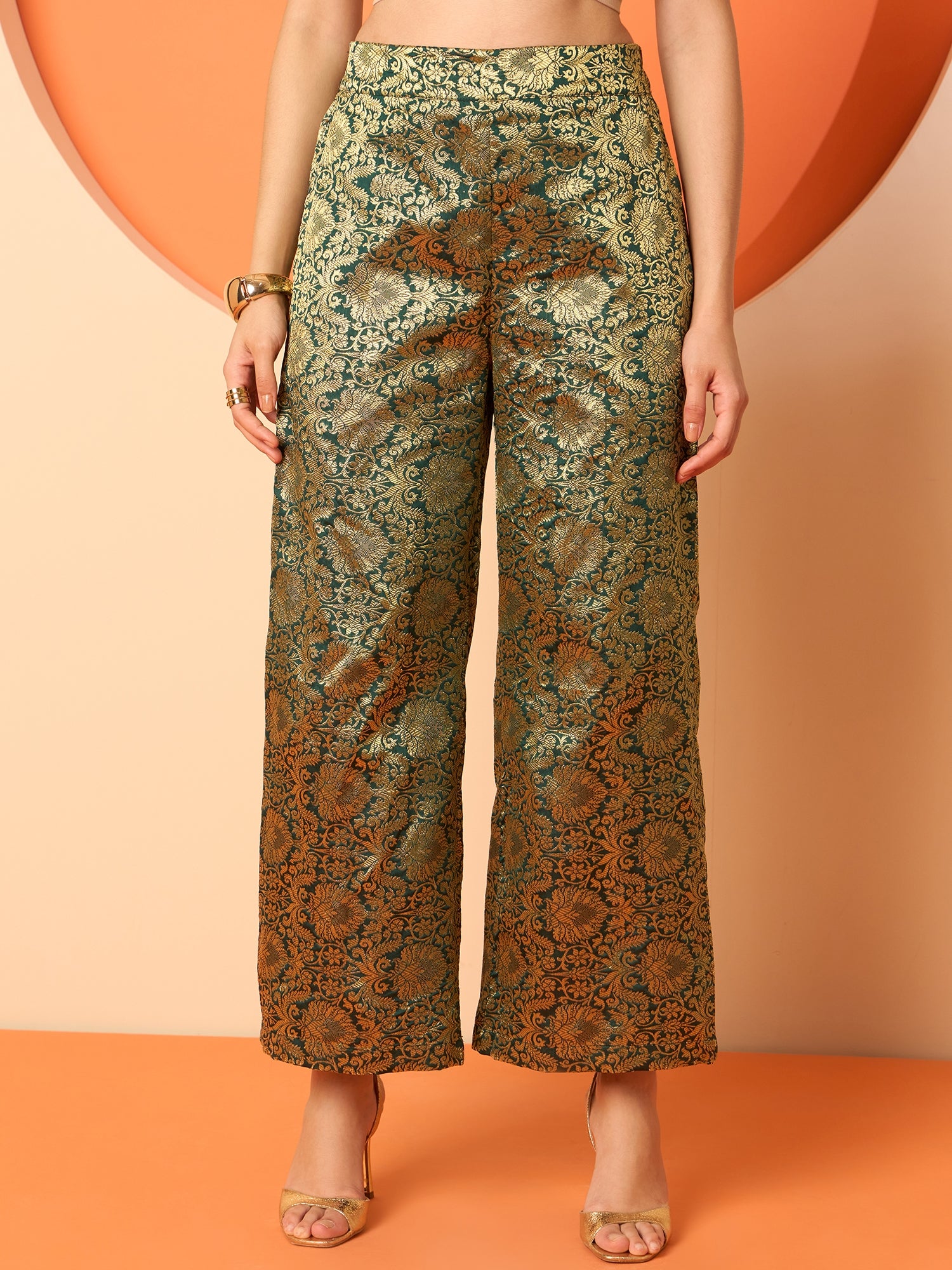 Antheaa Embellished Round Neck Top With Brocade Trousers