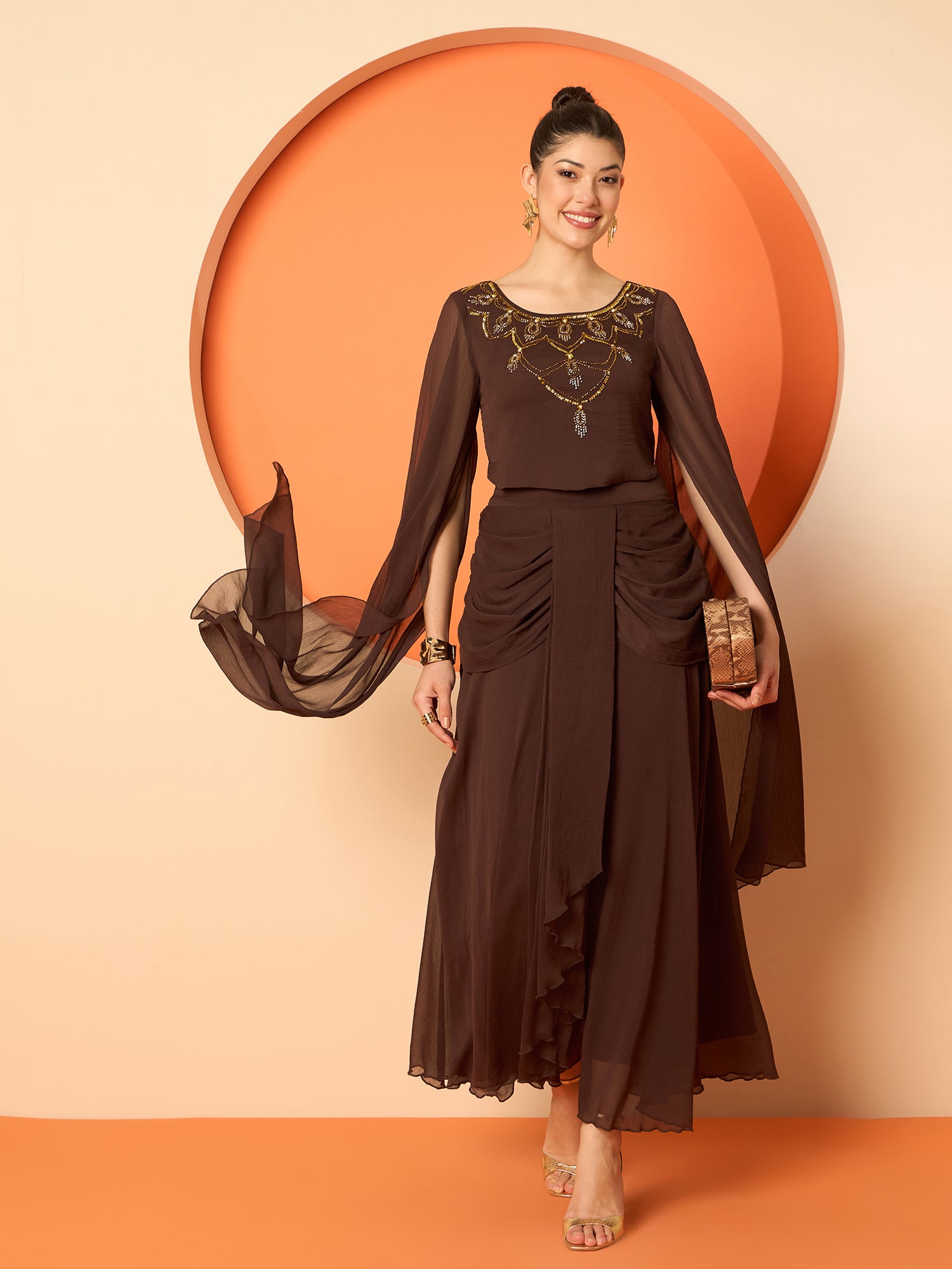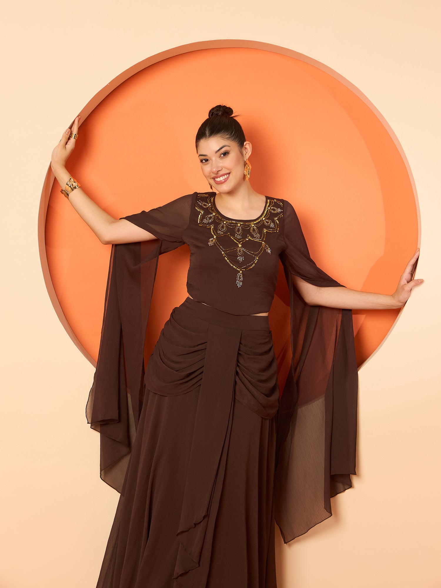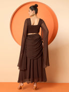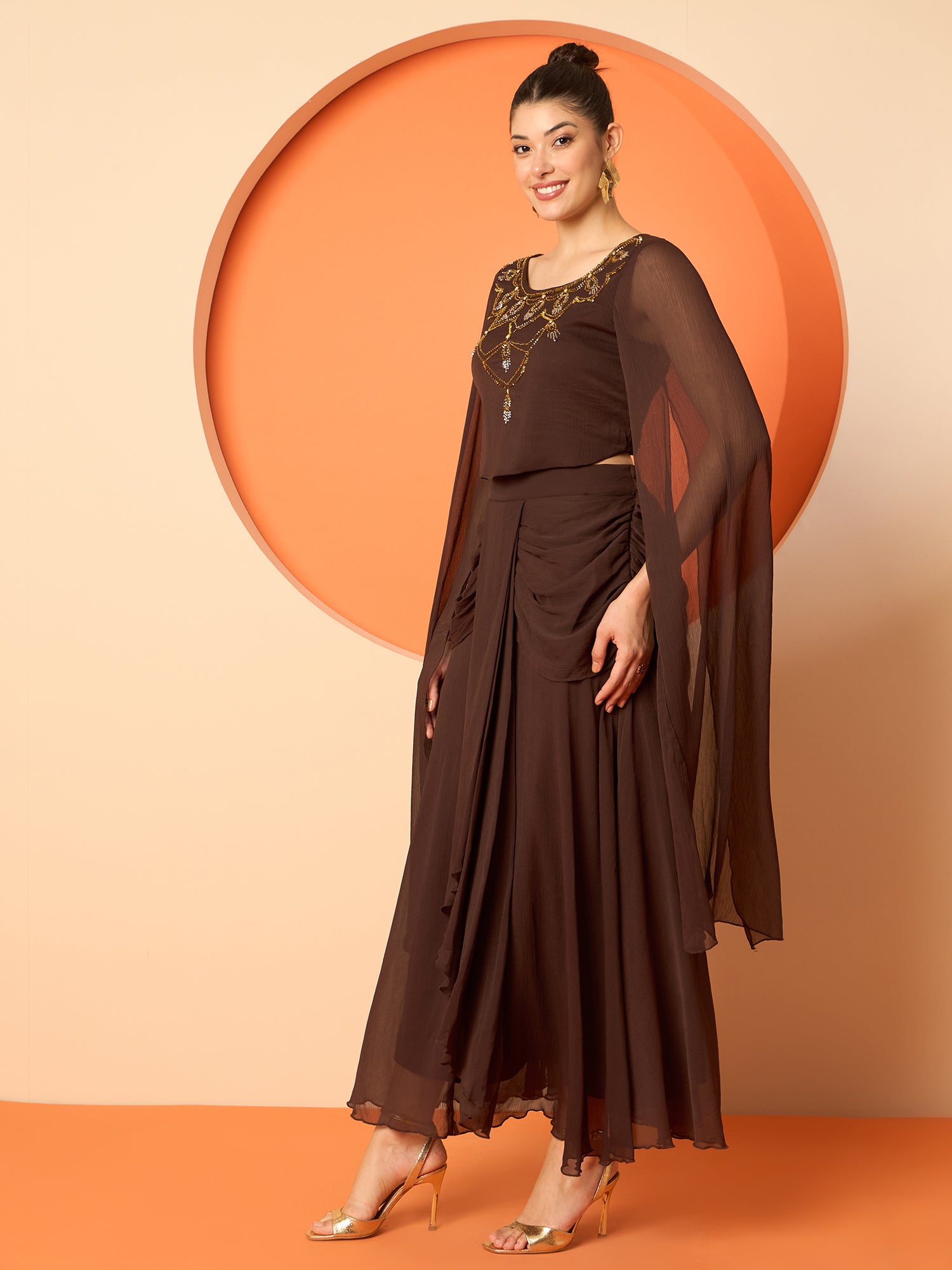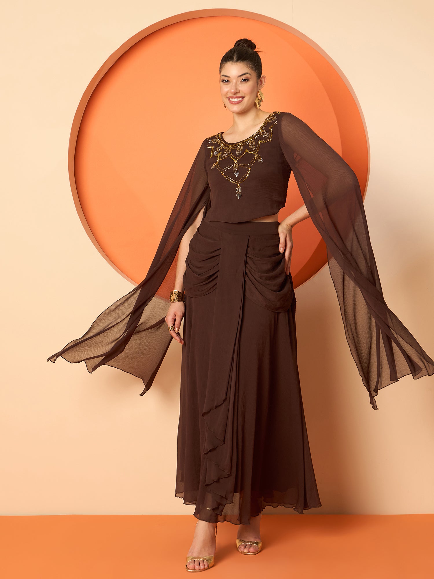 Antheaa Embellished Round-Neck Top With Drapped Skirt