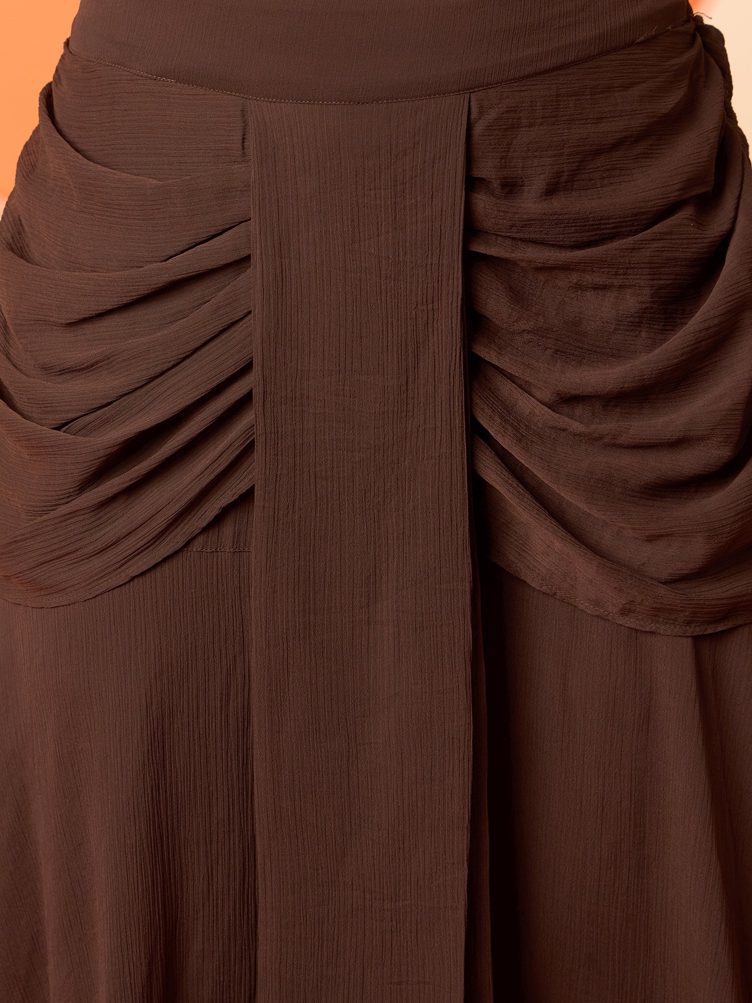 Brown & gold toned skirt, has an elasticated waistband with slip-on closure