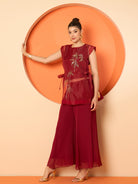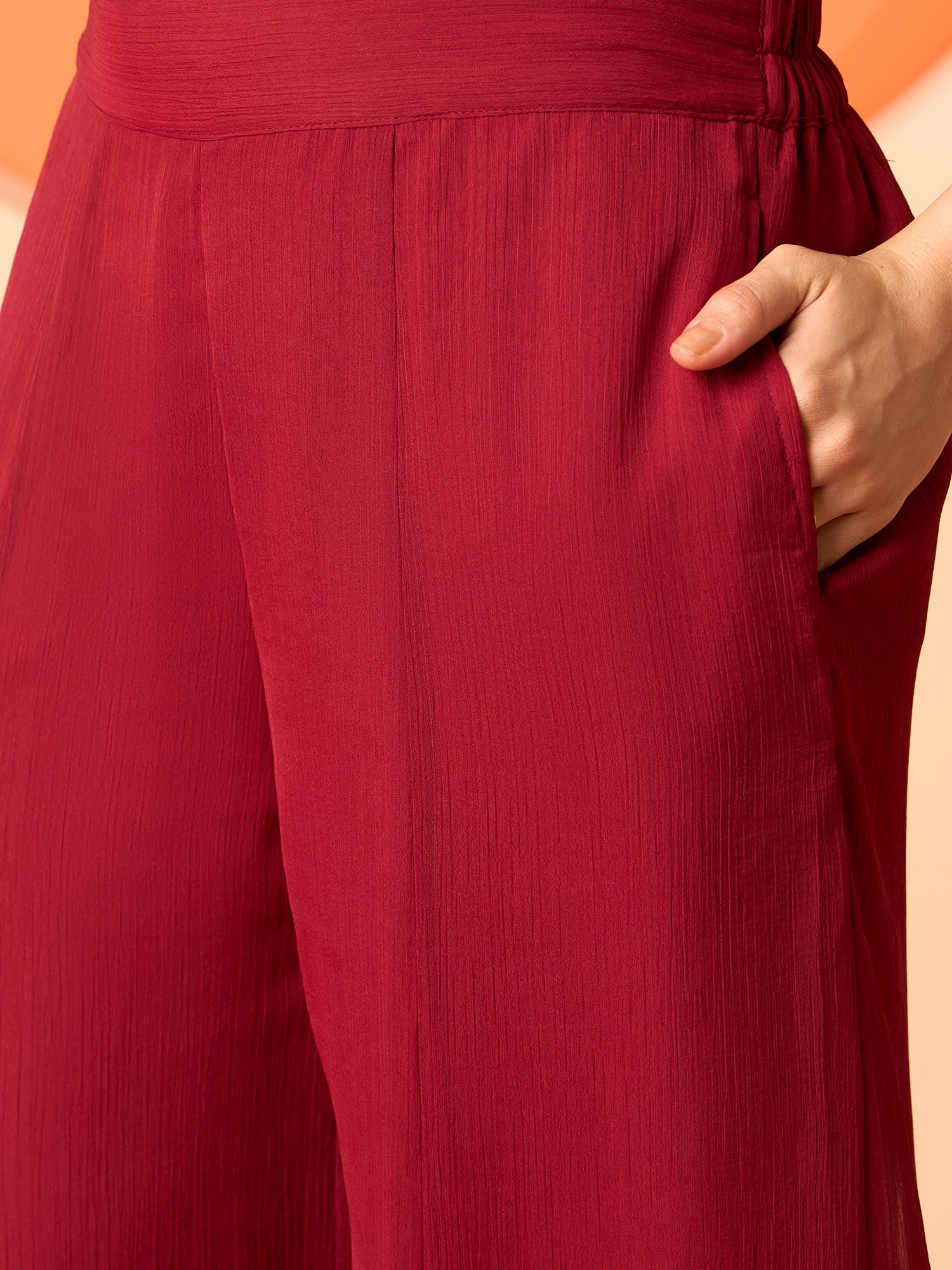 Maroon solid palazzos has an elasticated waistband with slip-on closure