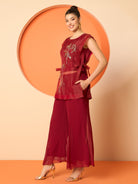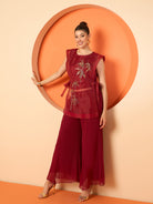 Antheaa Embellished Round Neck Tunic With Palazzos
