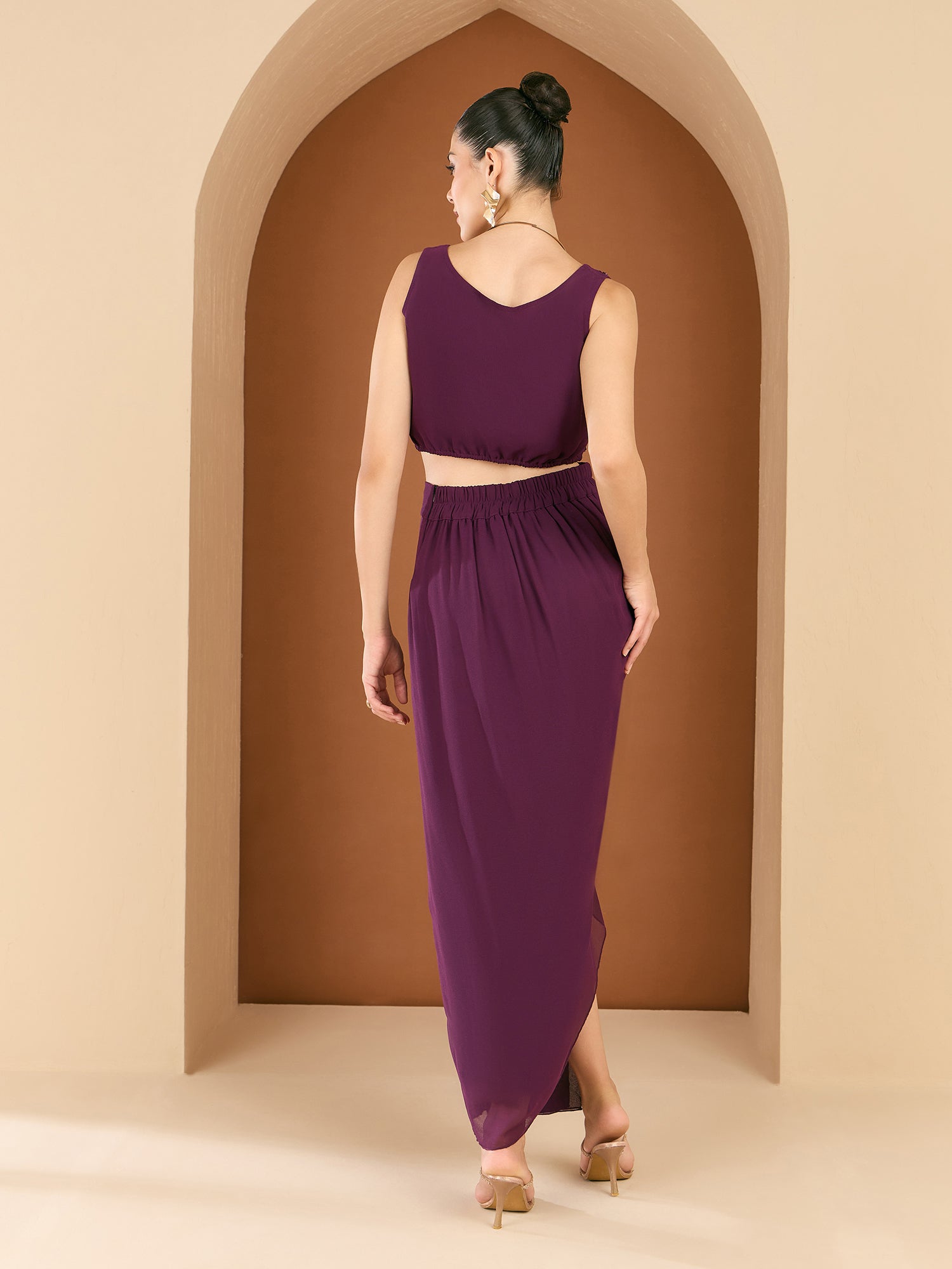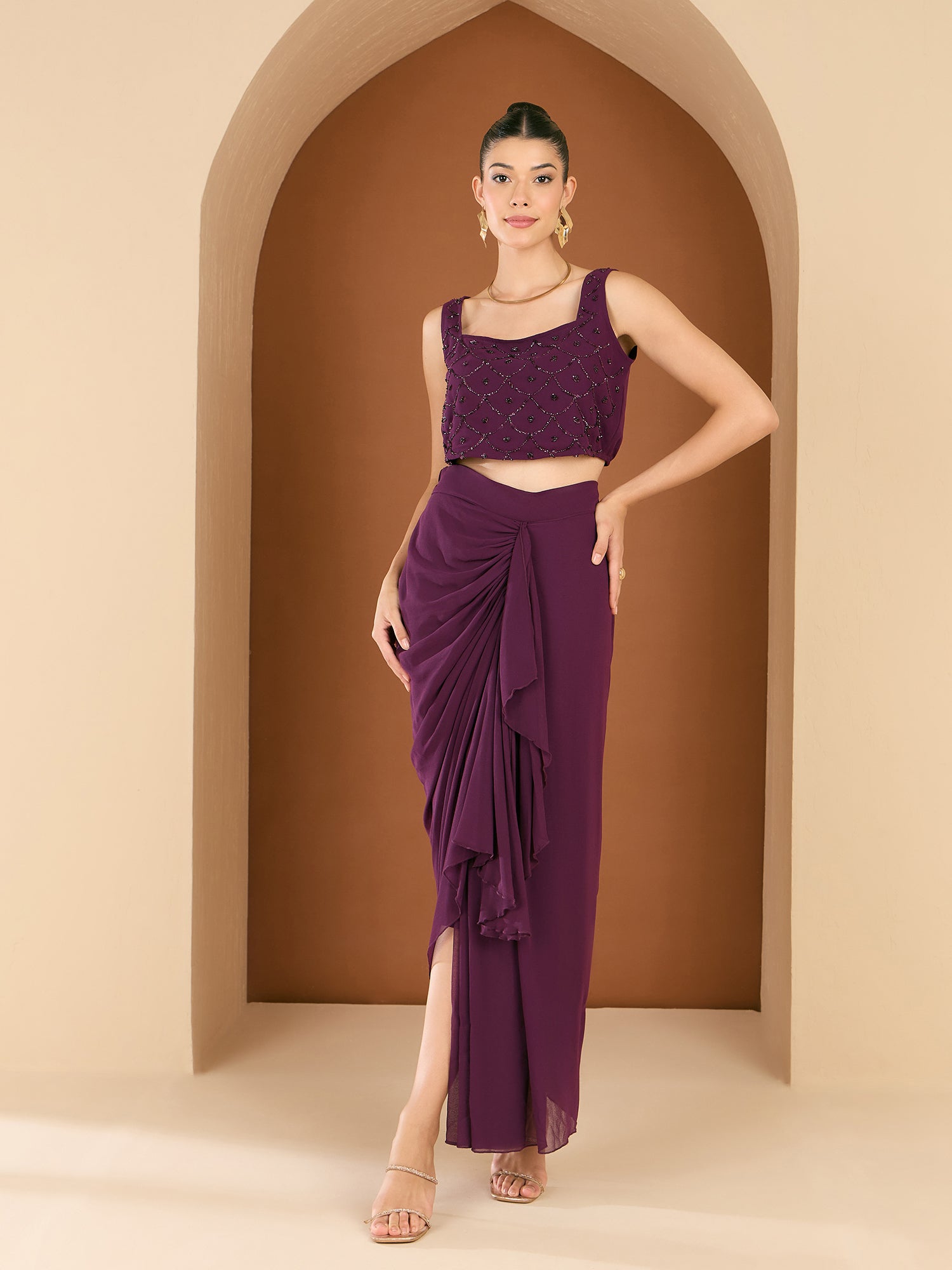 Purple and black embellished skirt, has an elasticated waistband with slip-on closure