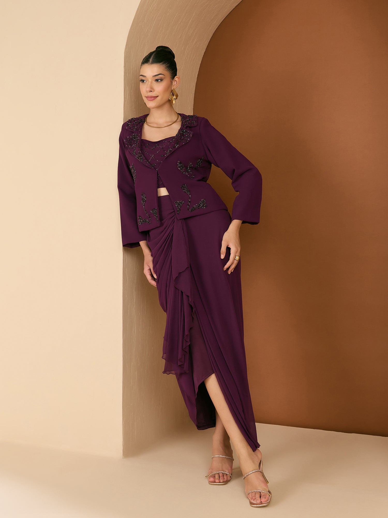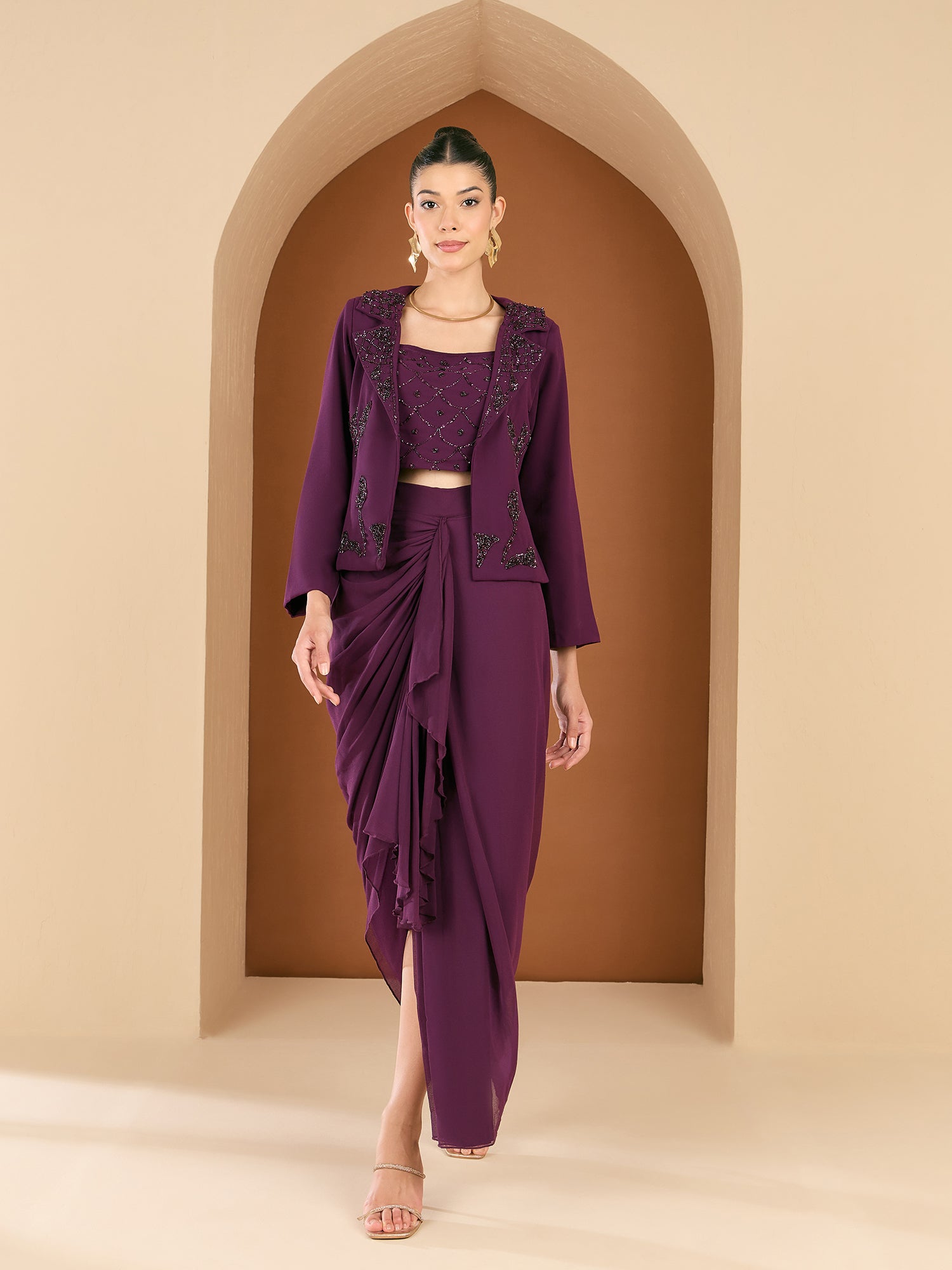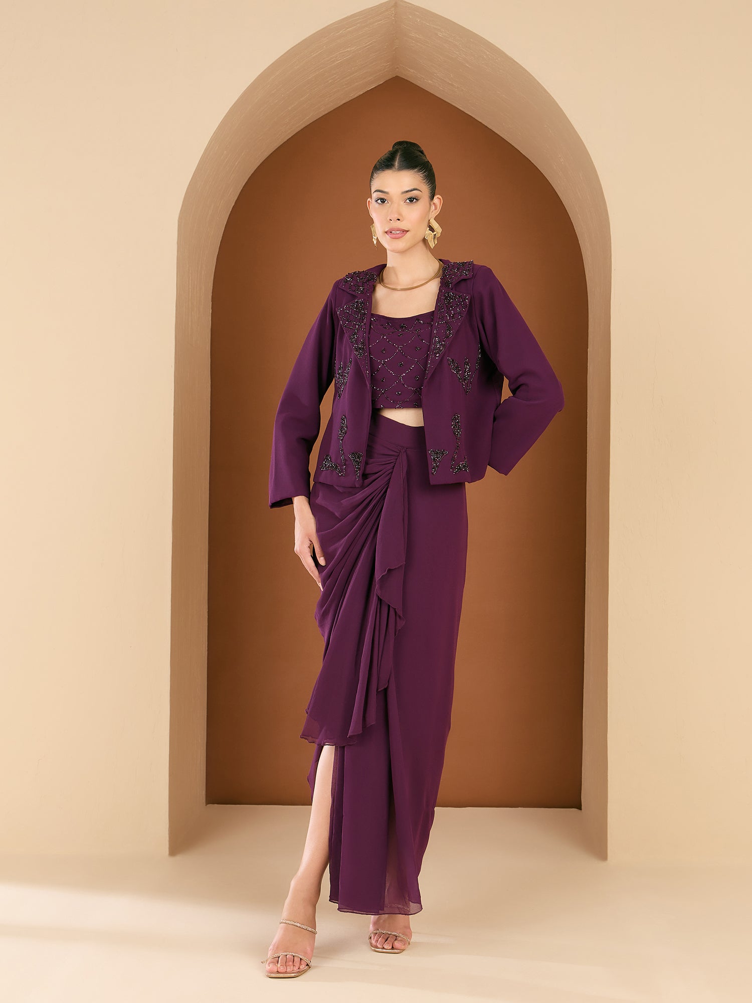 Antheaa Embellished Square Neck Top And Jacket With Skirt And Jacket