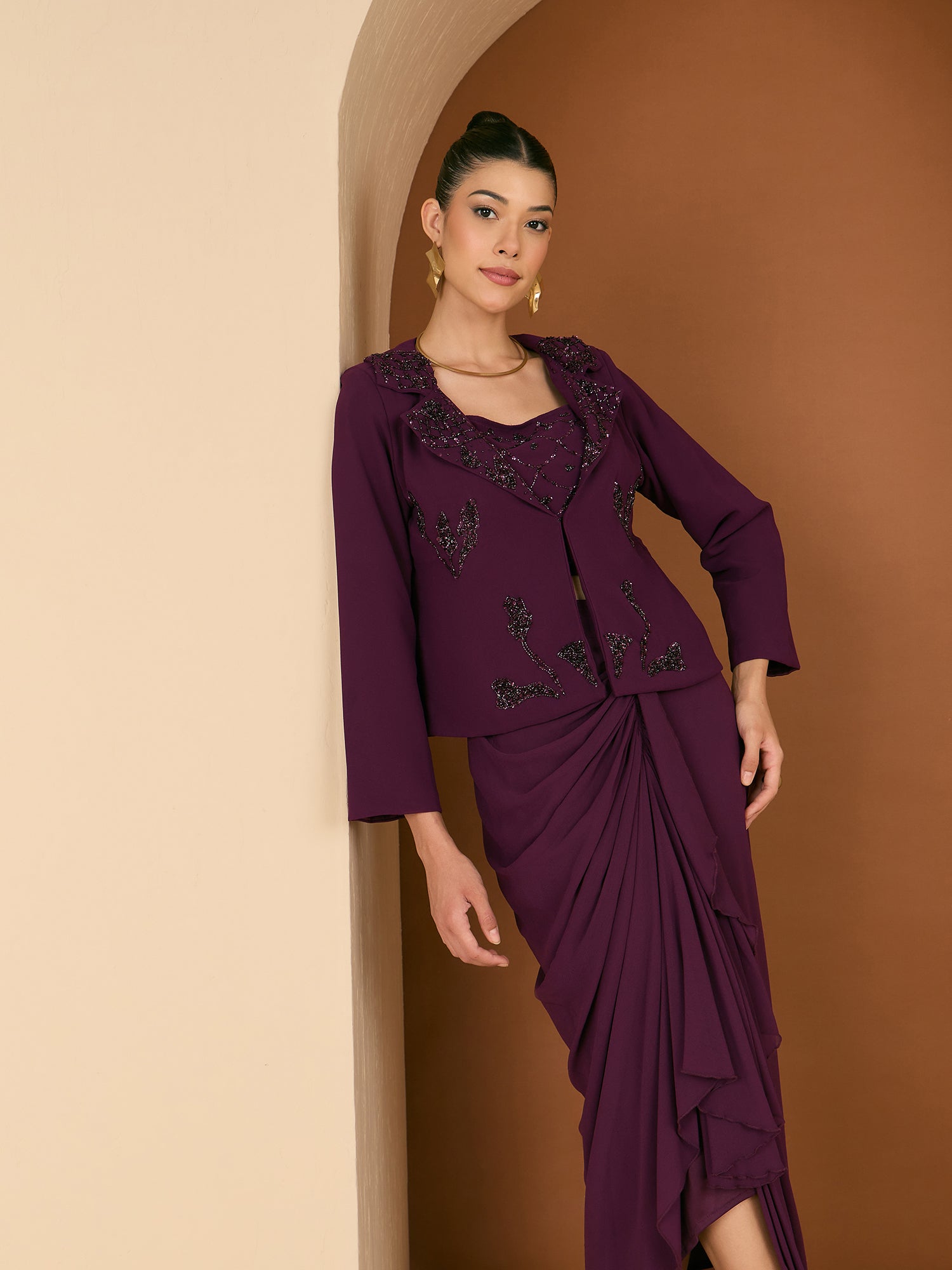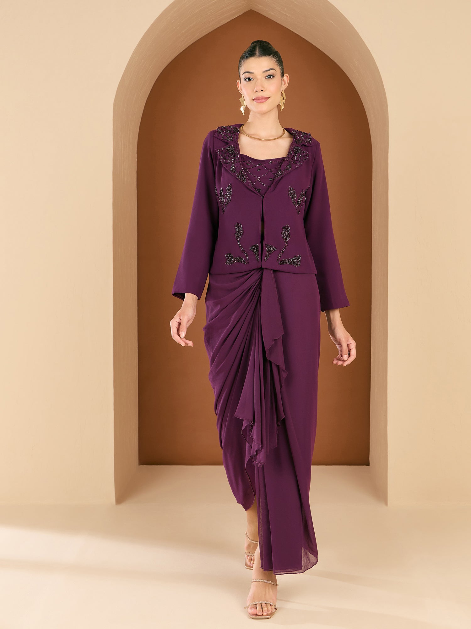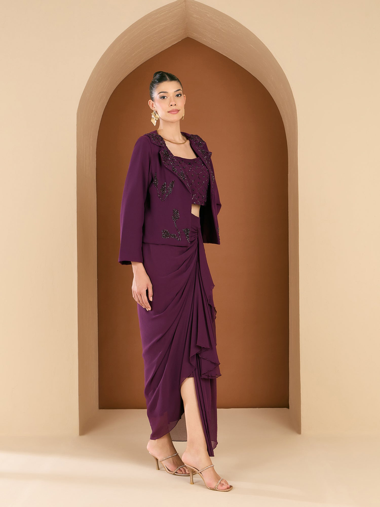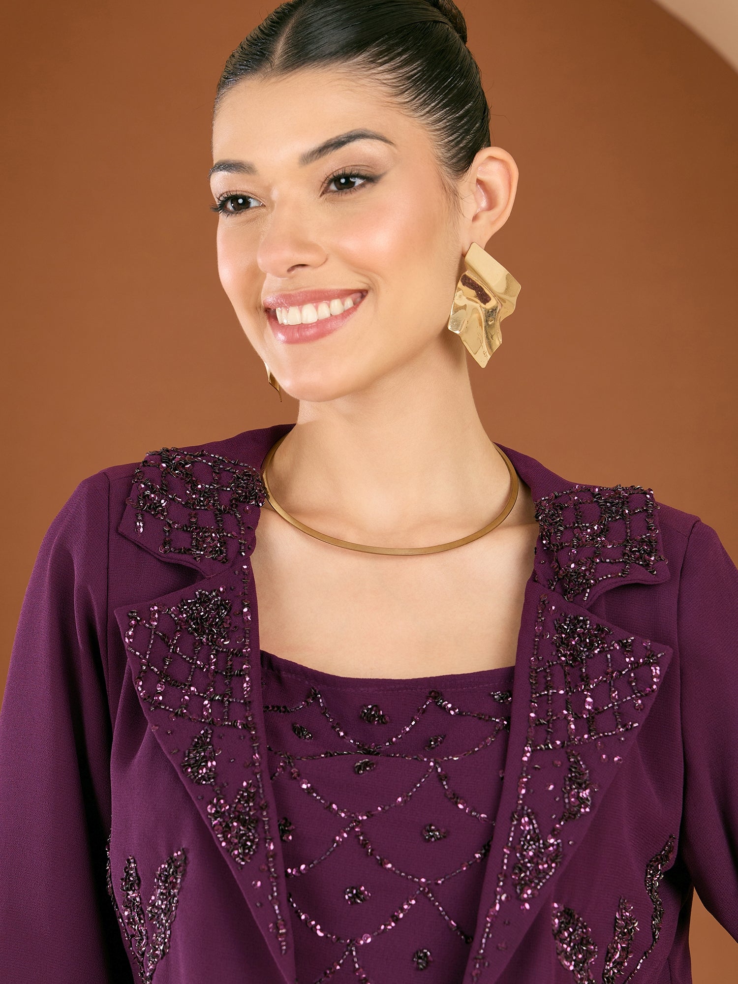 Antheaa Embellished Square Neck Top And Jacket With Skirt And Jacket