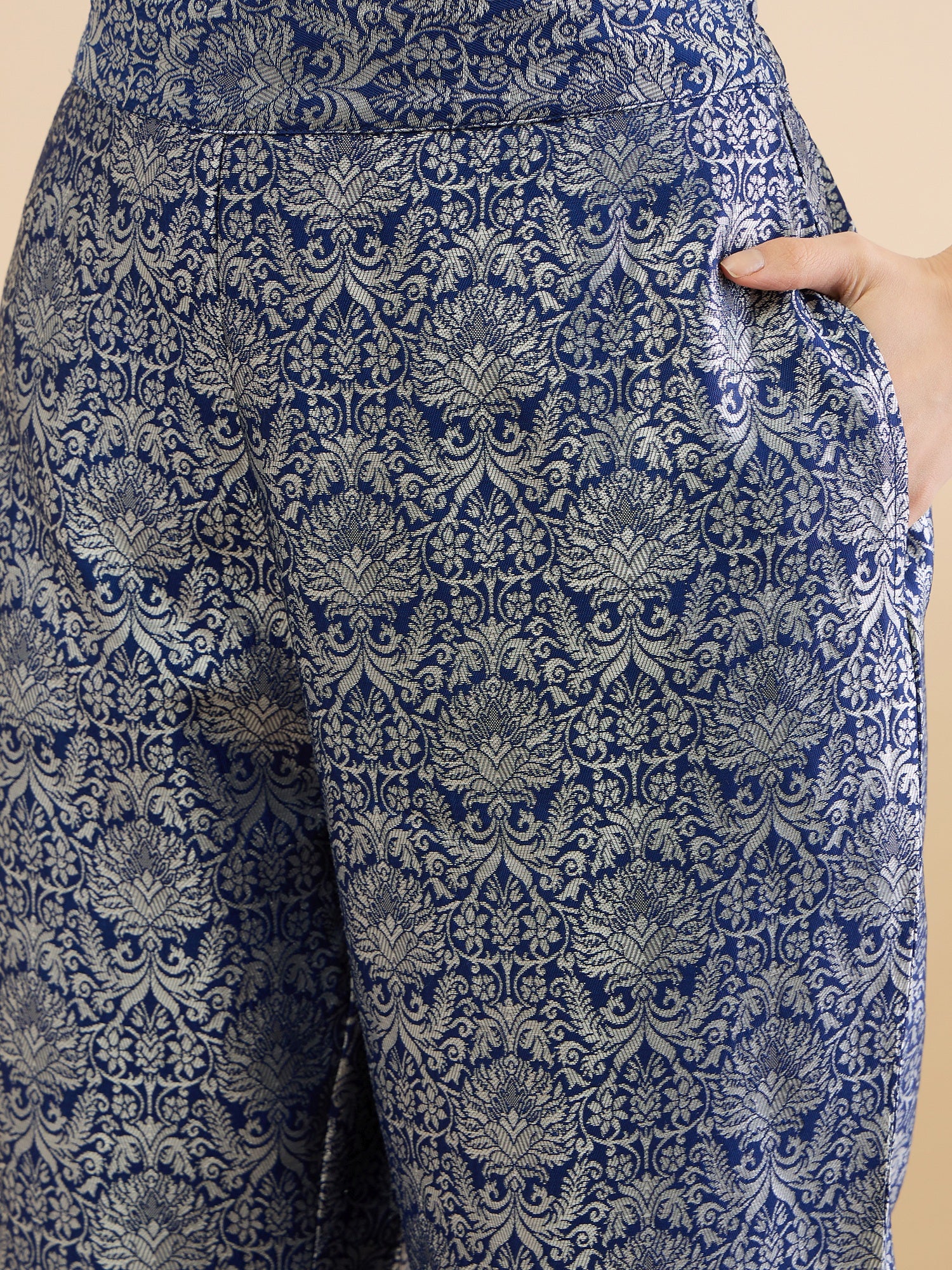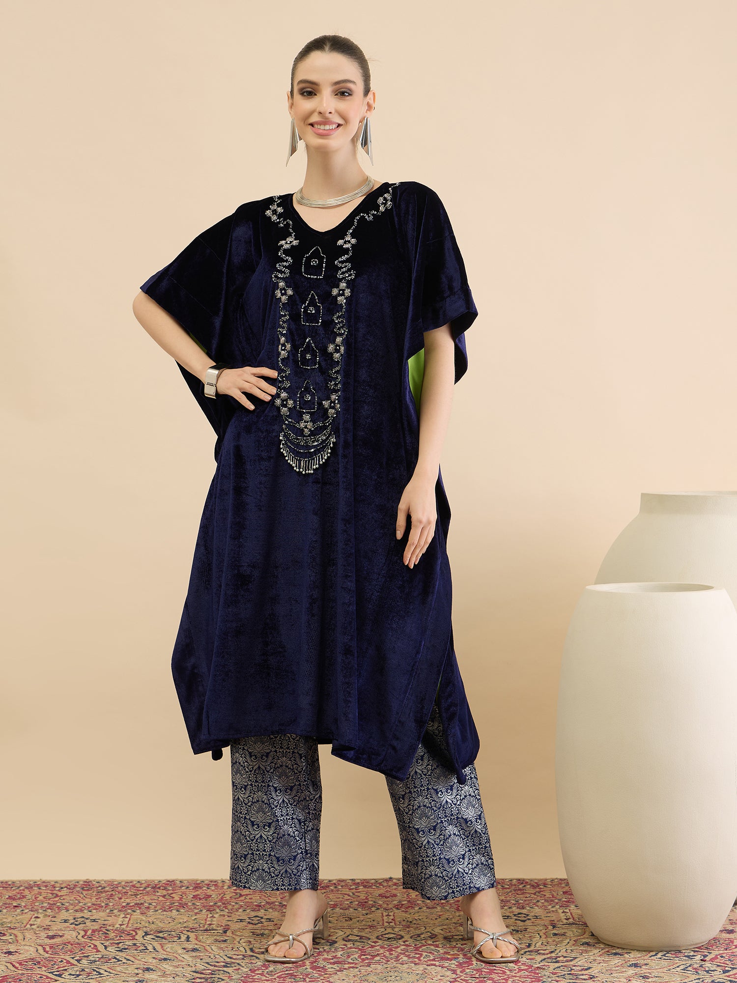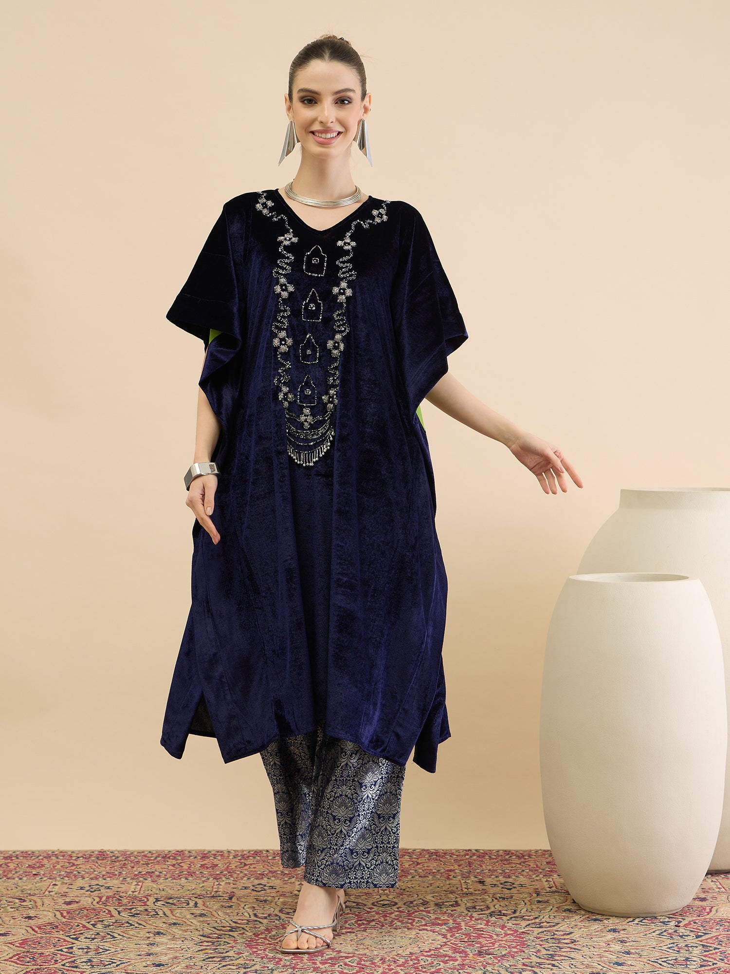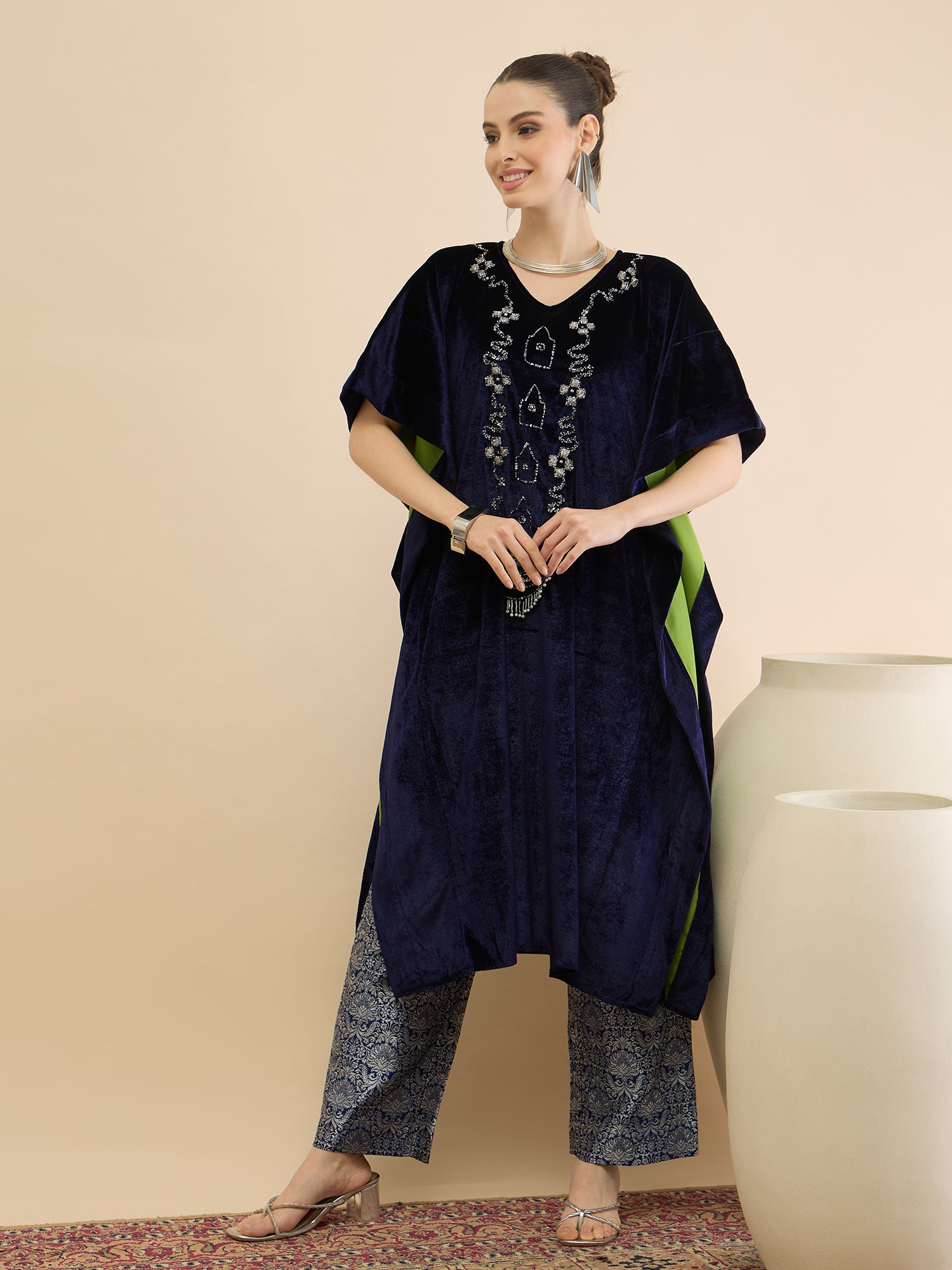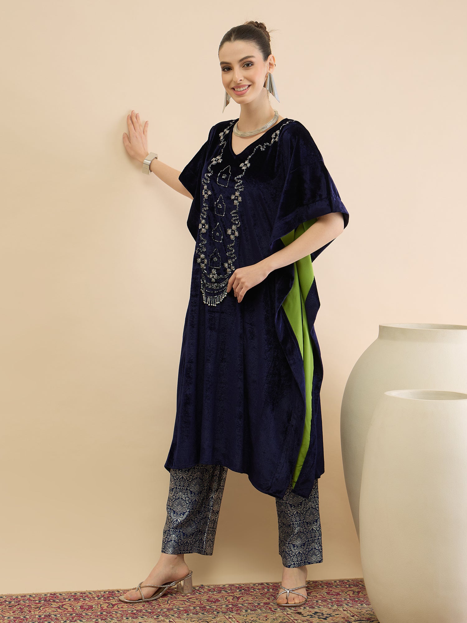 Antheaa Embellished Velvet Tunic & Brocade Trousers Set