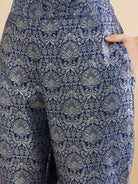 Blue woven design Trousers has an elasticated waistband with slip-on closure