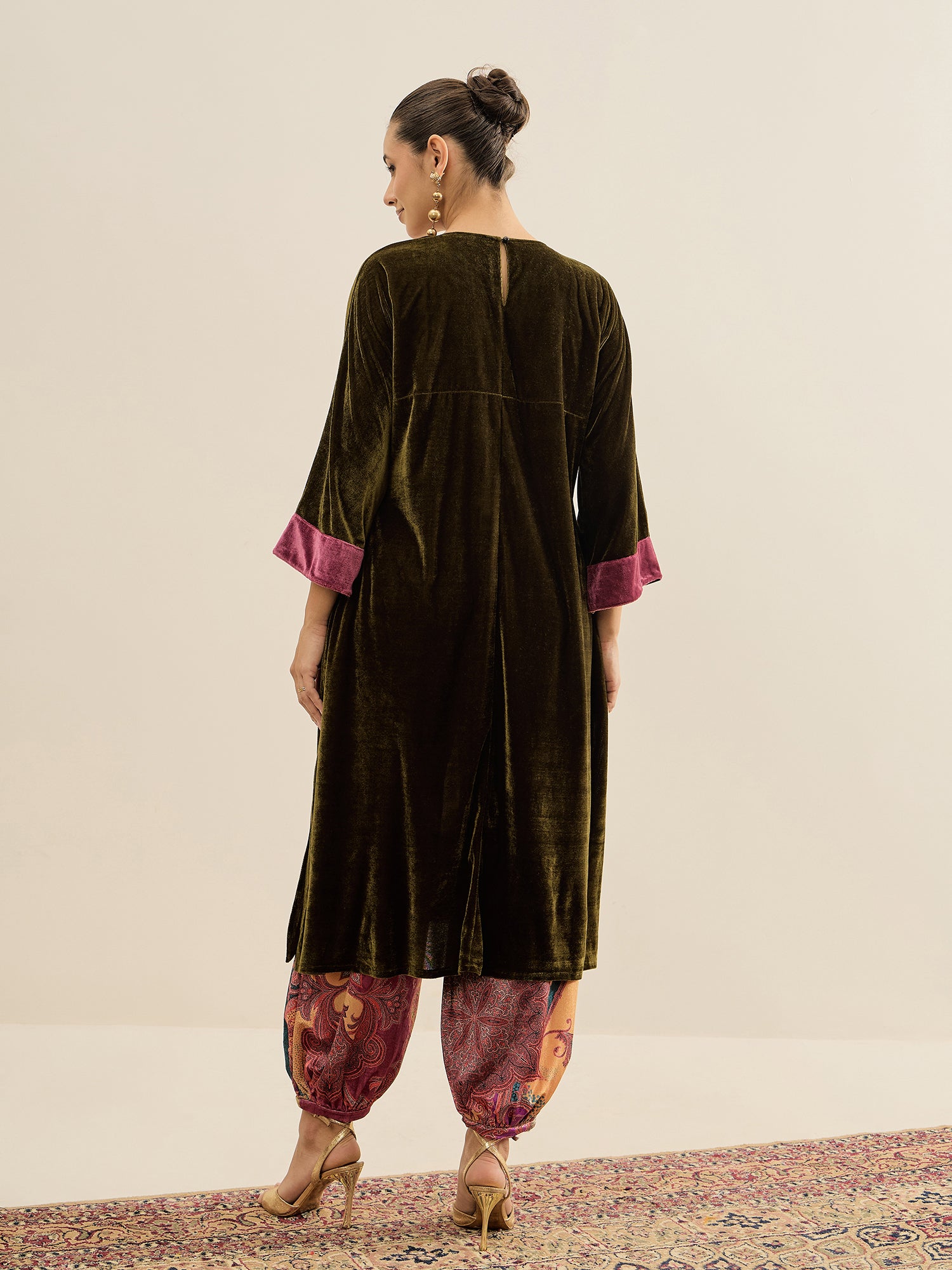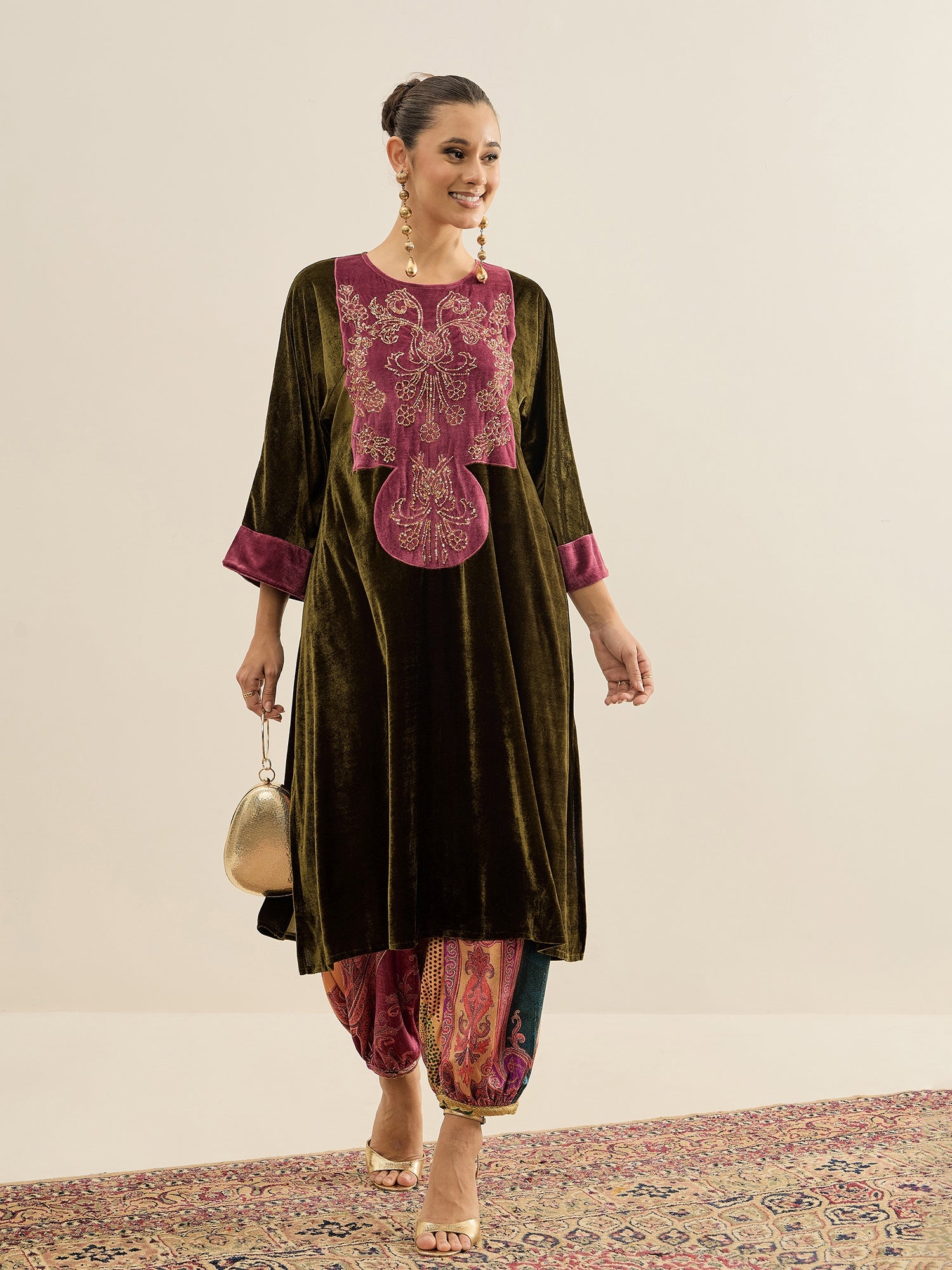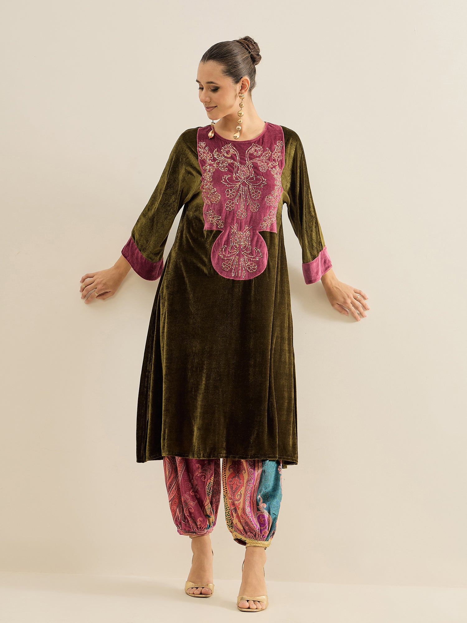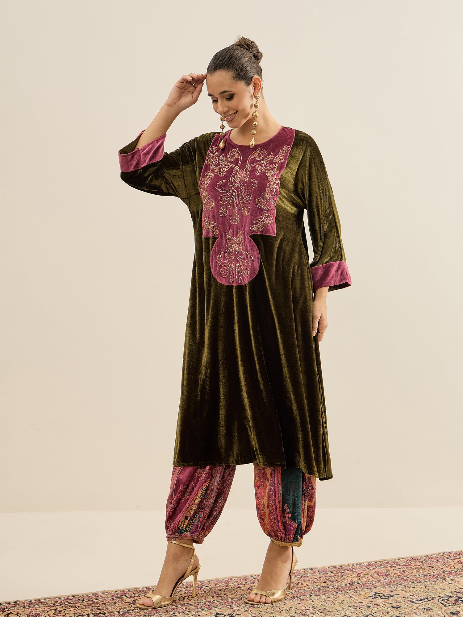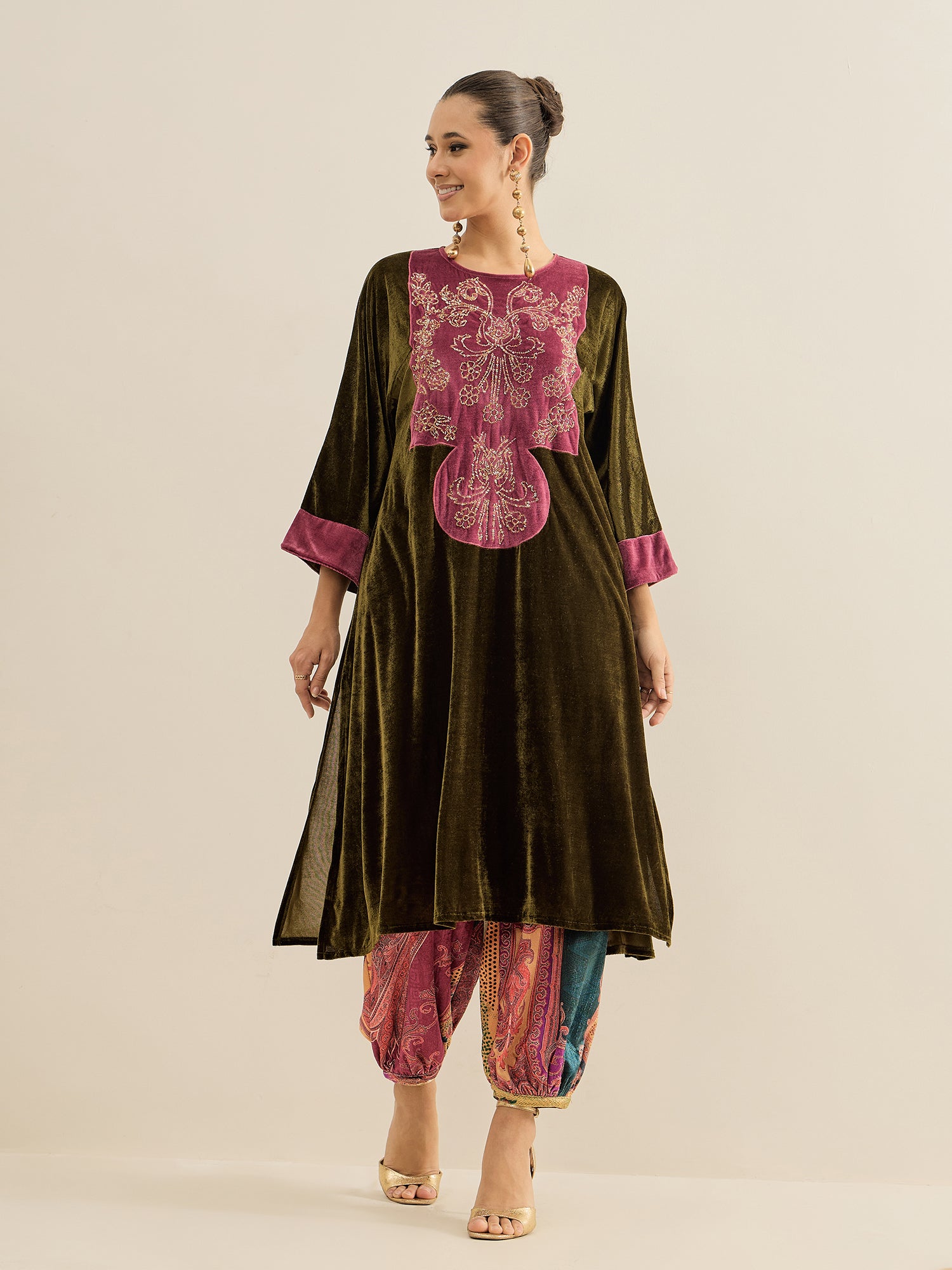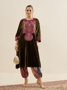 Antheaa Embellished velvet Tunic With Trousers Co-Ords