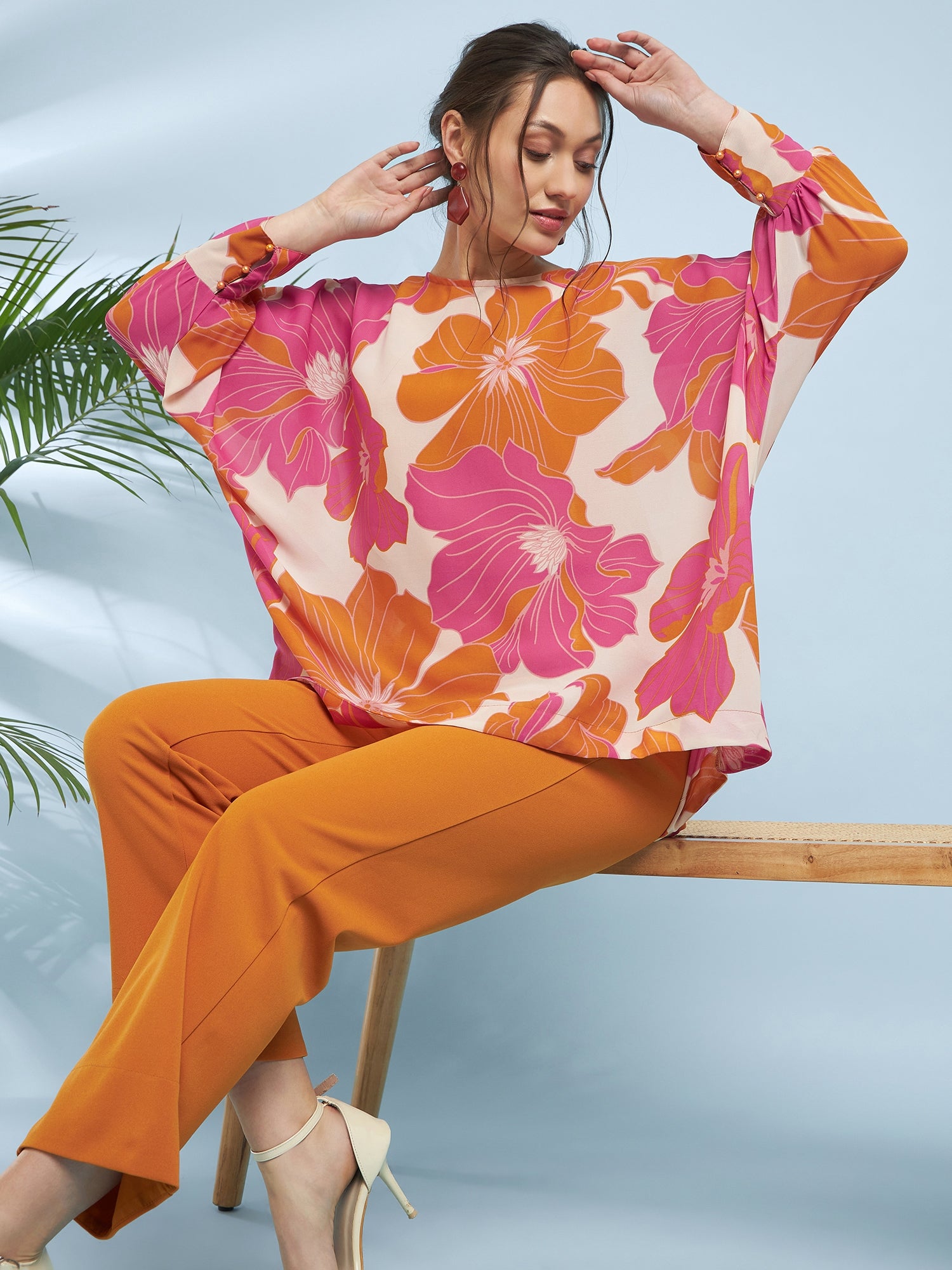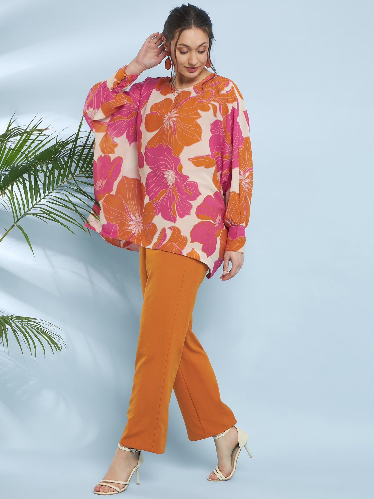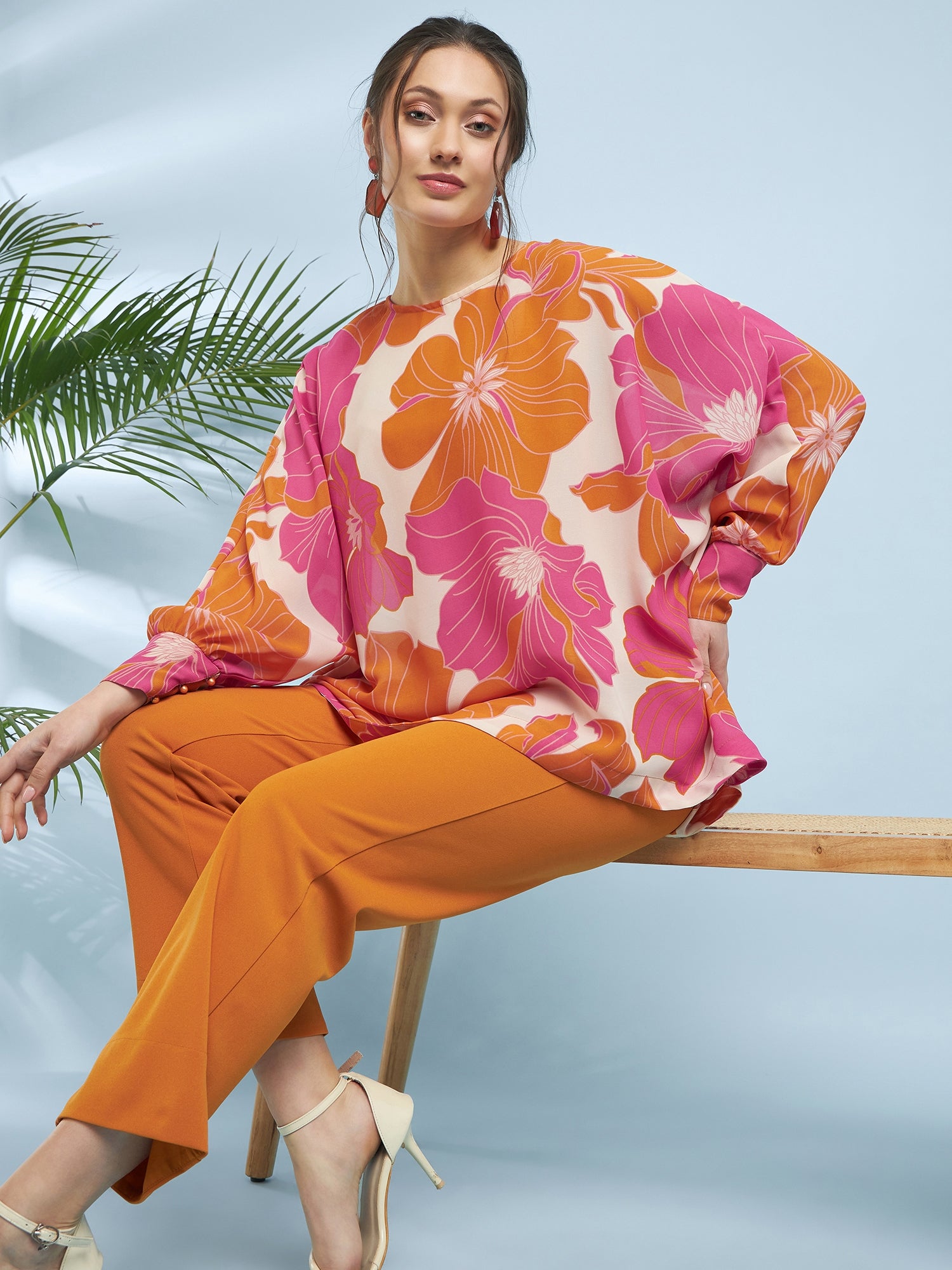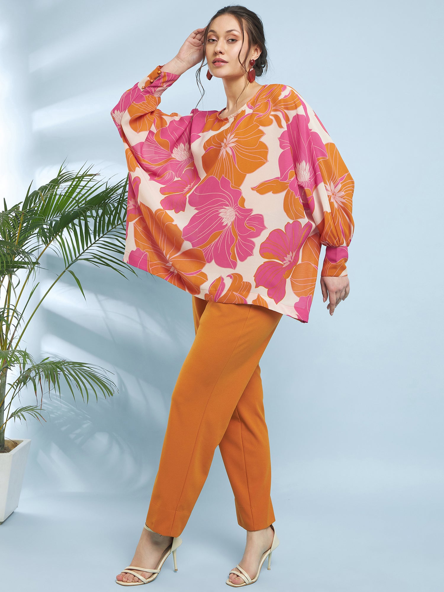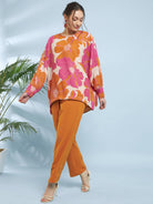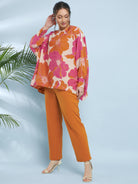 Antheaa Floral Printed Loose Fit Top With Trousers