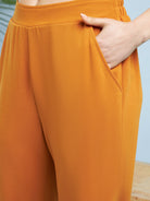 Mustard yellow solid mid-rise trousers, has slip-on closure and flared hem