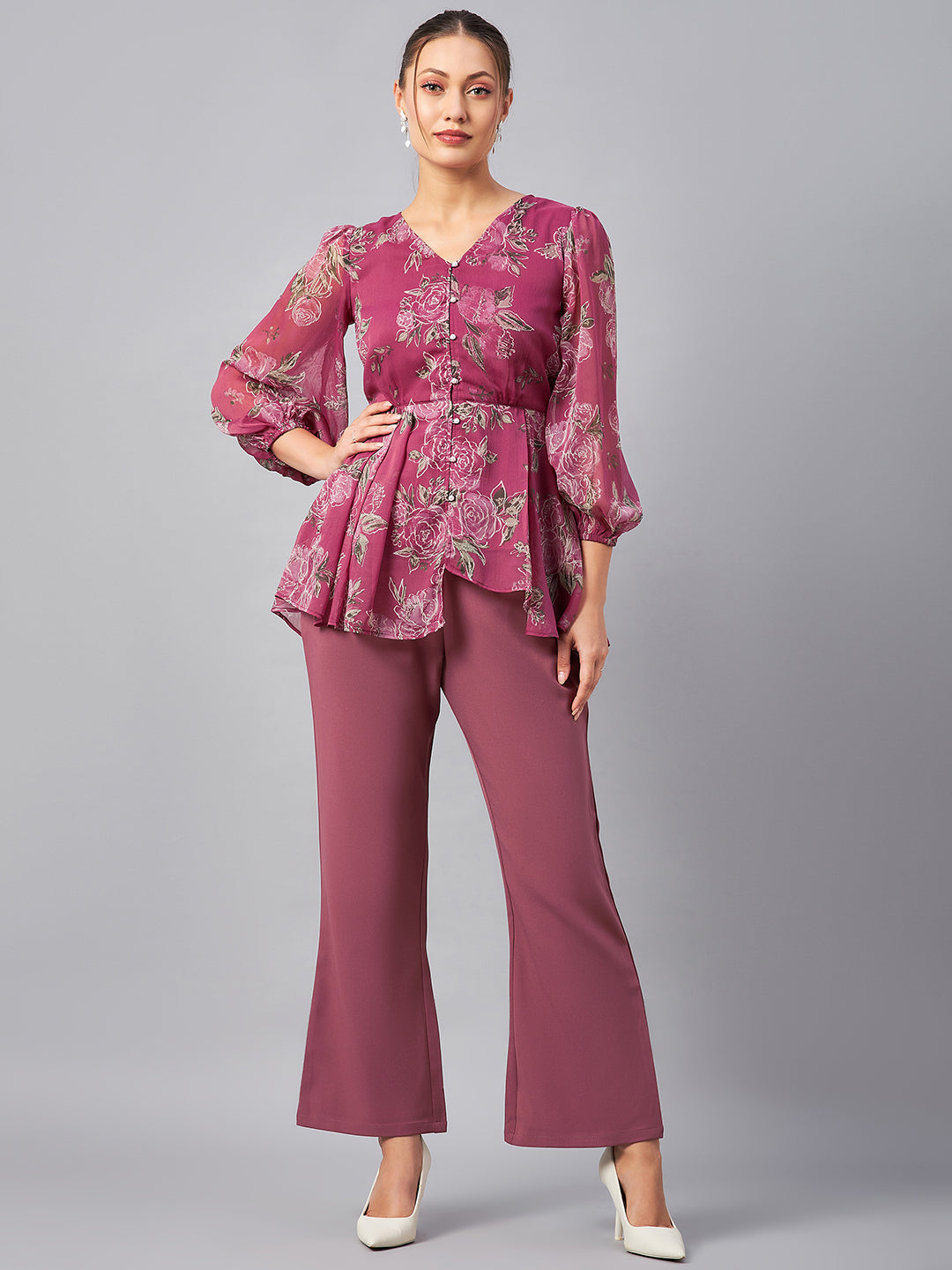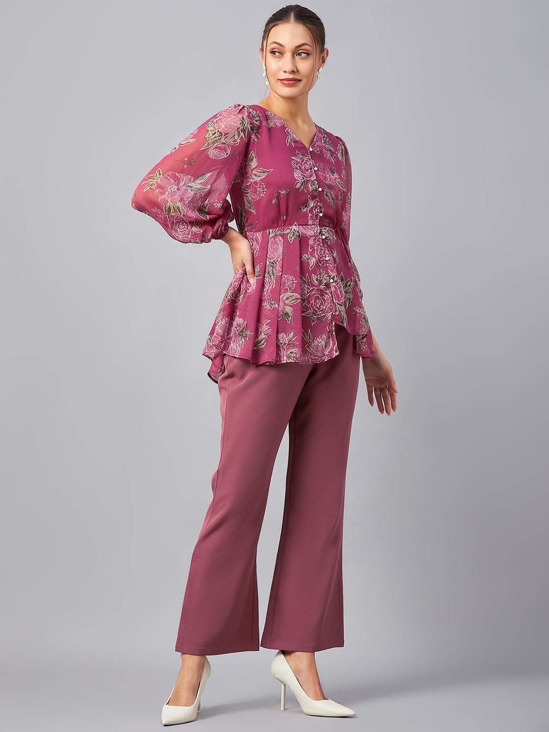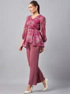 Antheaa Floral Printed V-Neck Tunic With Trousers