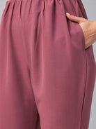 Pink solid mid-rise trousers, has slip-on closure and flared hem
