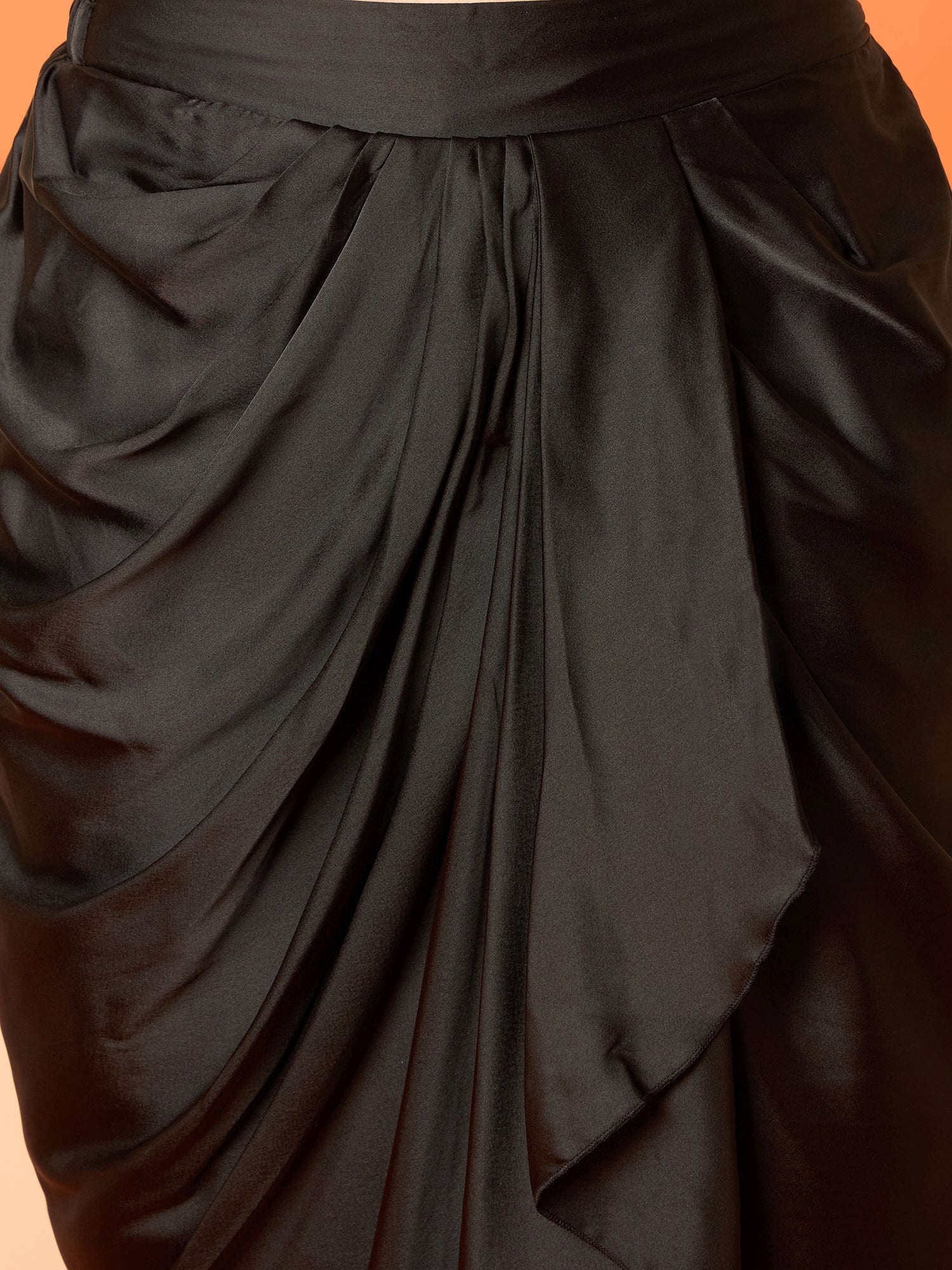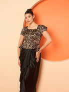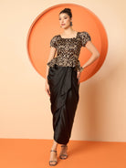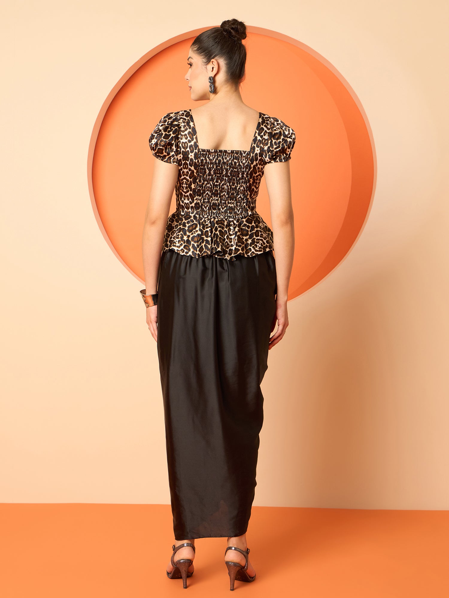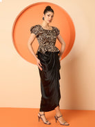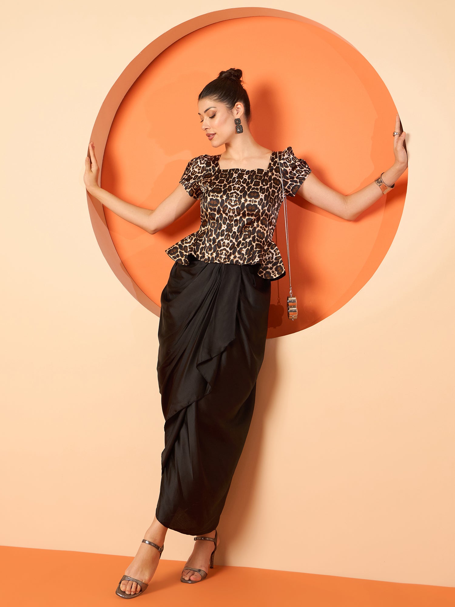 Antheaa Printed Square-Neck Peplum Top With Drapped Satin Skirt