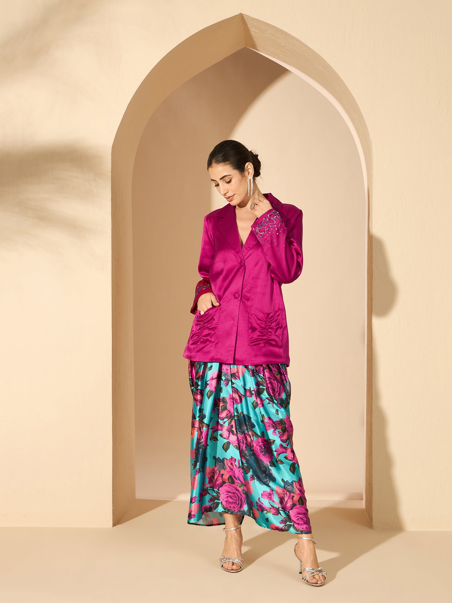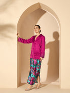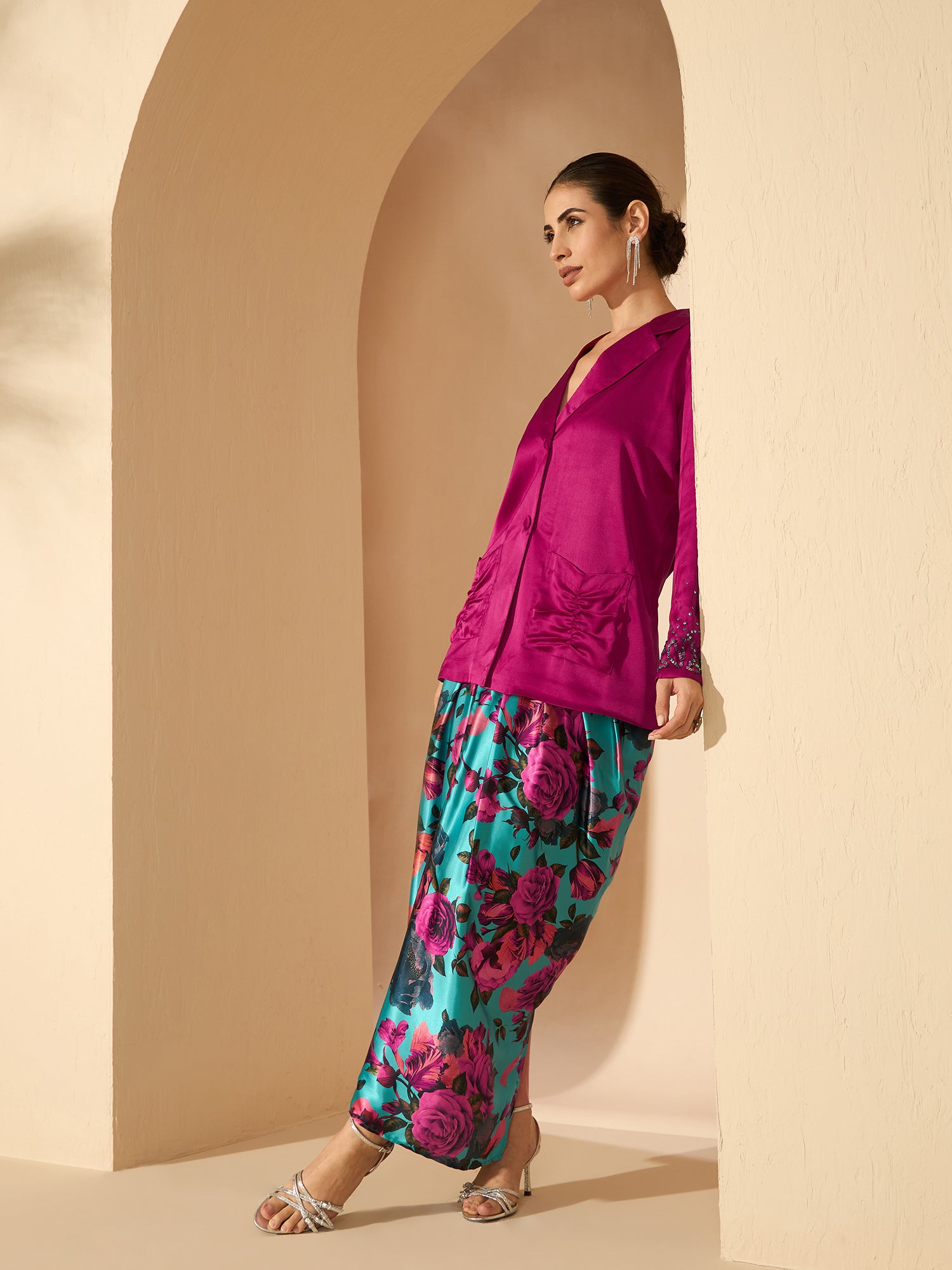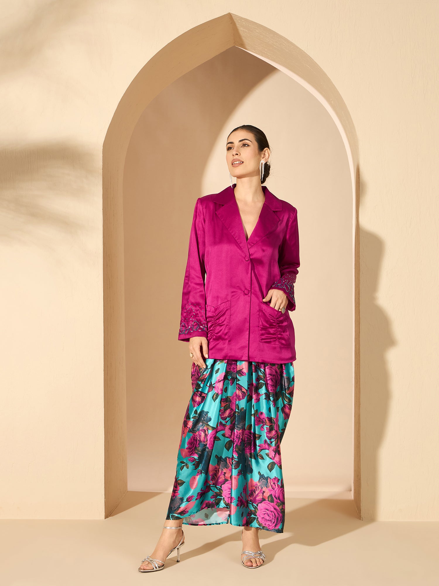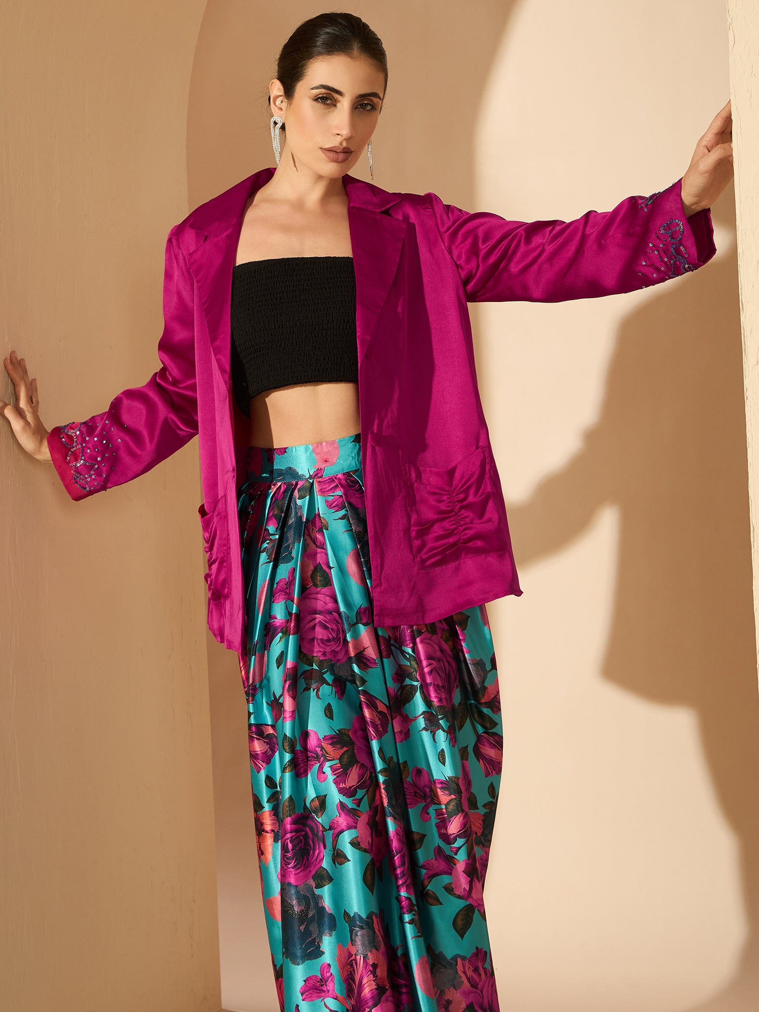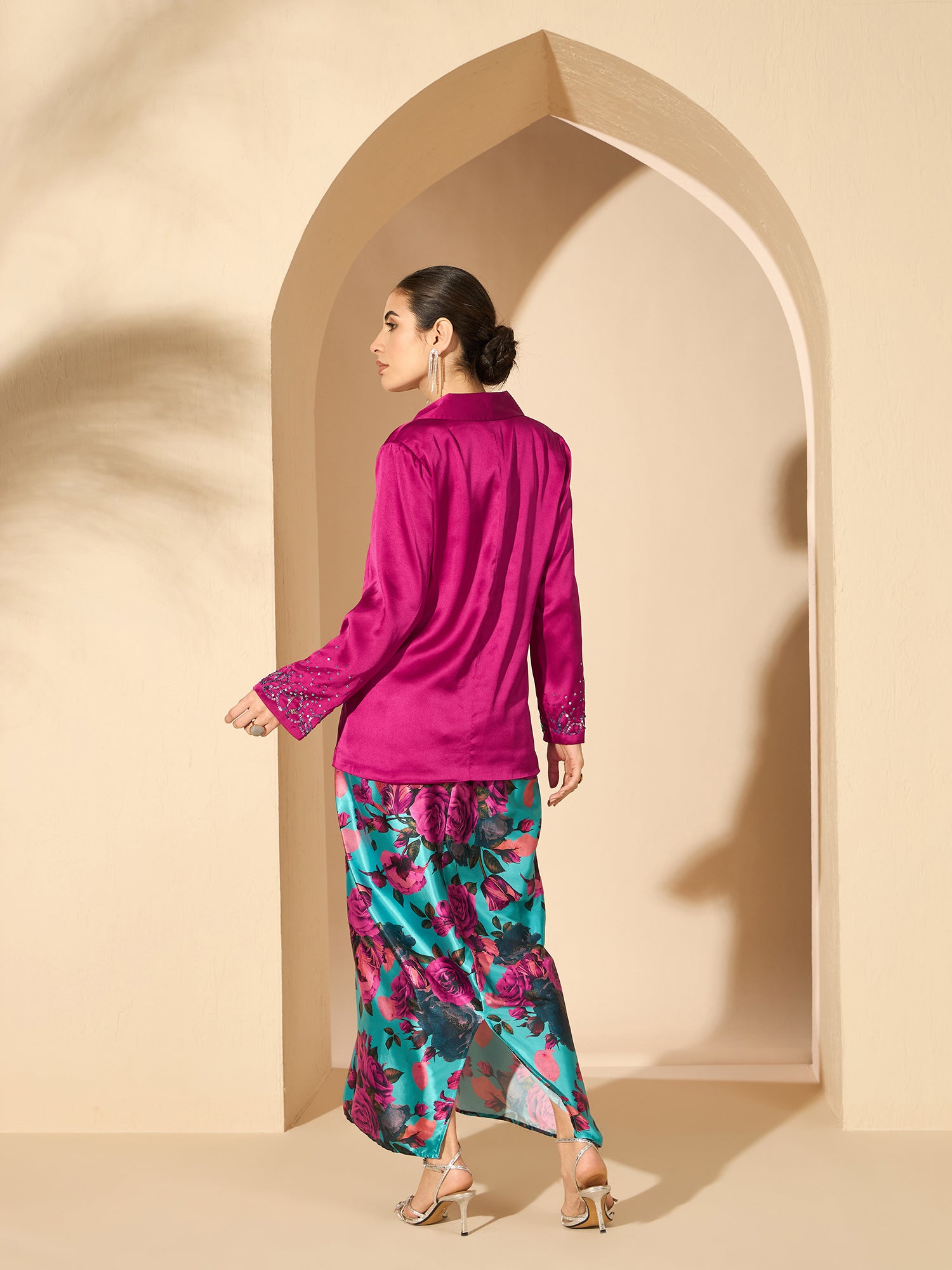 Antheaa Satin Embellished Lapel Collar Shirt with Palazzo