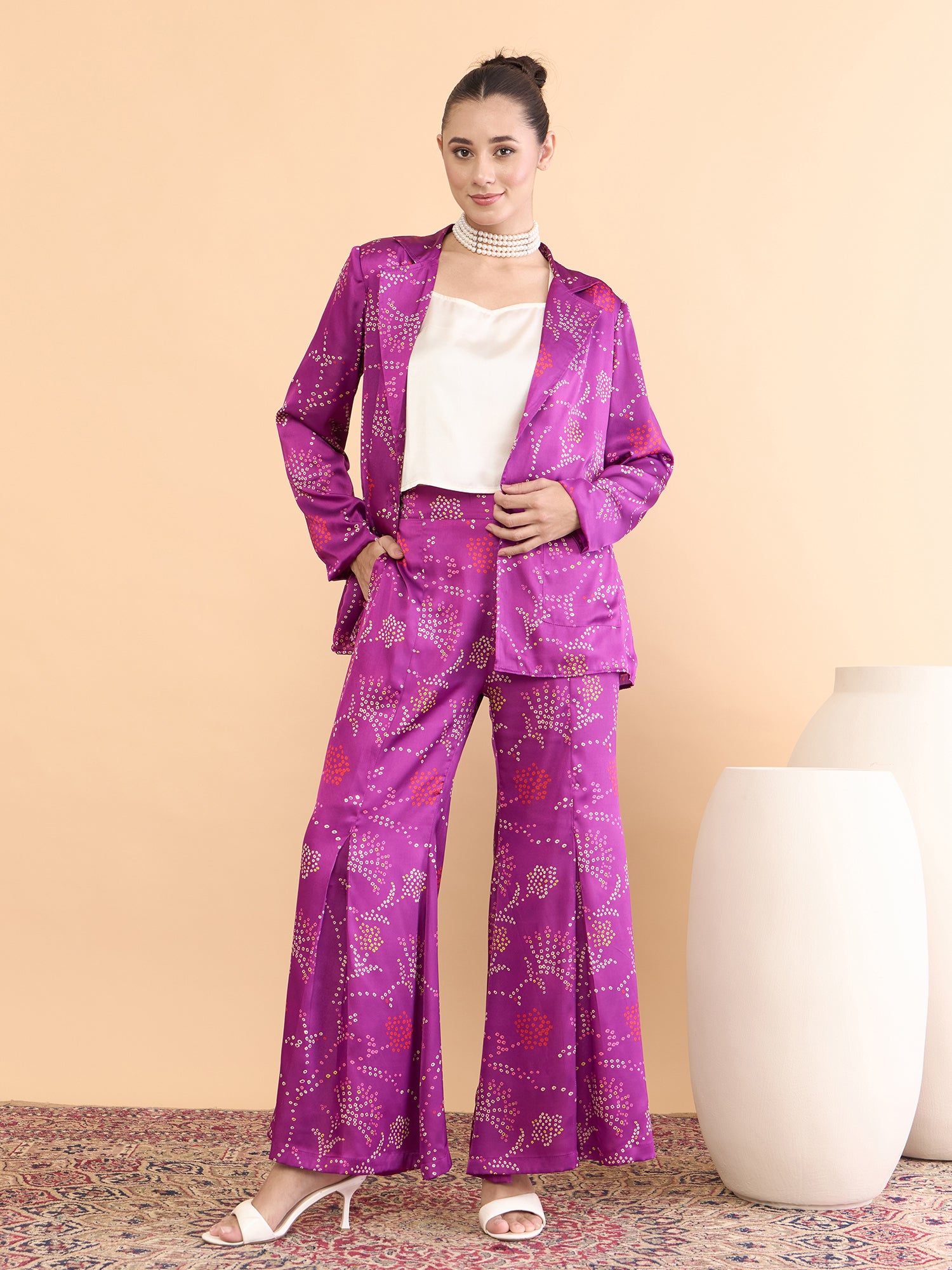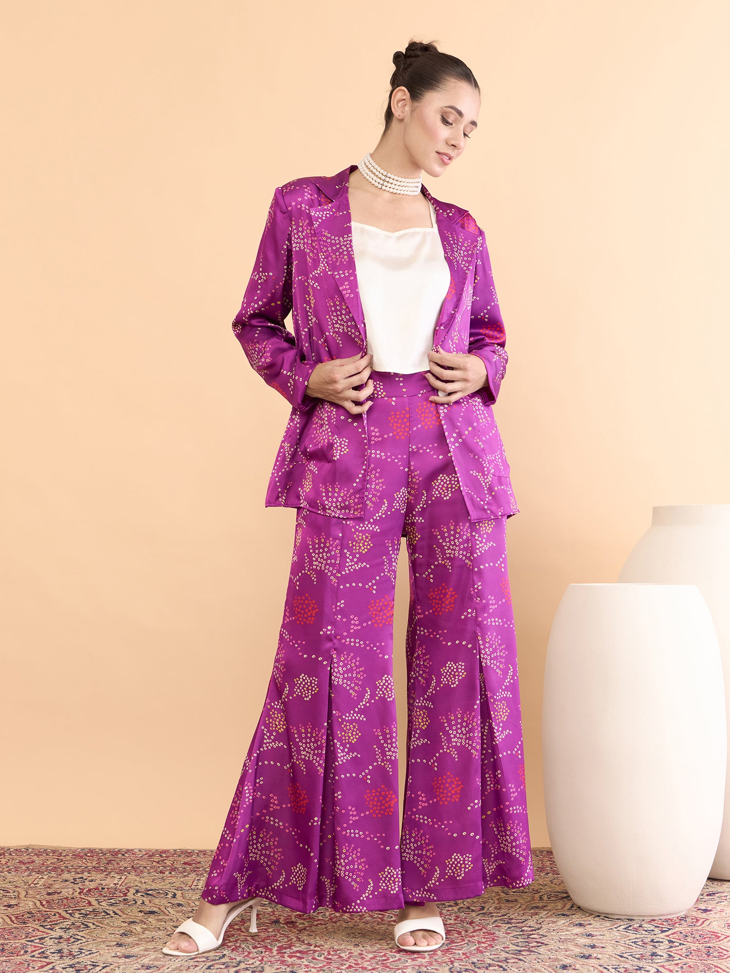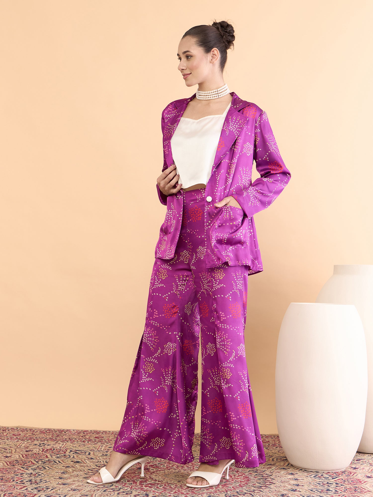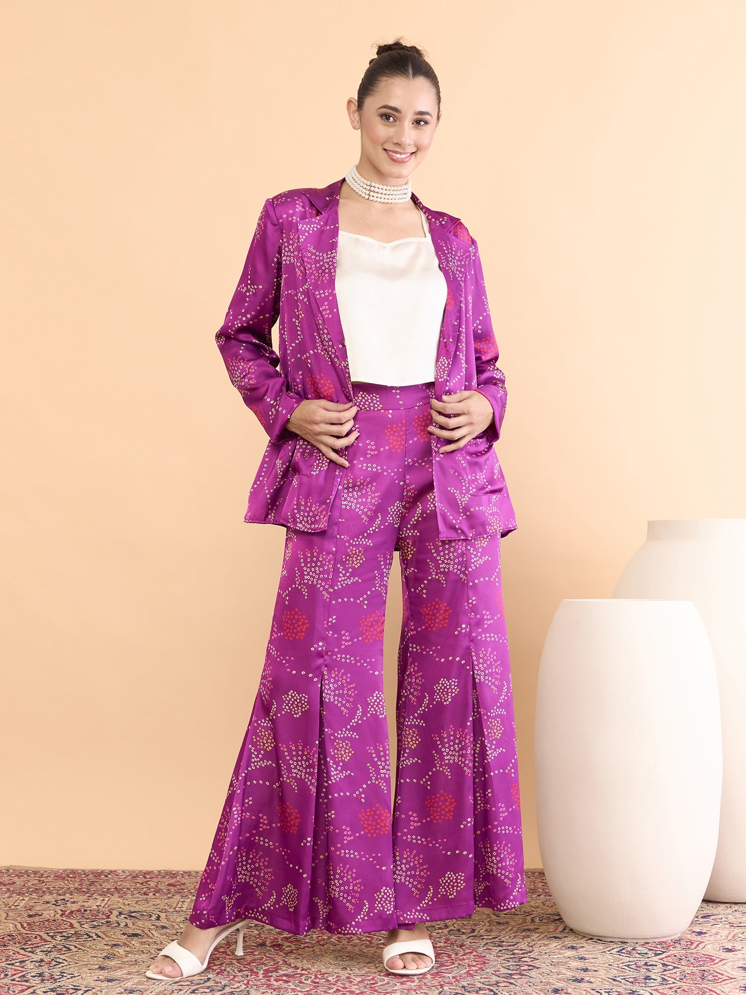 This co-ords consists of a Top,palazzos with jacket