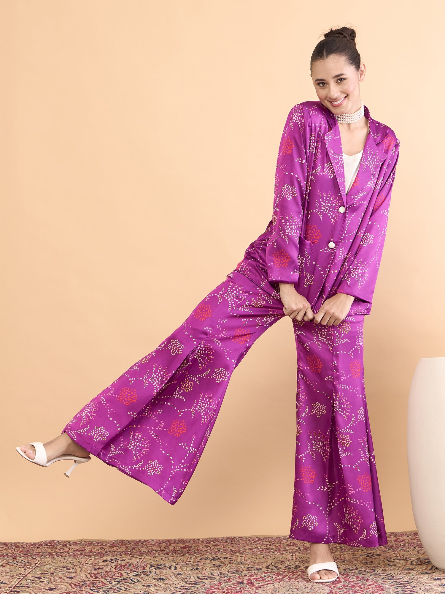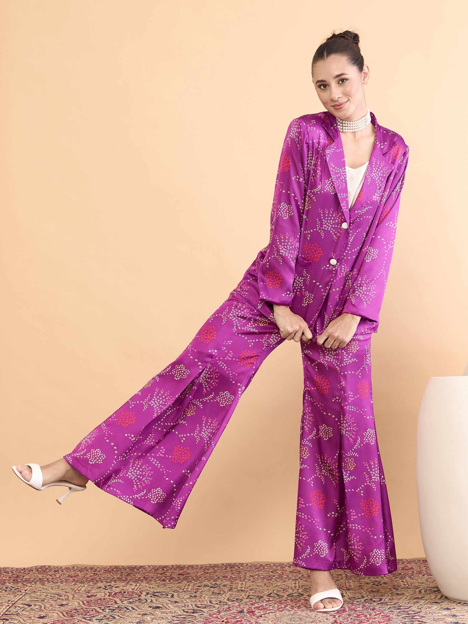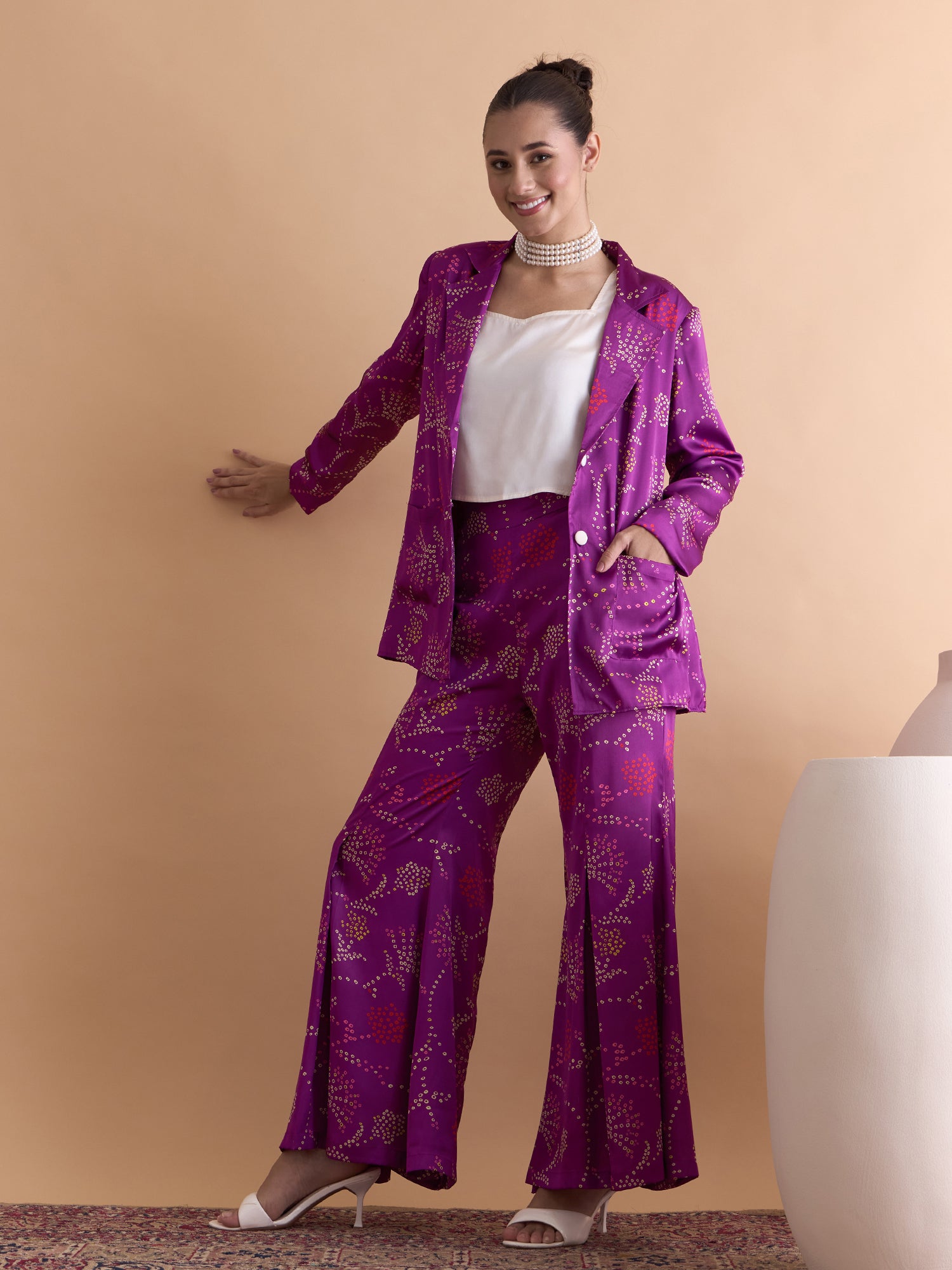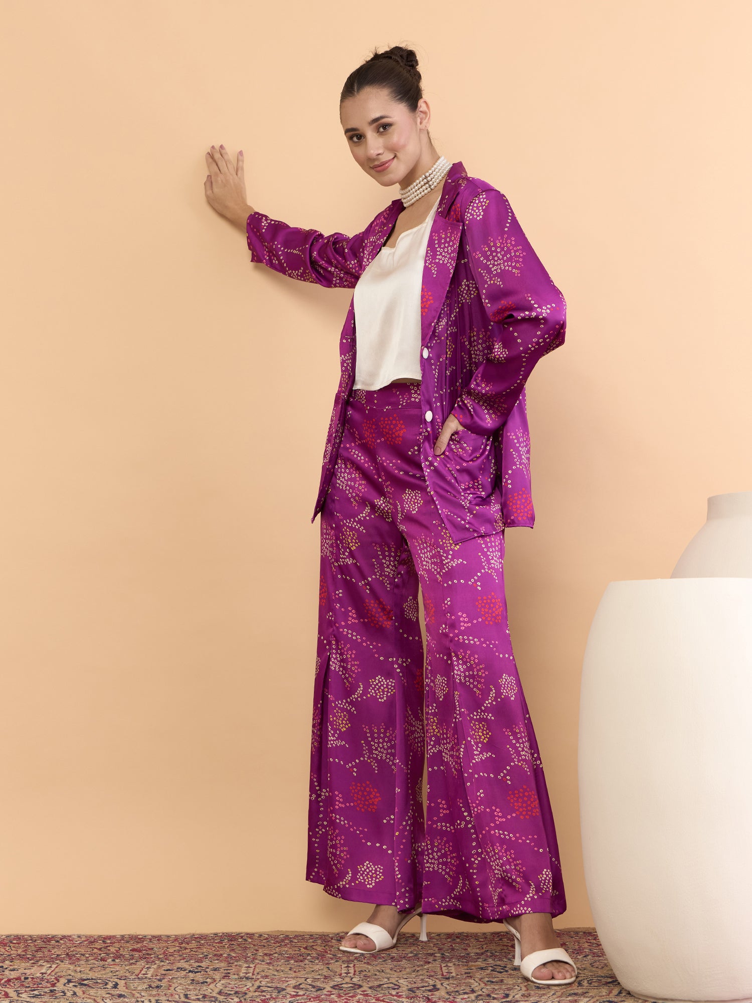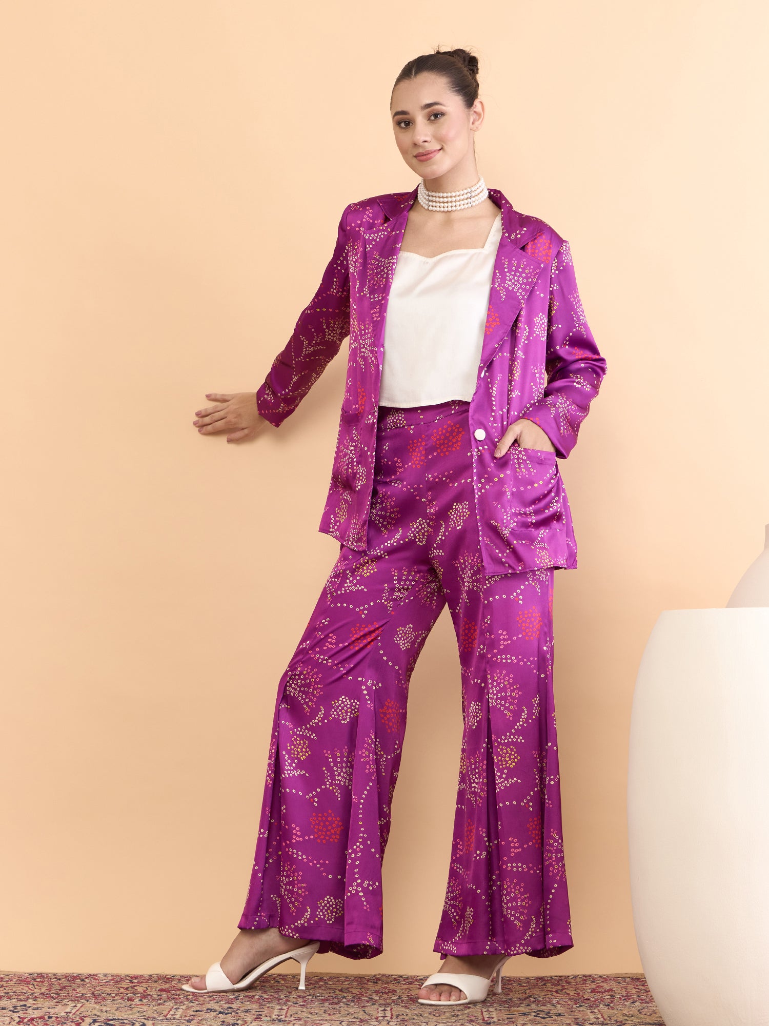 This co-ords consists of a Top,palazzos with jacket