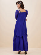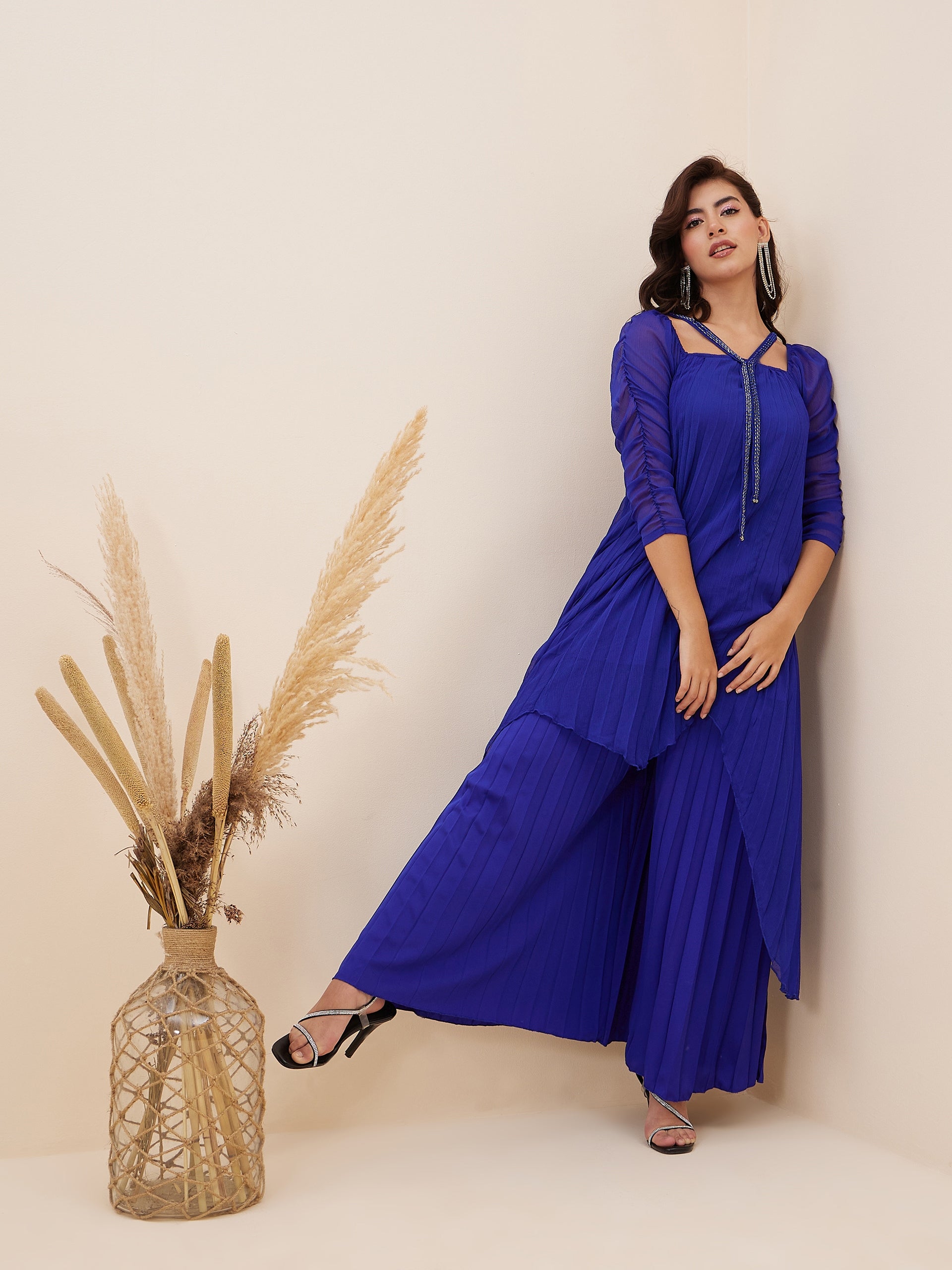 Antheaa Square Neck Puffed Sleeves Pleated A-Line Top With Palazzos