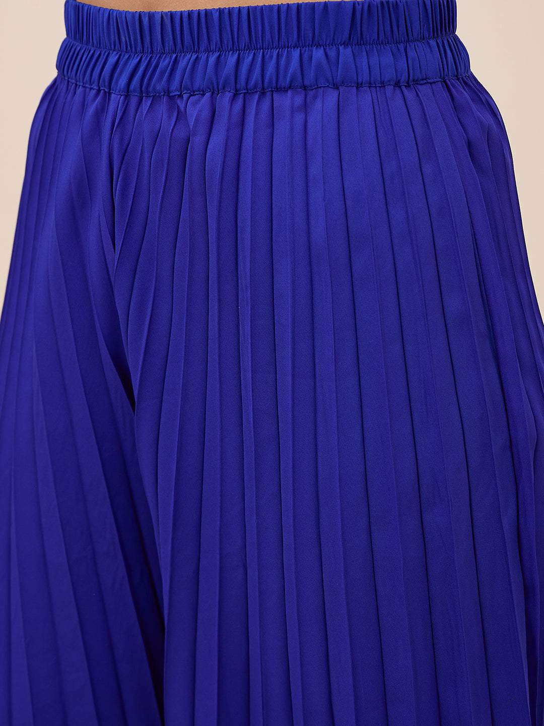 Blue solid palazzos with elasticated waistband and slip-on closure