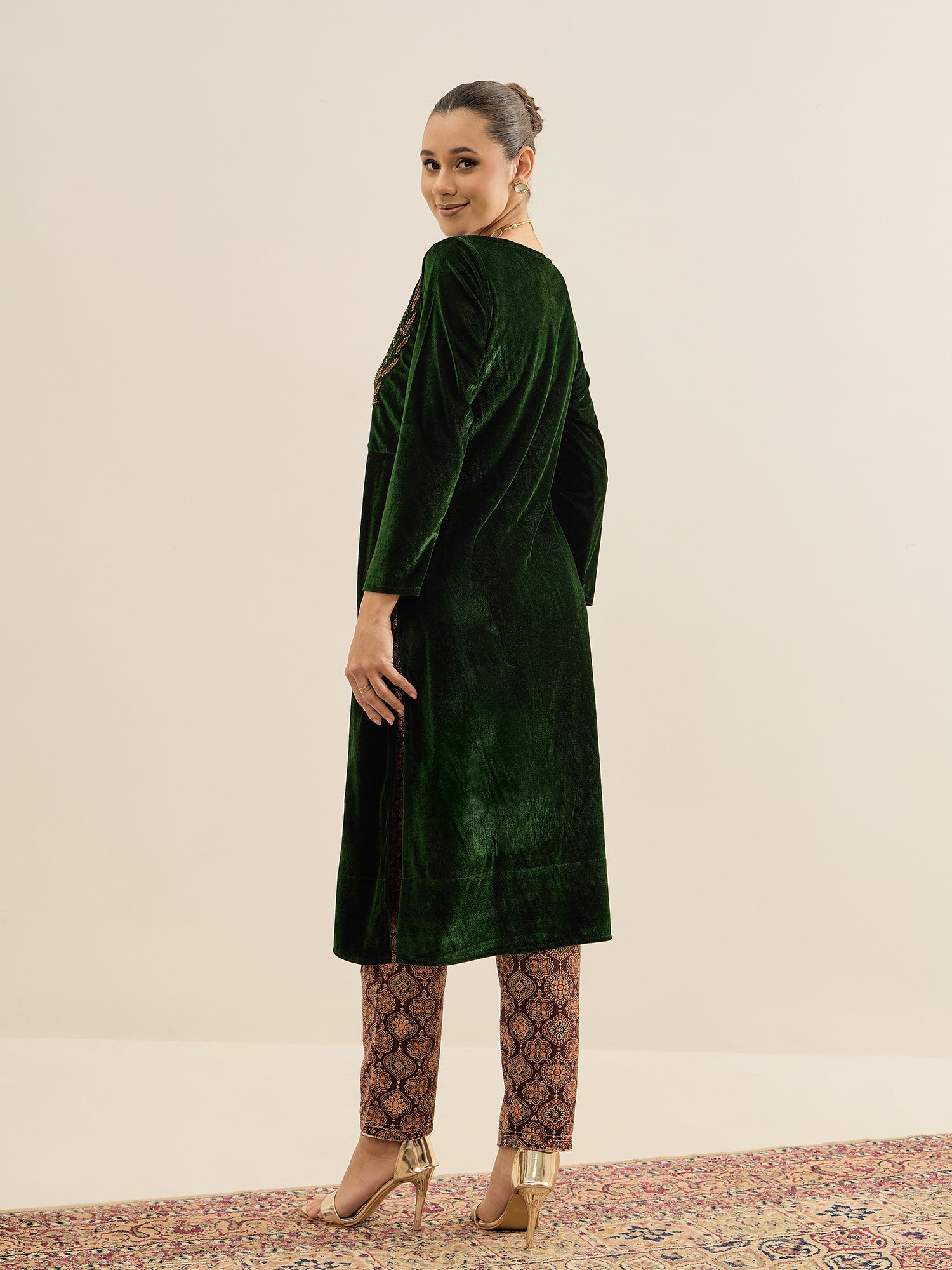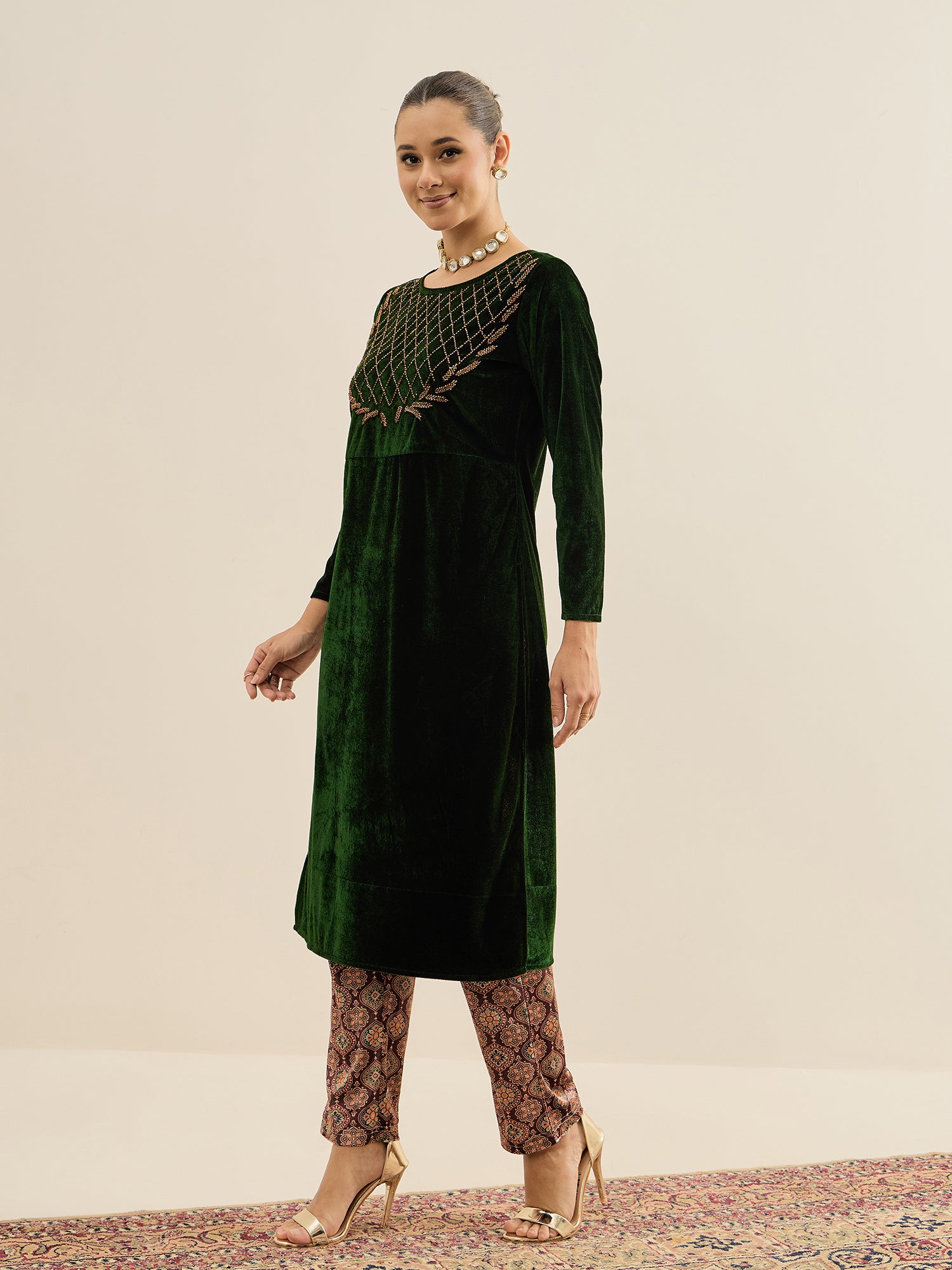 Antheaa Velvet Embellished Tunic with Trousers