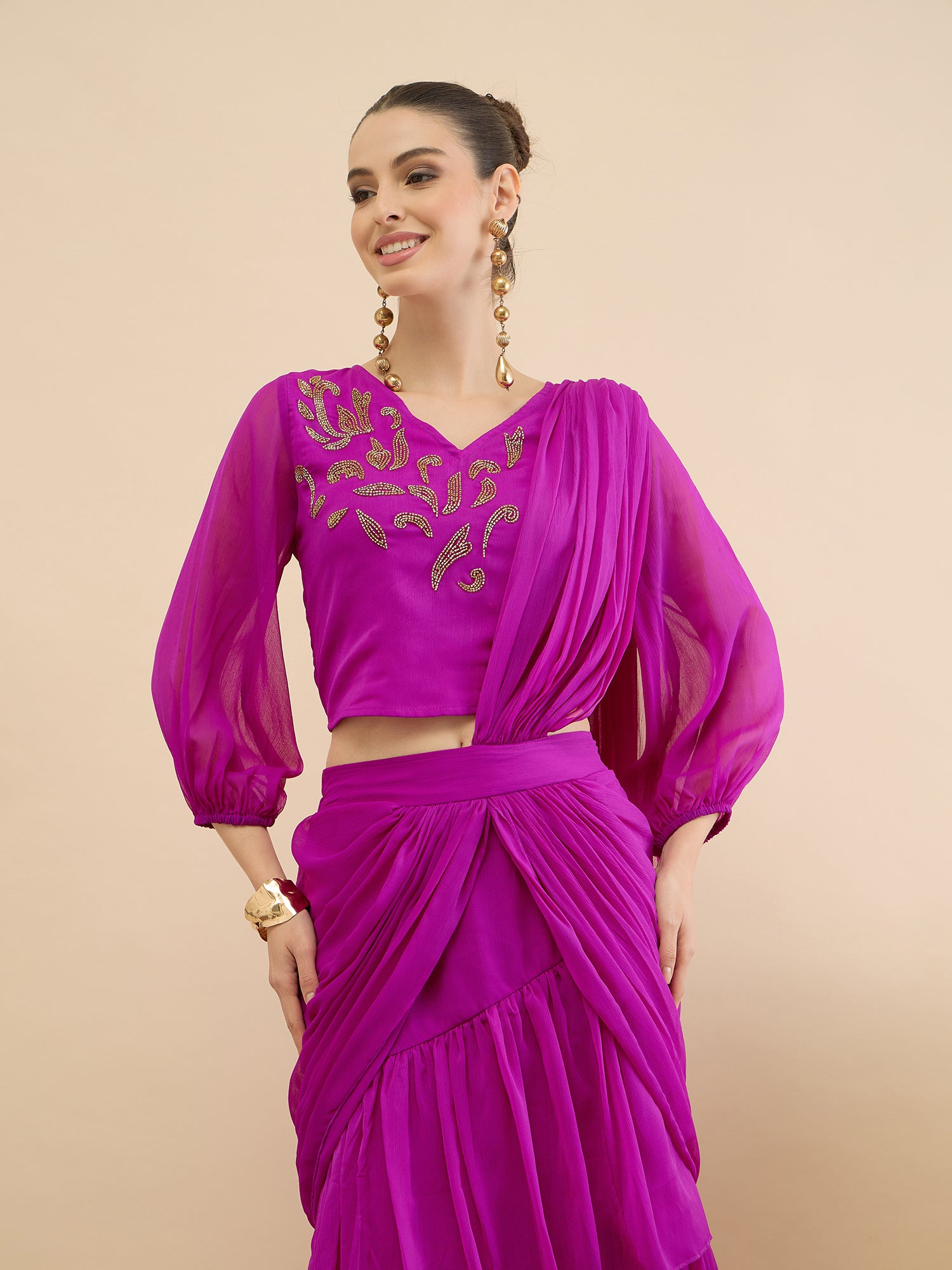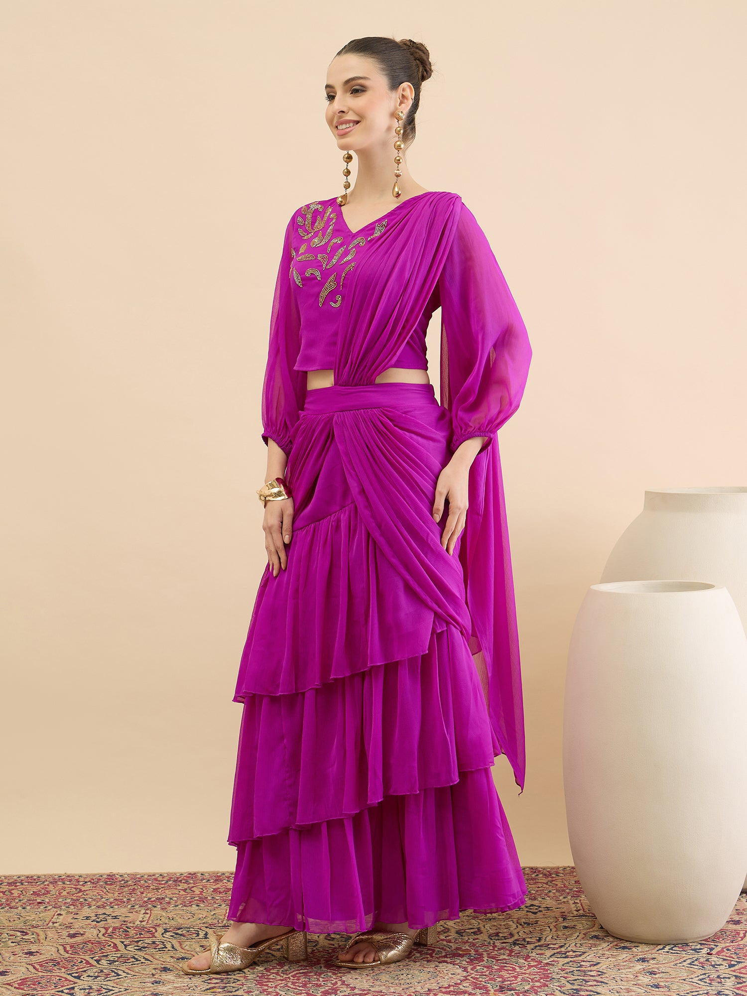 Antheaa Women Chiffon Embellished Co-Ords