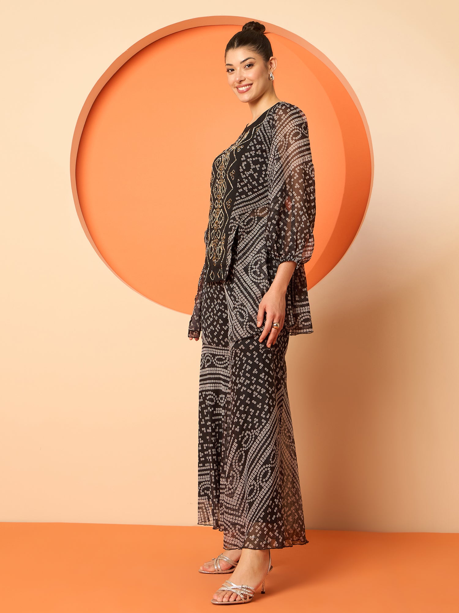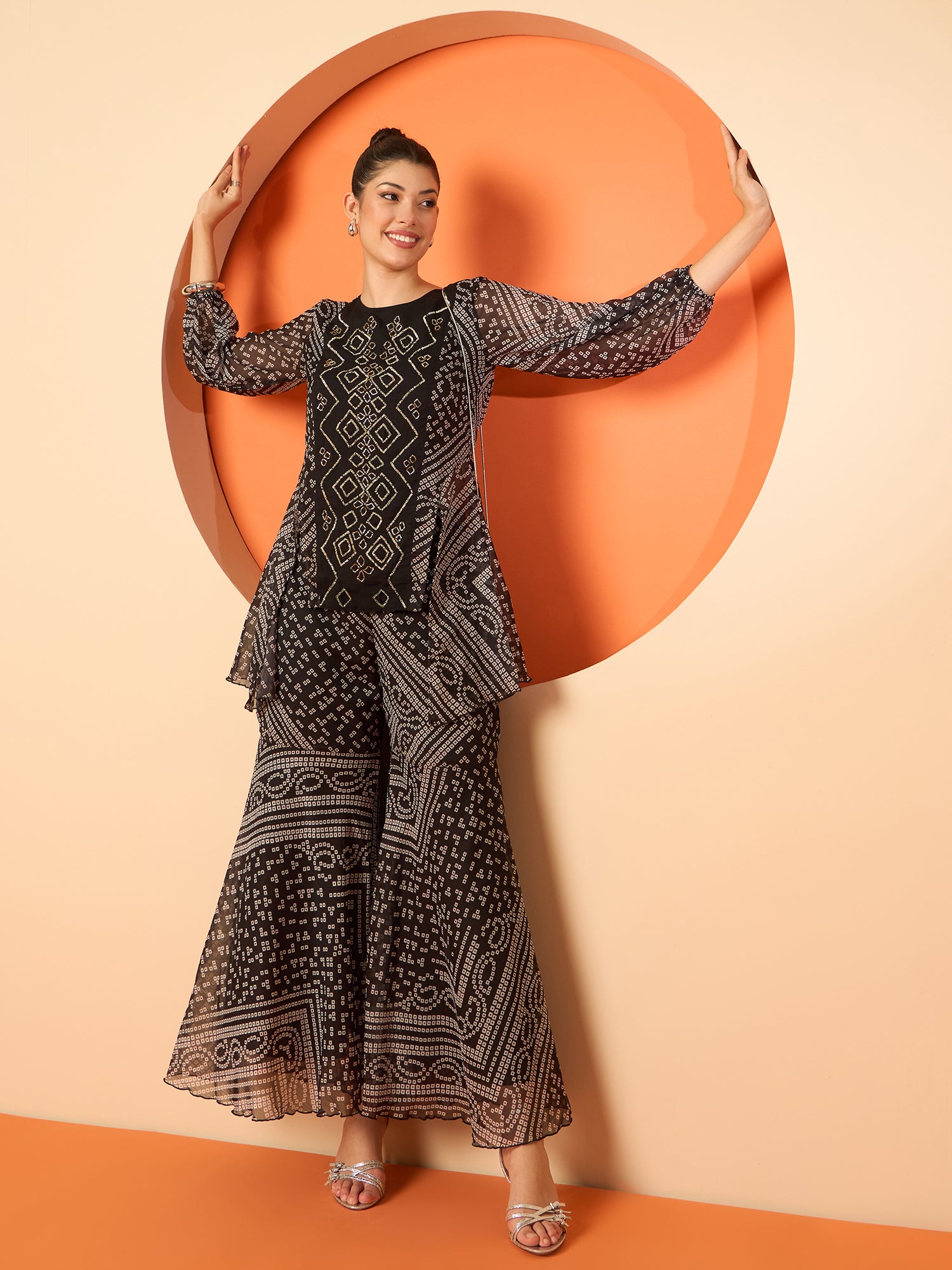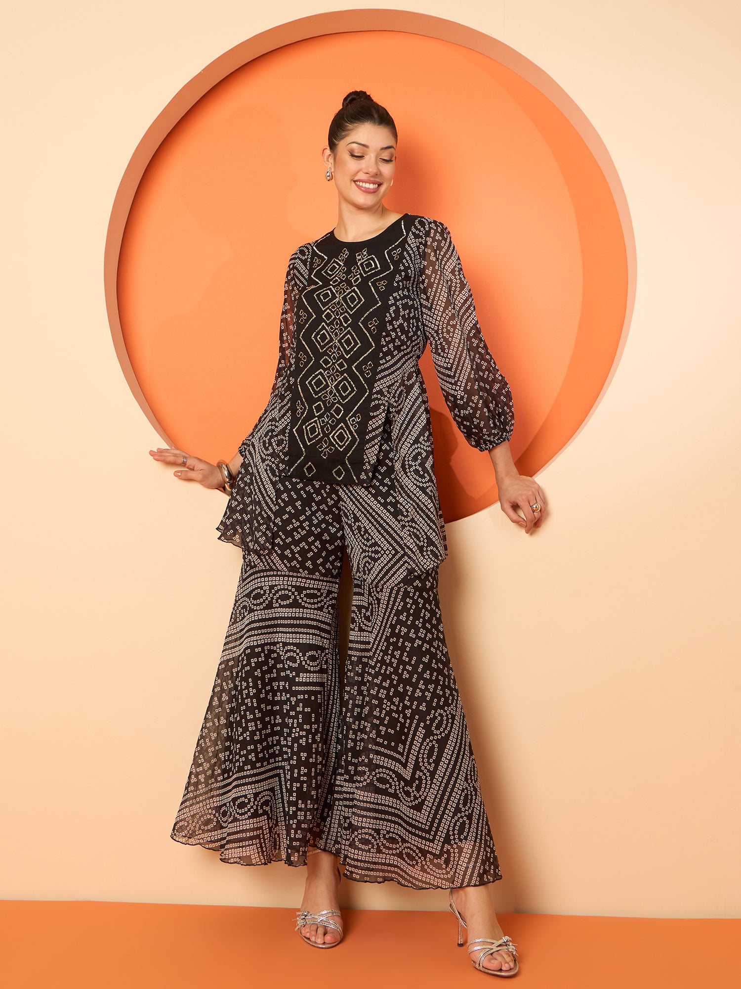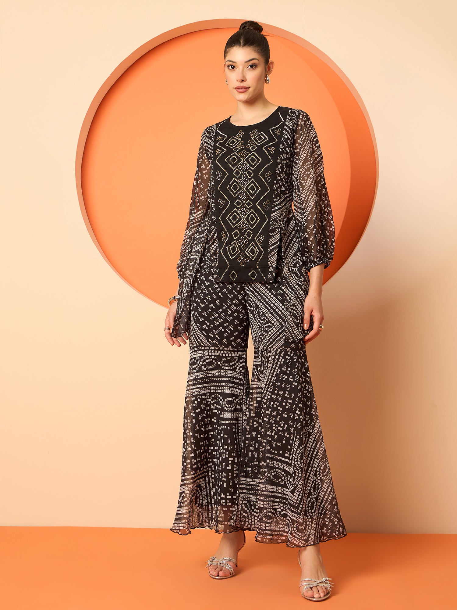 Antheaa Women Embellished and Printed Top & Palazzos