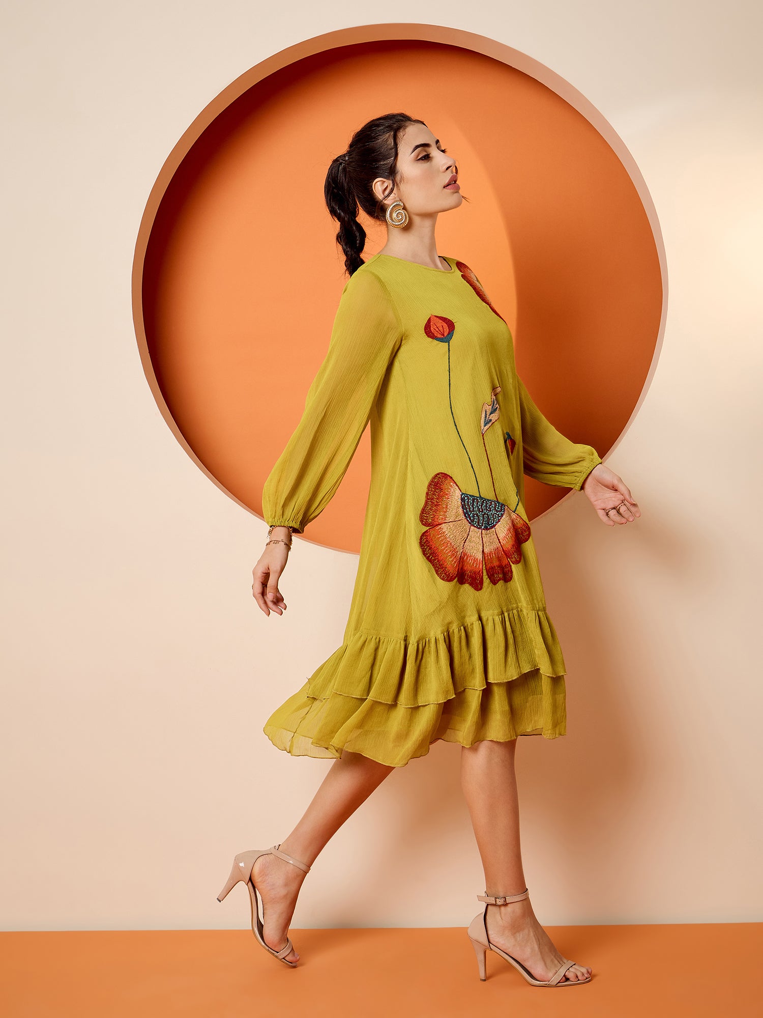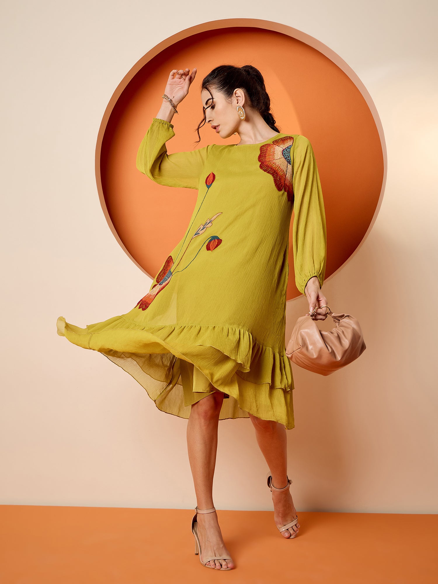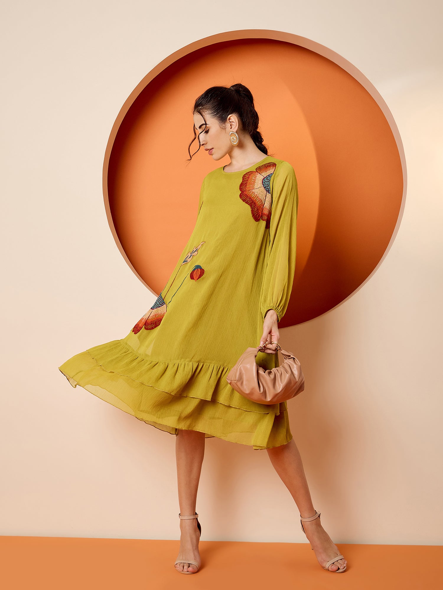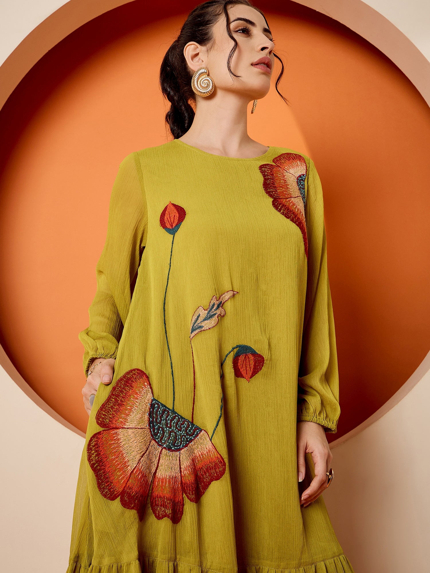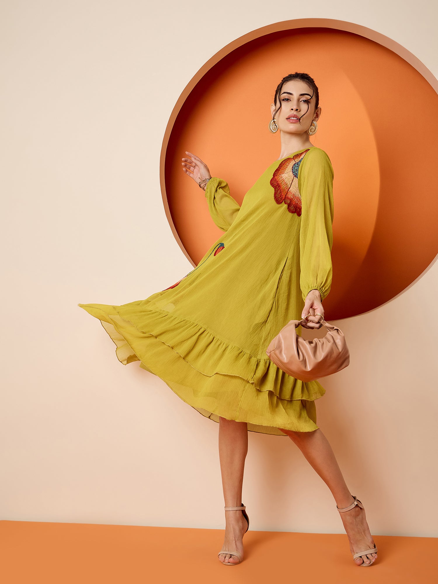 Antheaa Chiffon Embroidered A-Line Knee Length Dress