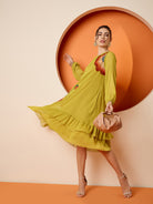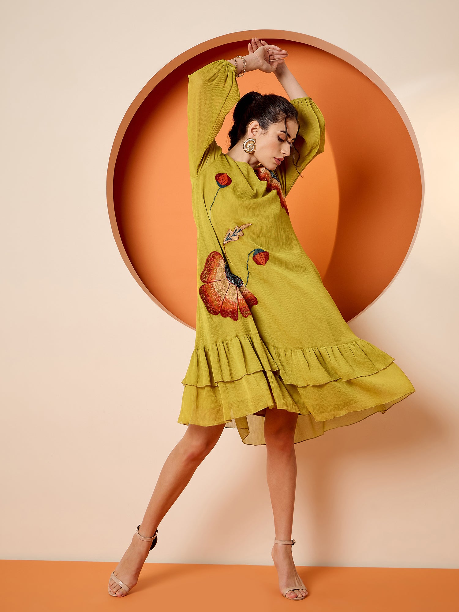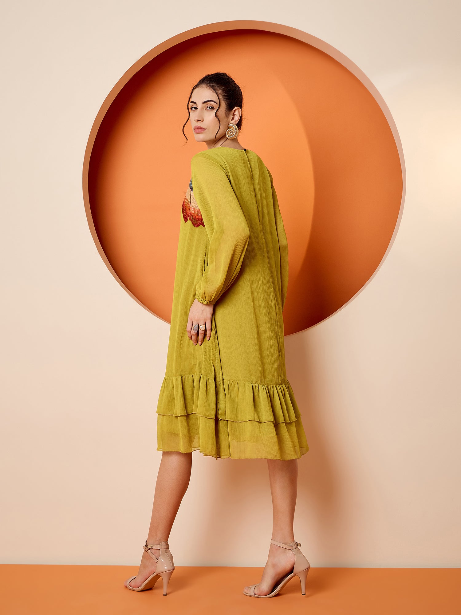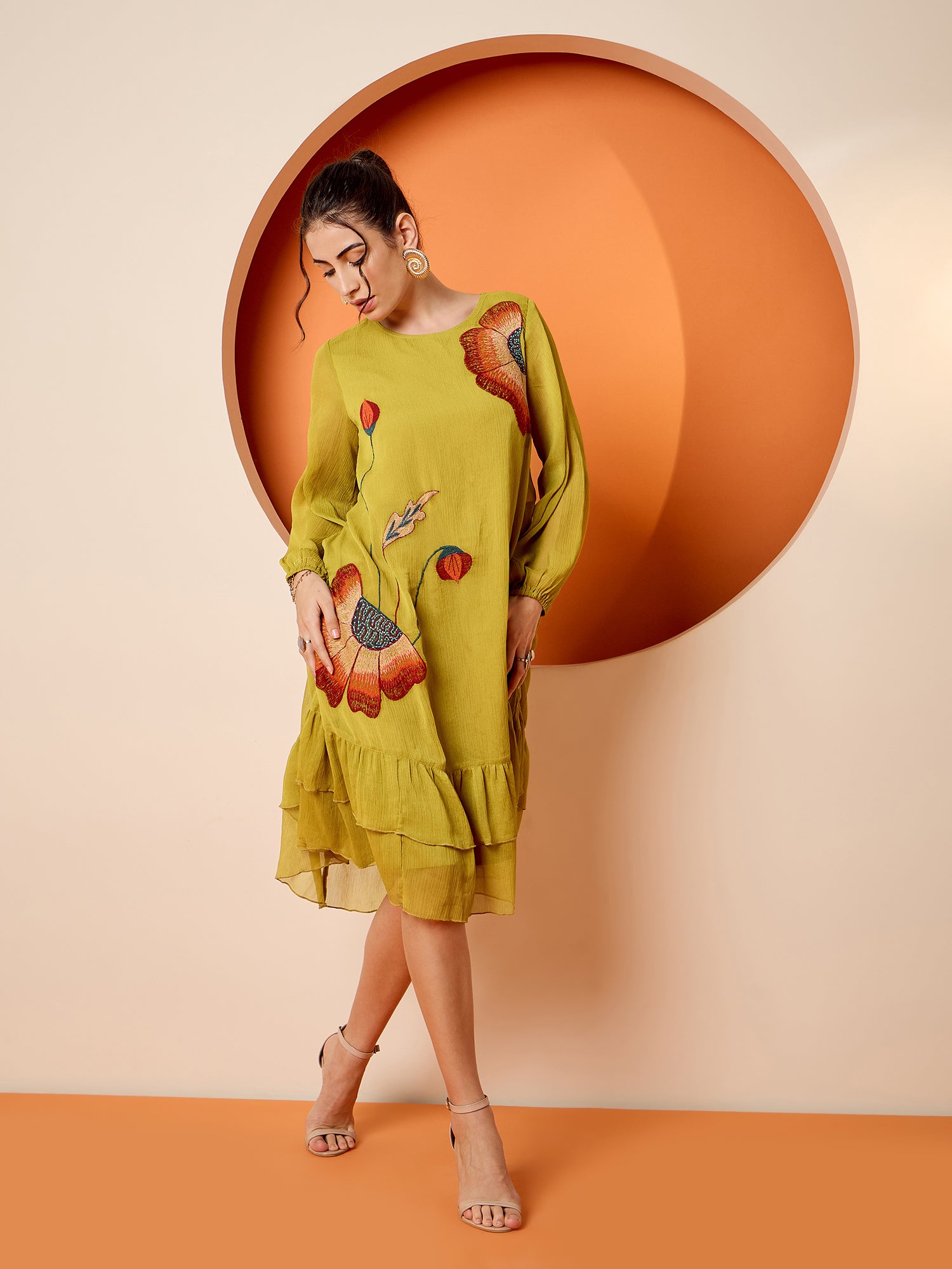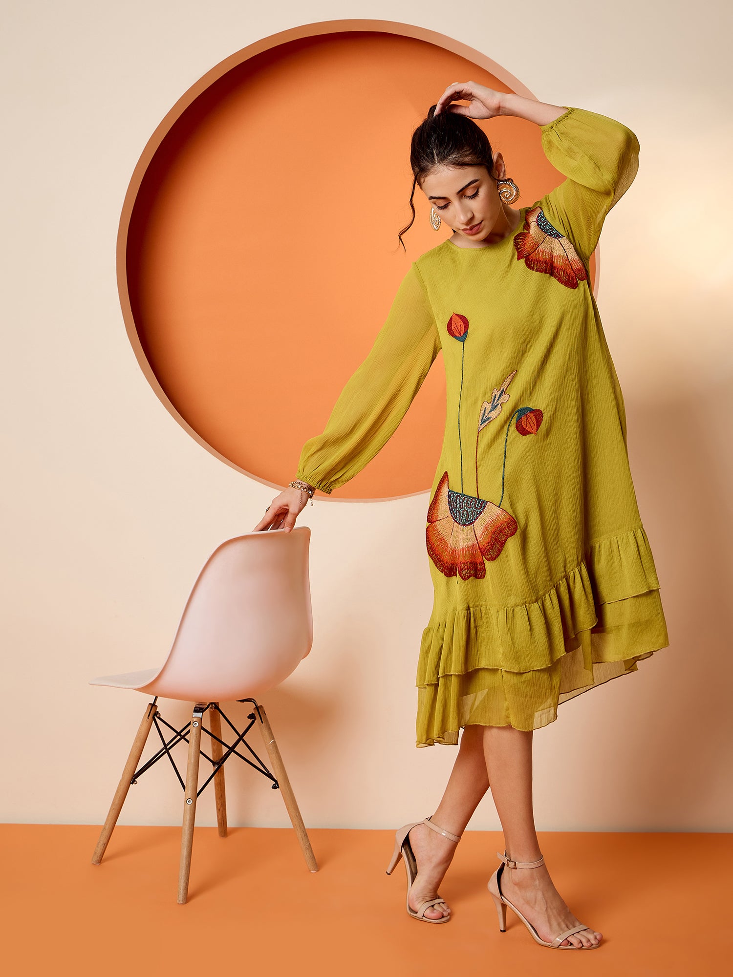 Antheaa Chiffon Embroidered A-Line Knee Length Dress