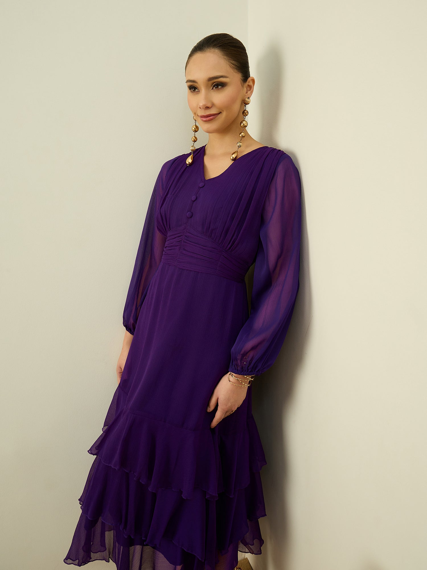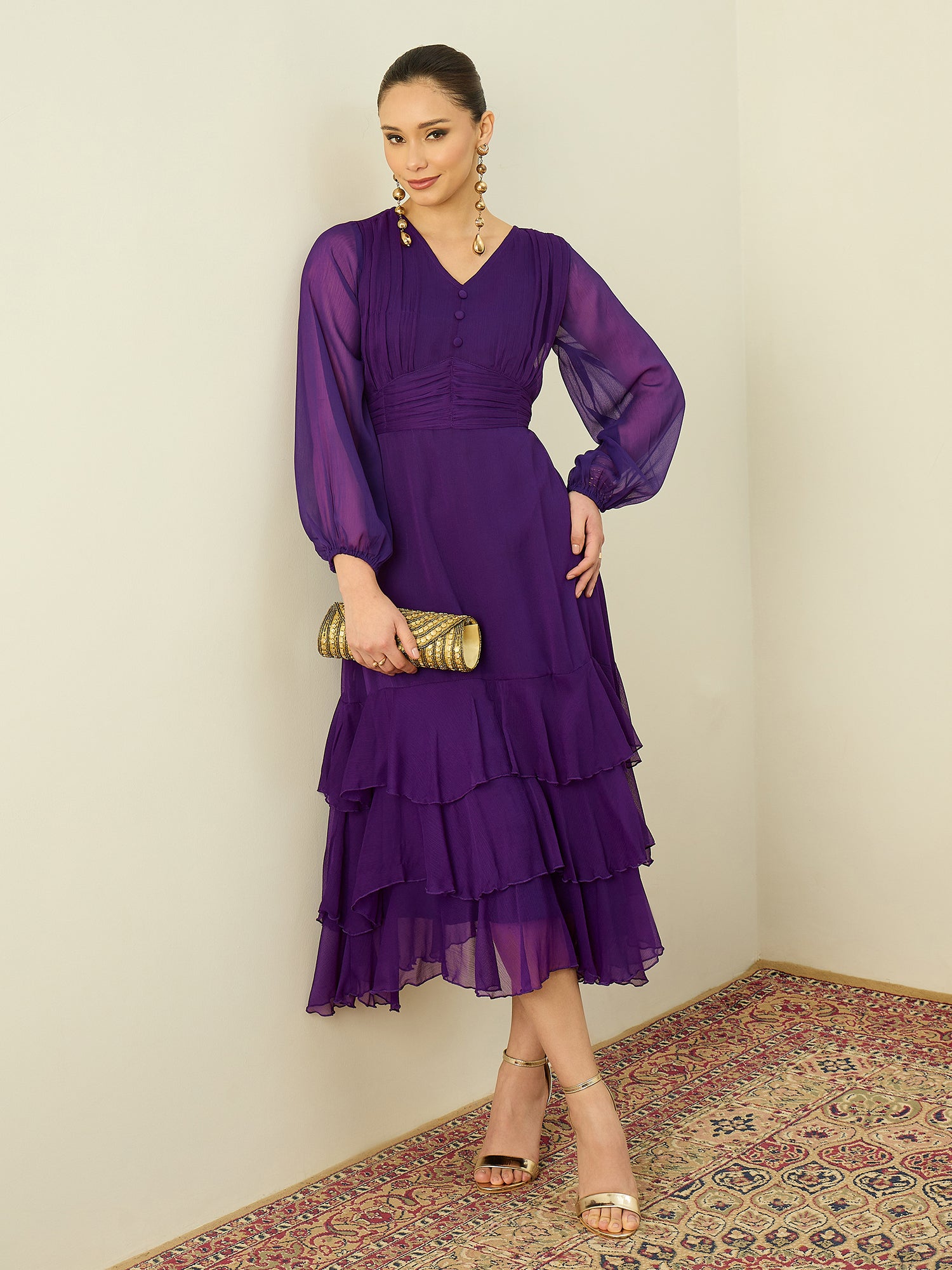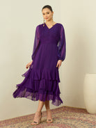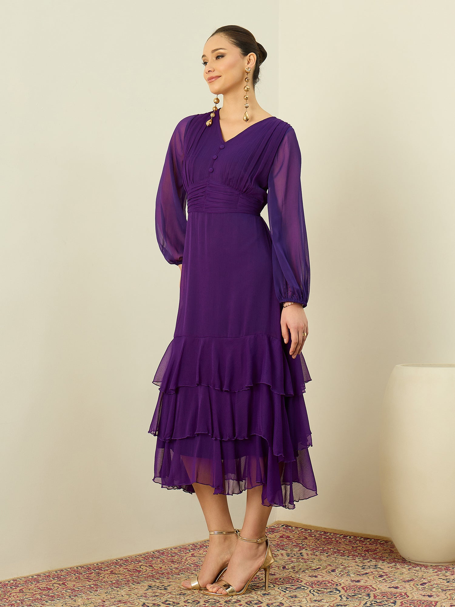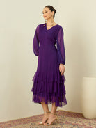 Antheaa Chiffon Midi Gathered & Pleated Dress