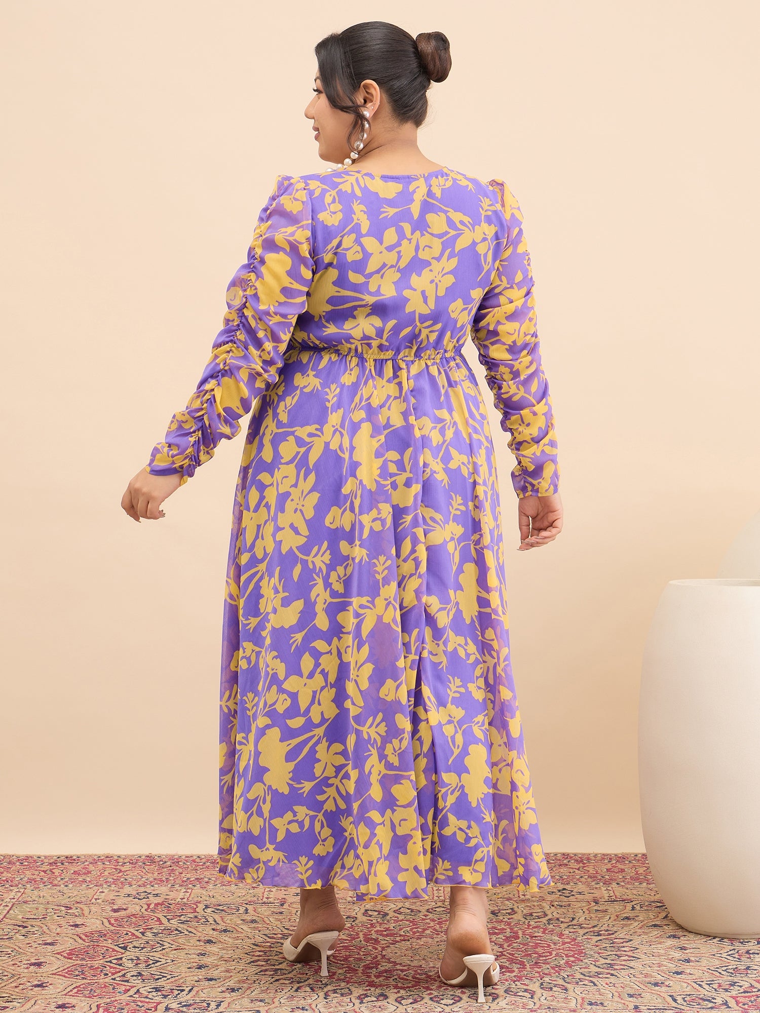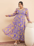 - Purple and purple floral print a-line dress