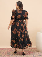 - Black and black floral print a-line dress