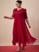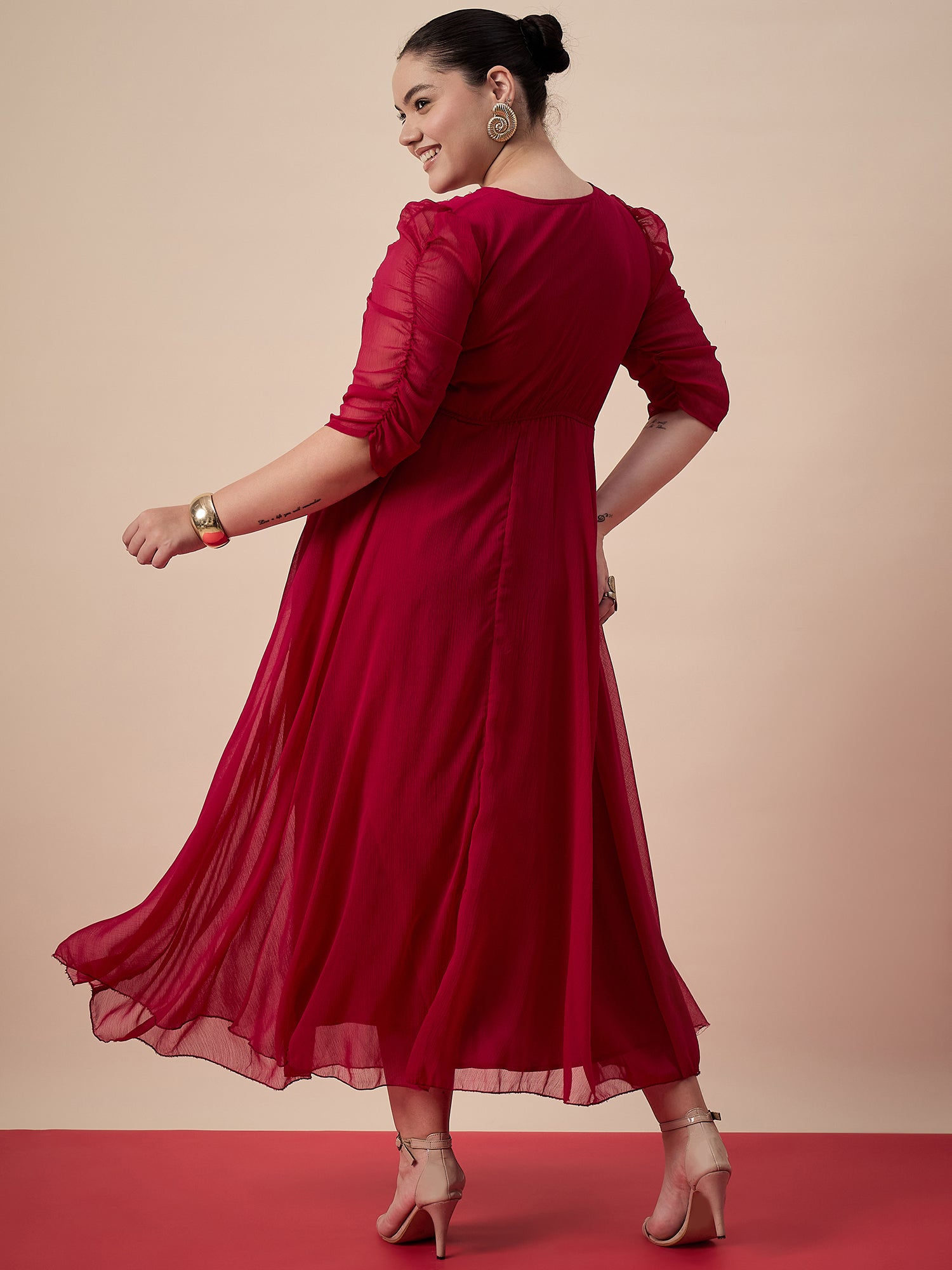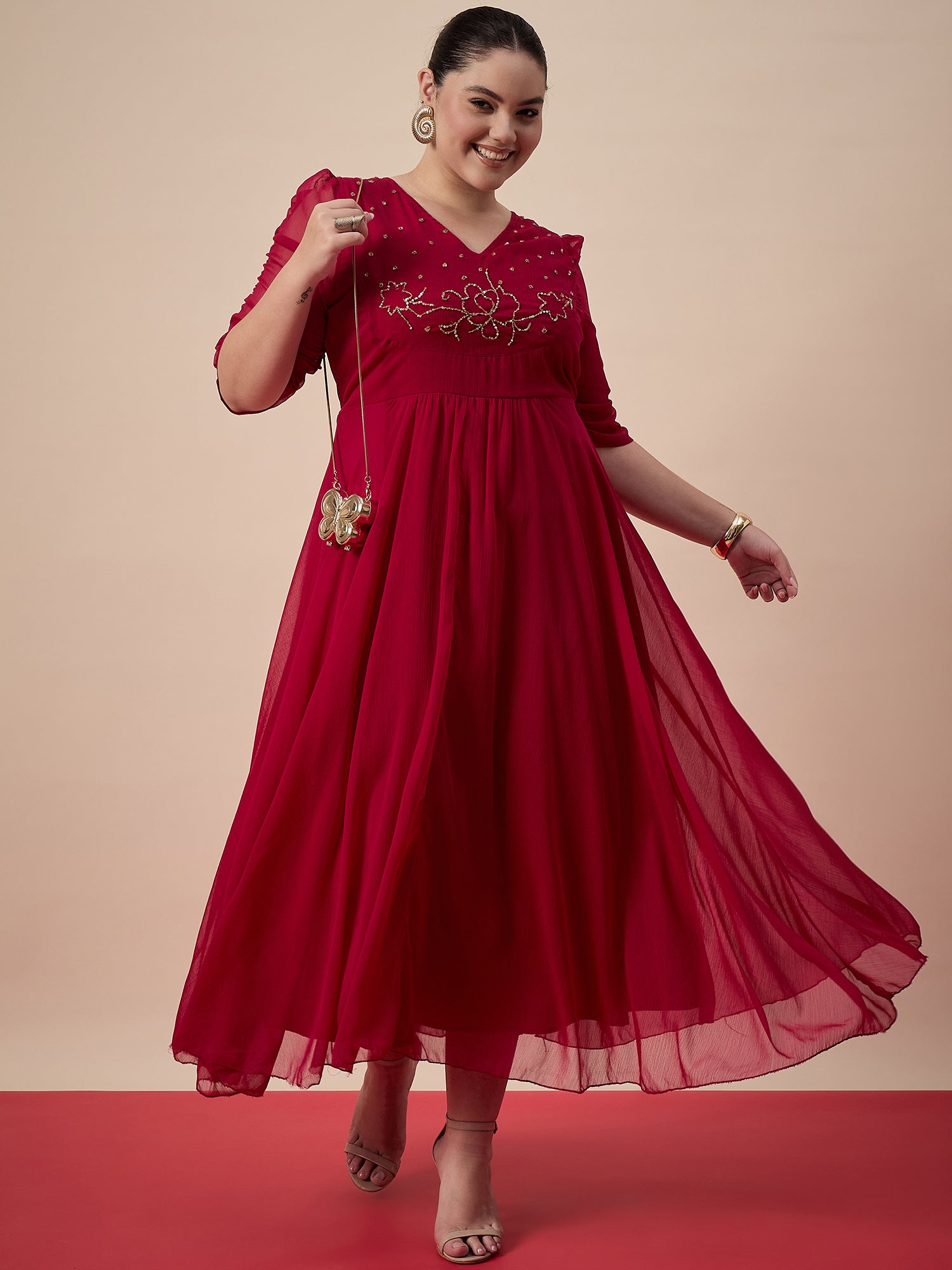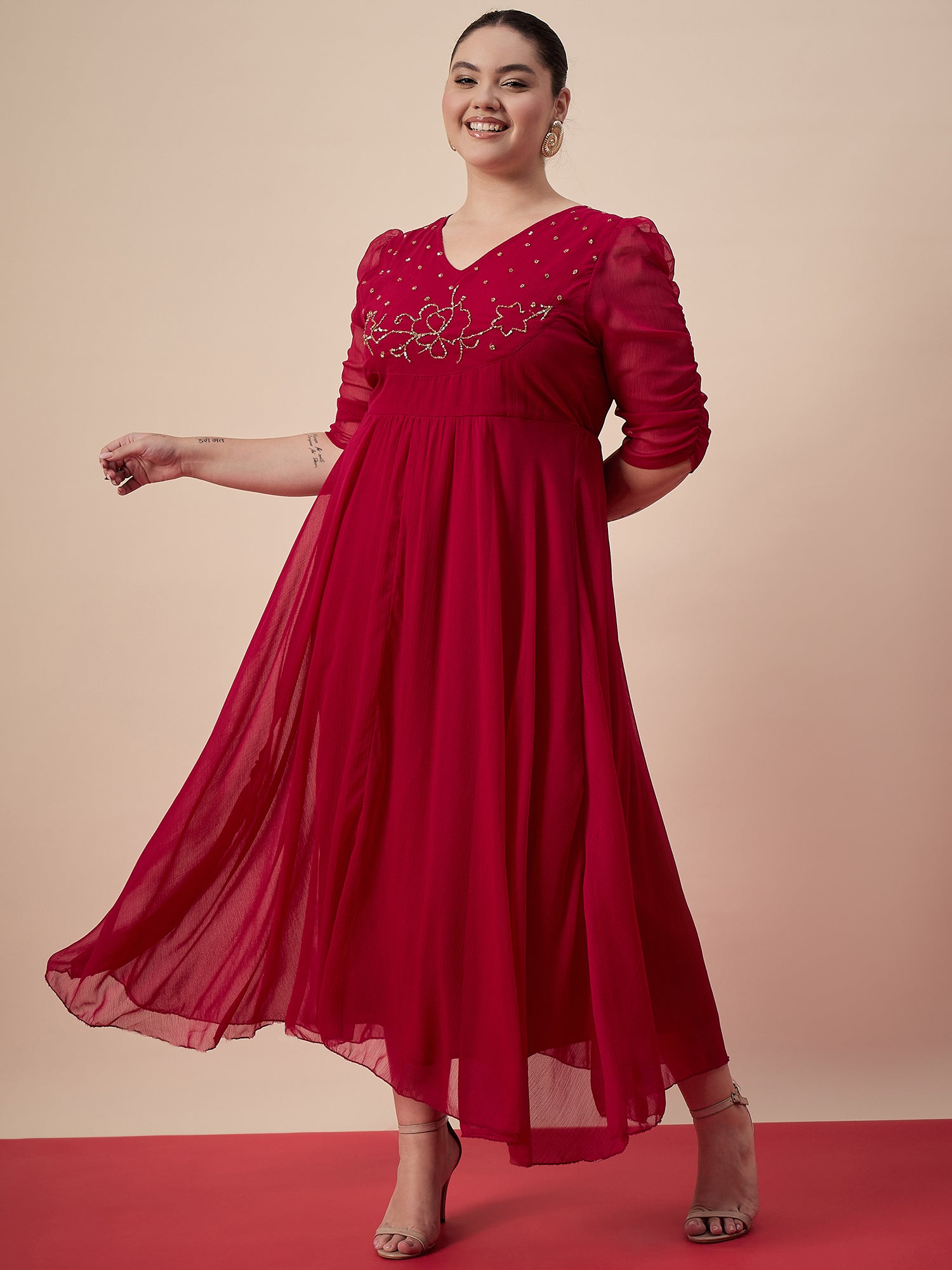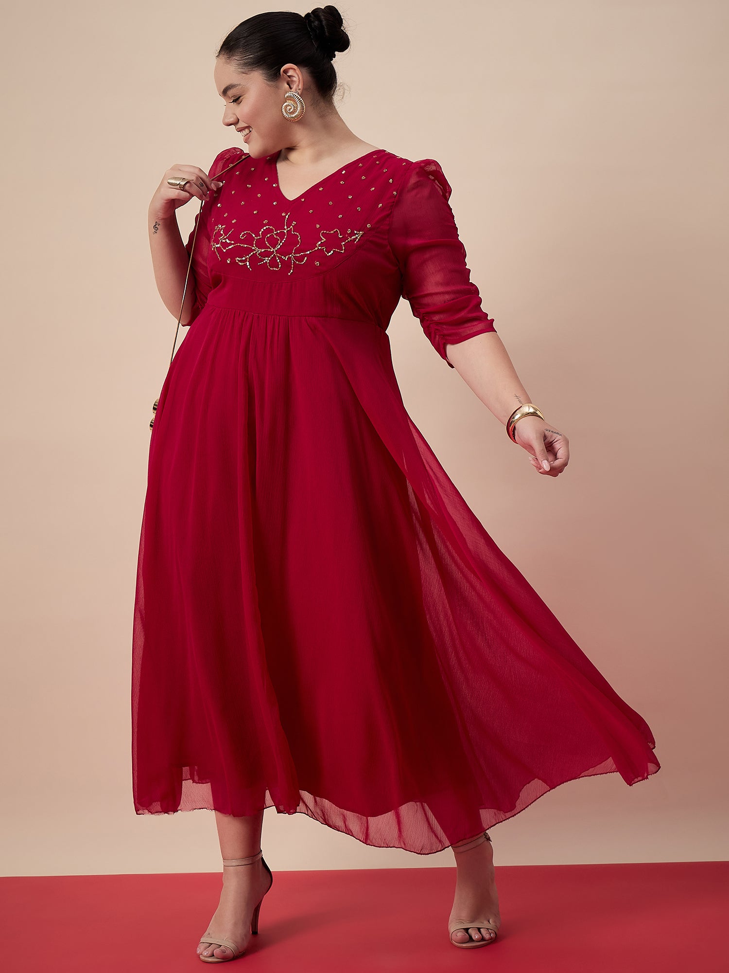 Antheaa Curve Floral Embellished Sequined Chiffon Fit & Flare Maxi Dress