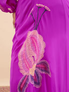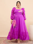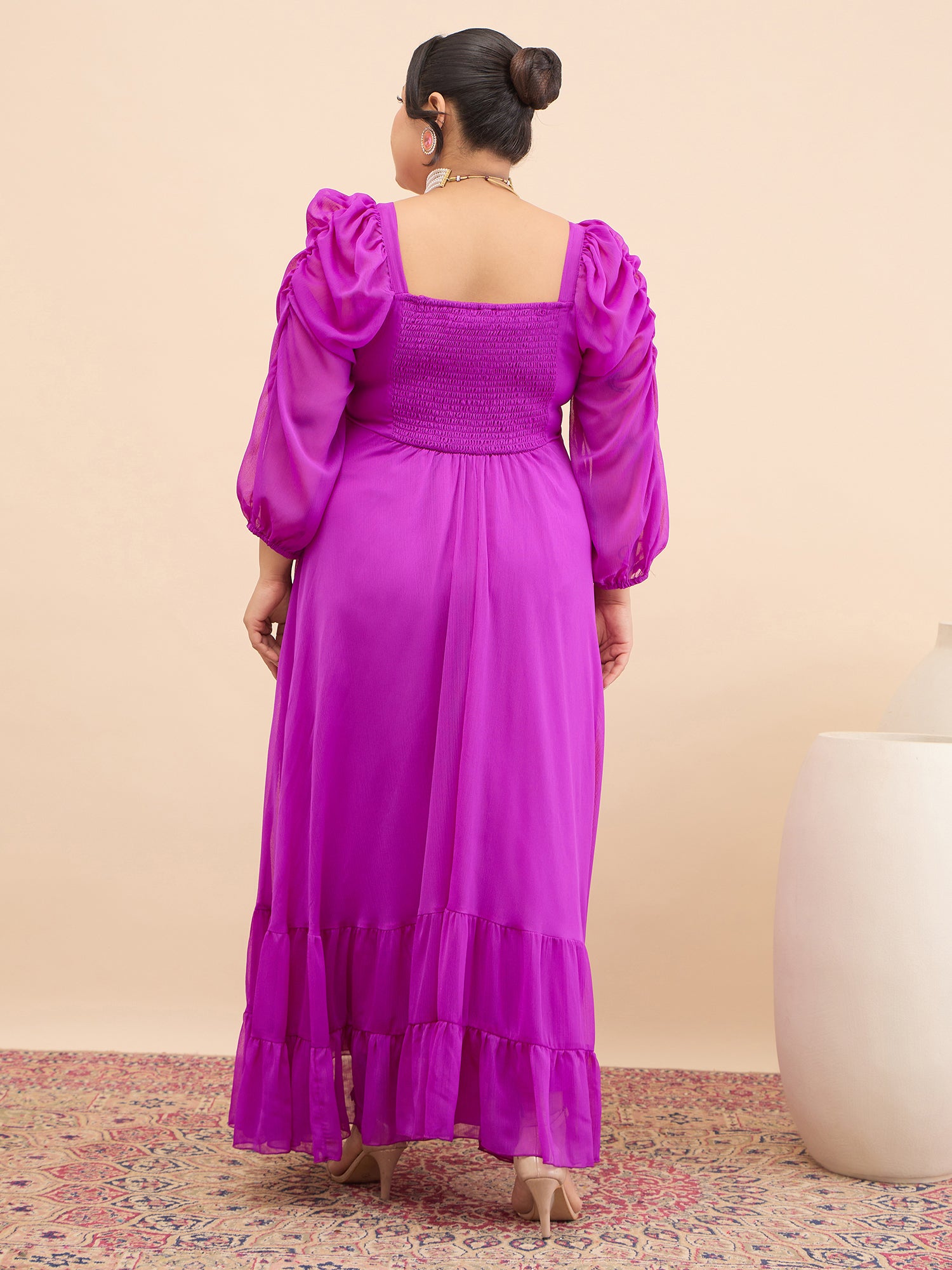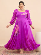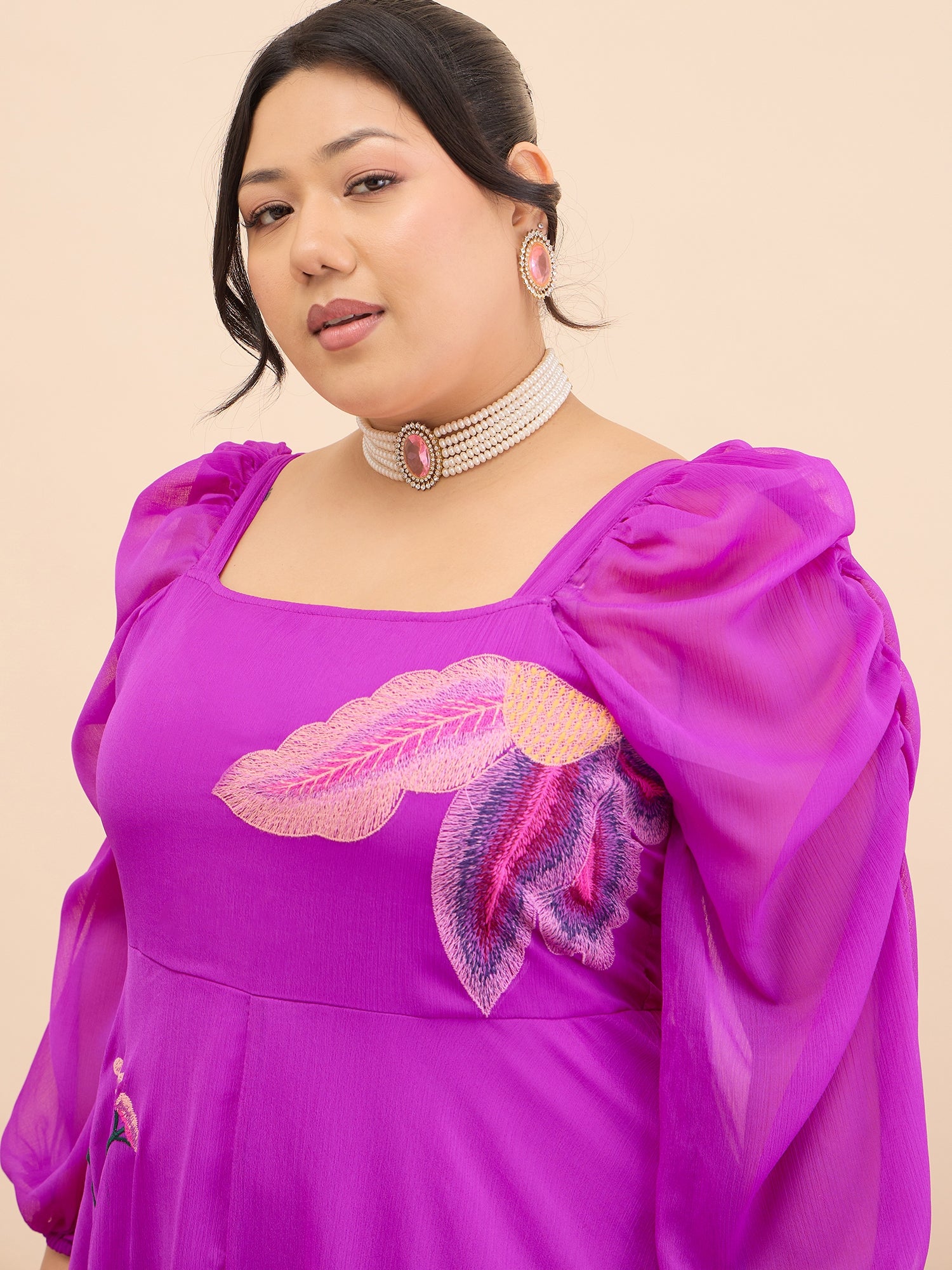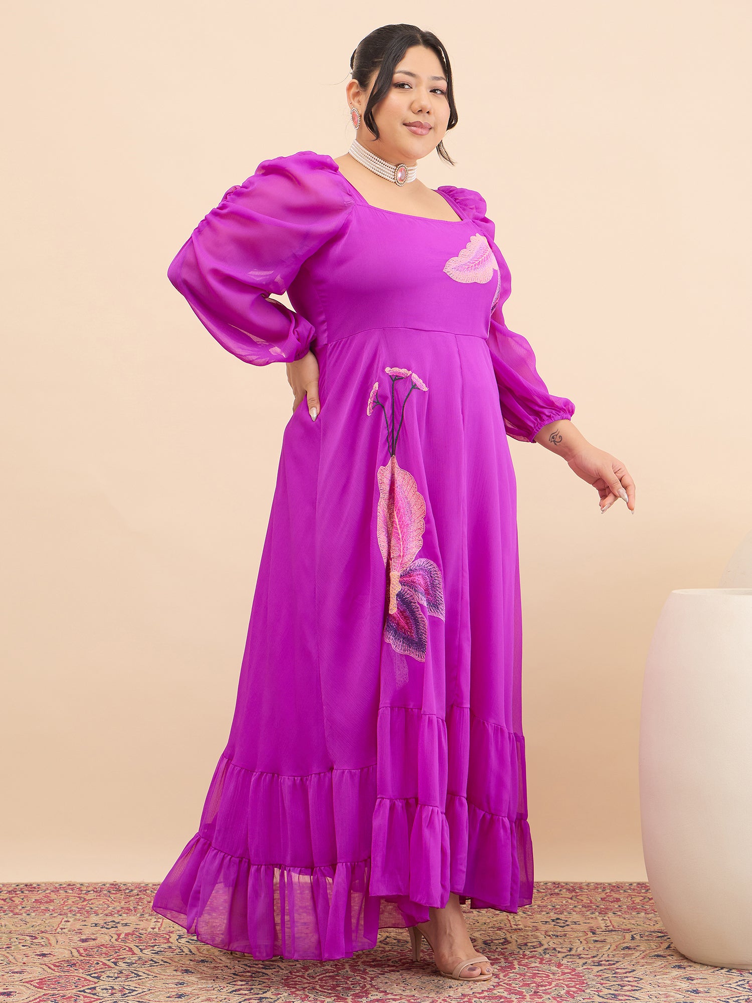 Antheaa Curve Floral Embroidered Puff Sleeve Chiffon Maxi Dress