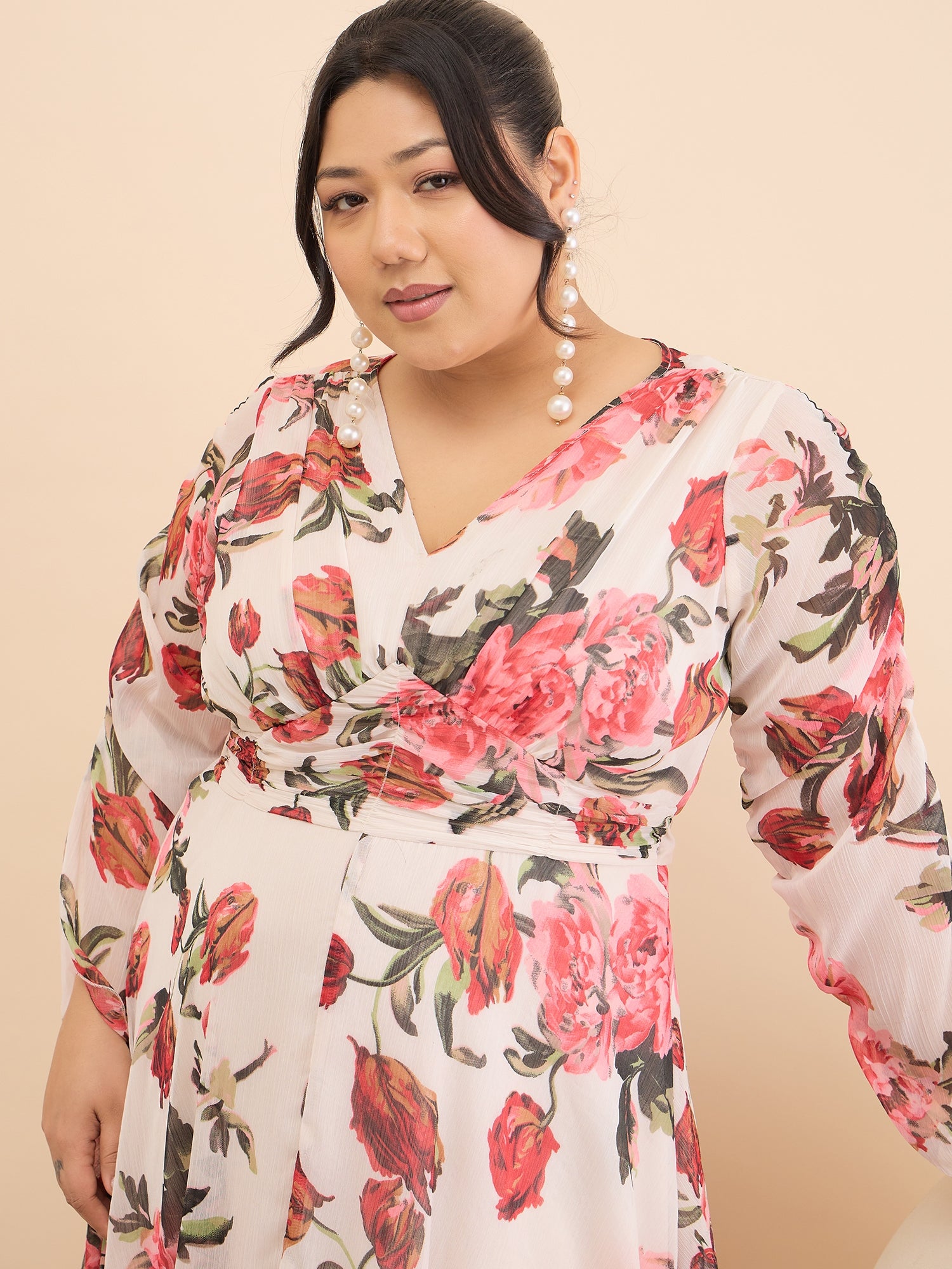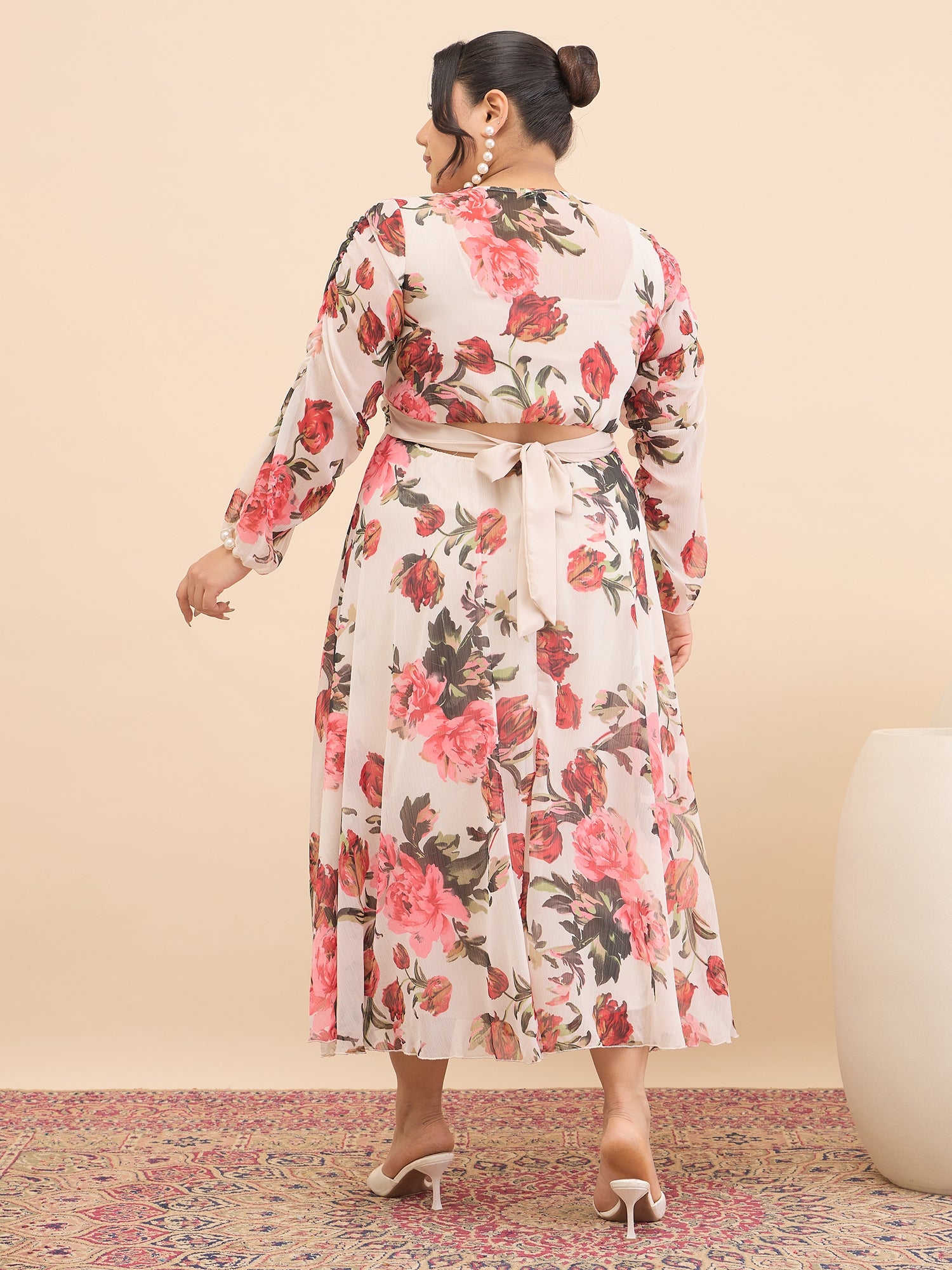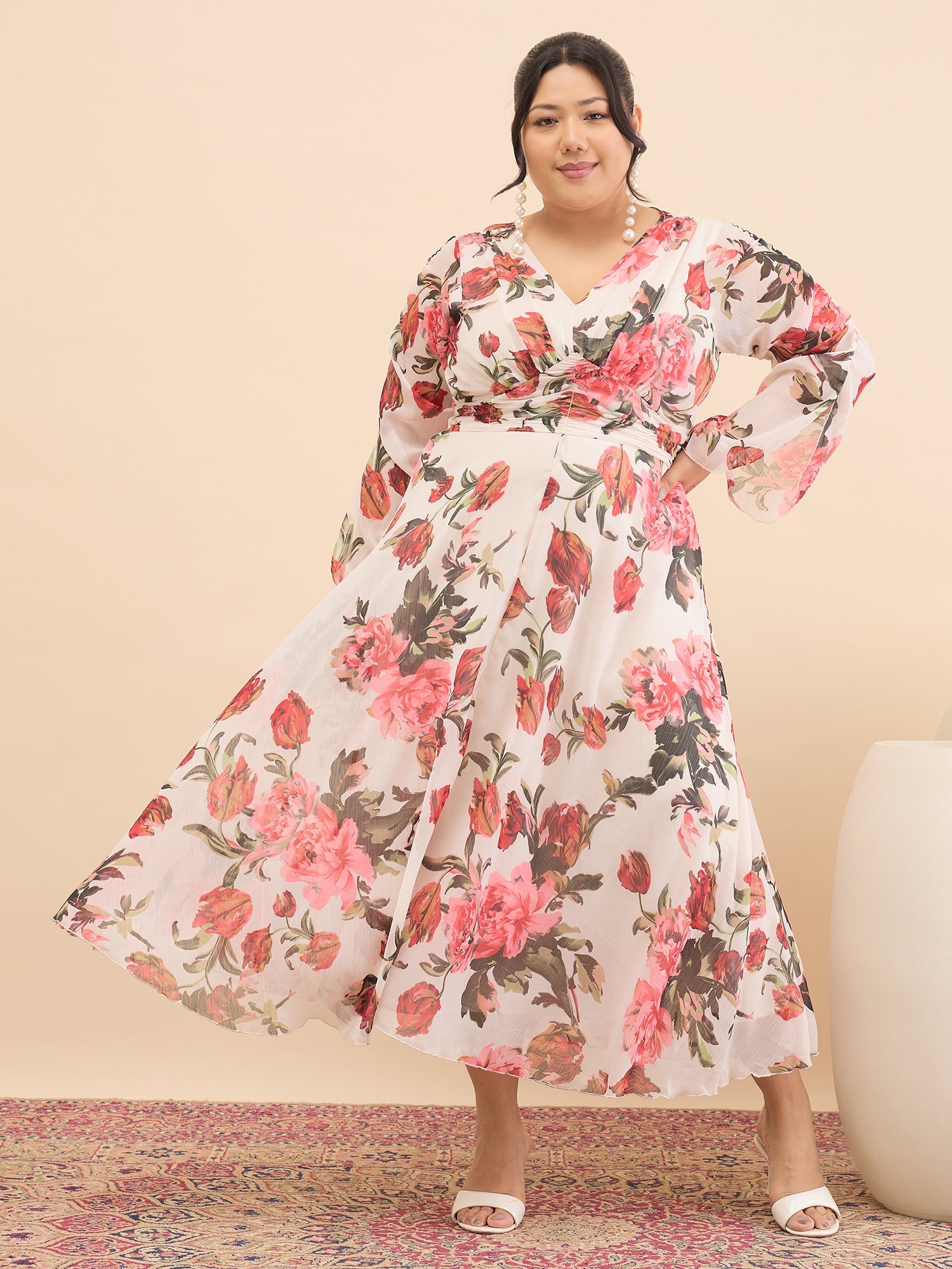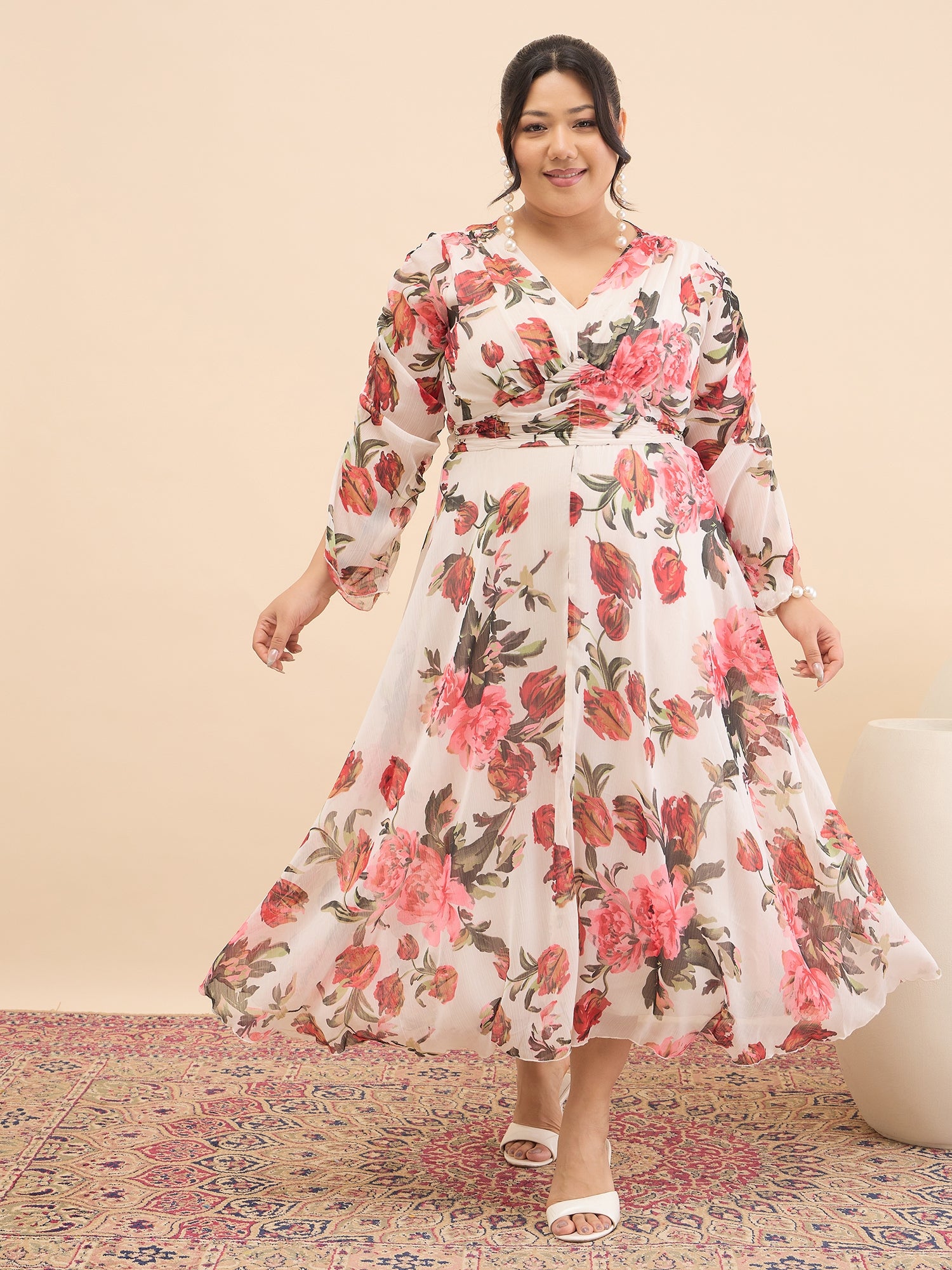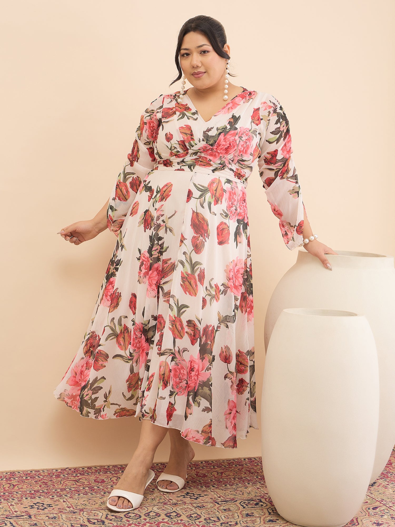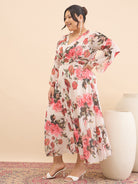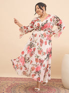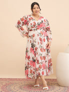 Antheaa Curve Floral Print Chiffon Midi Dress