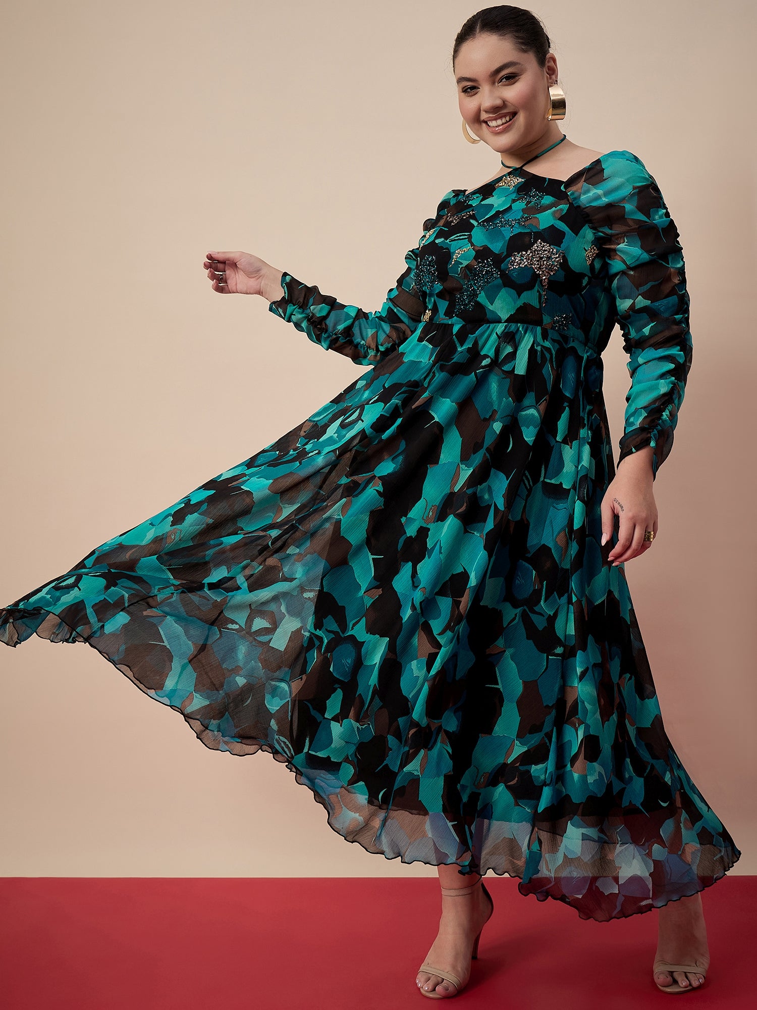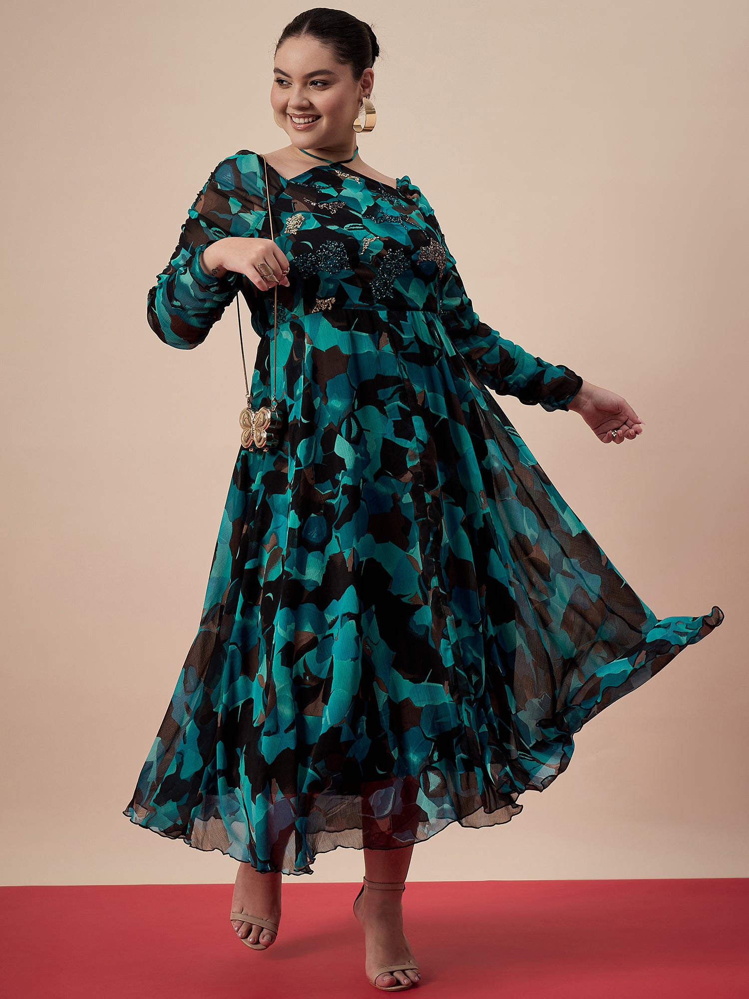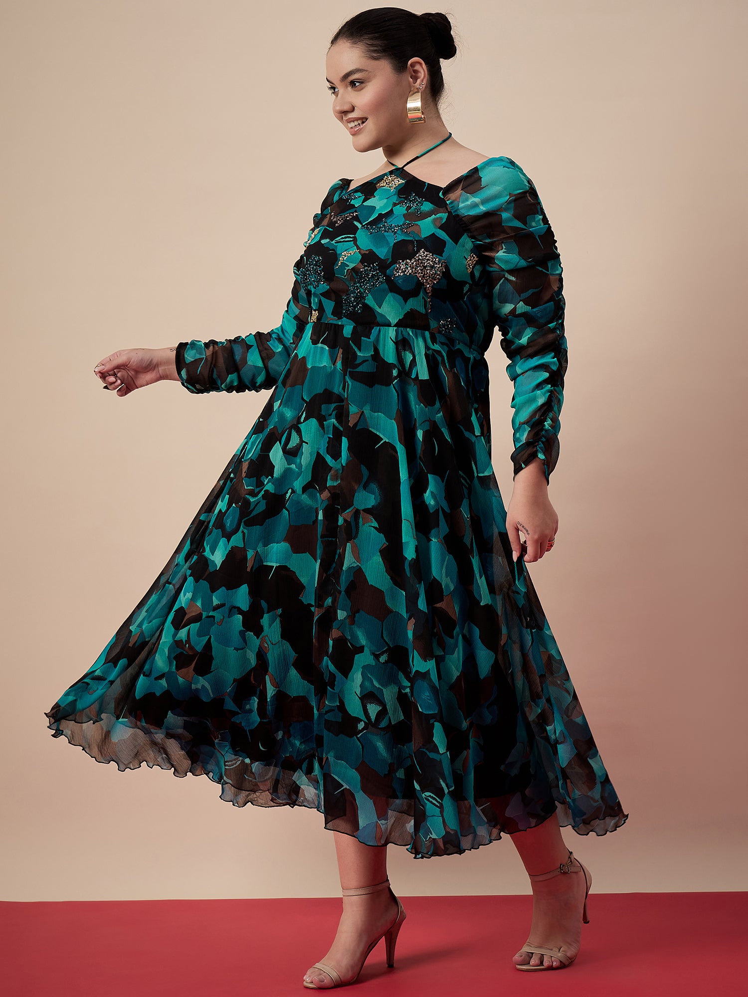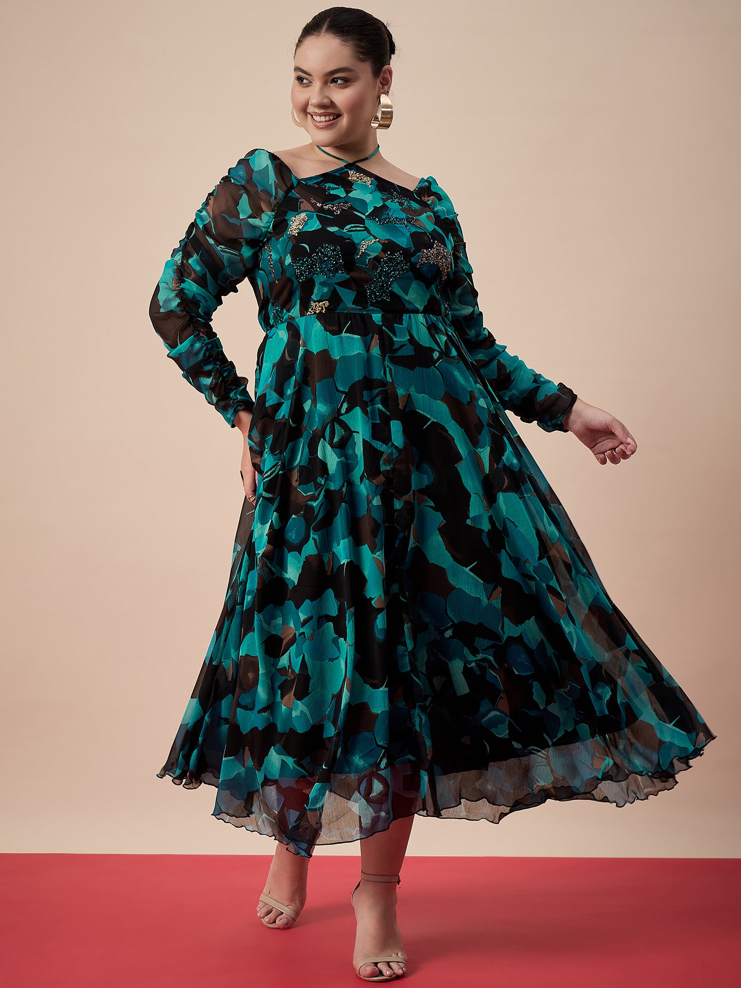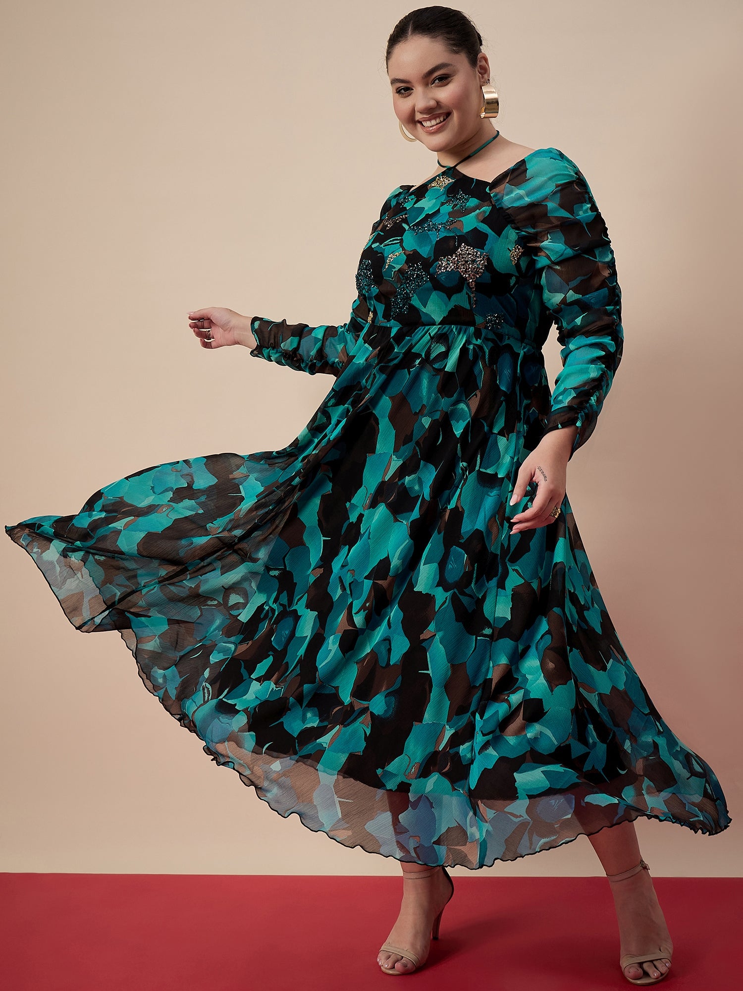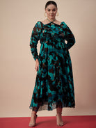 Antheaa Curve Women Printed & Embellished Fit & Flare Midi Dress