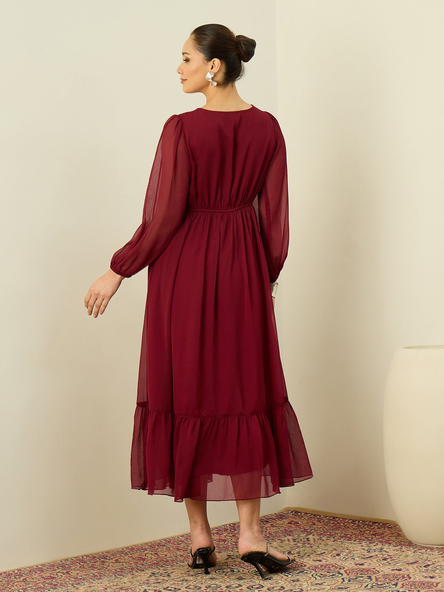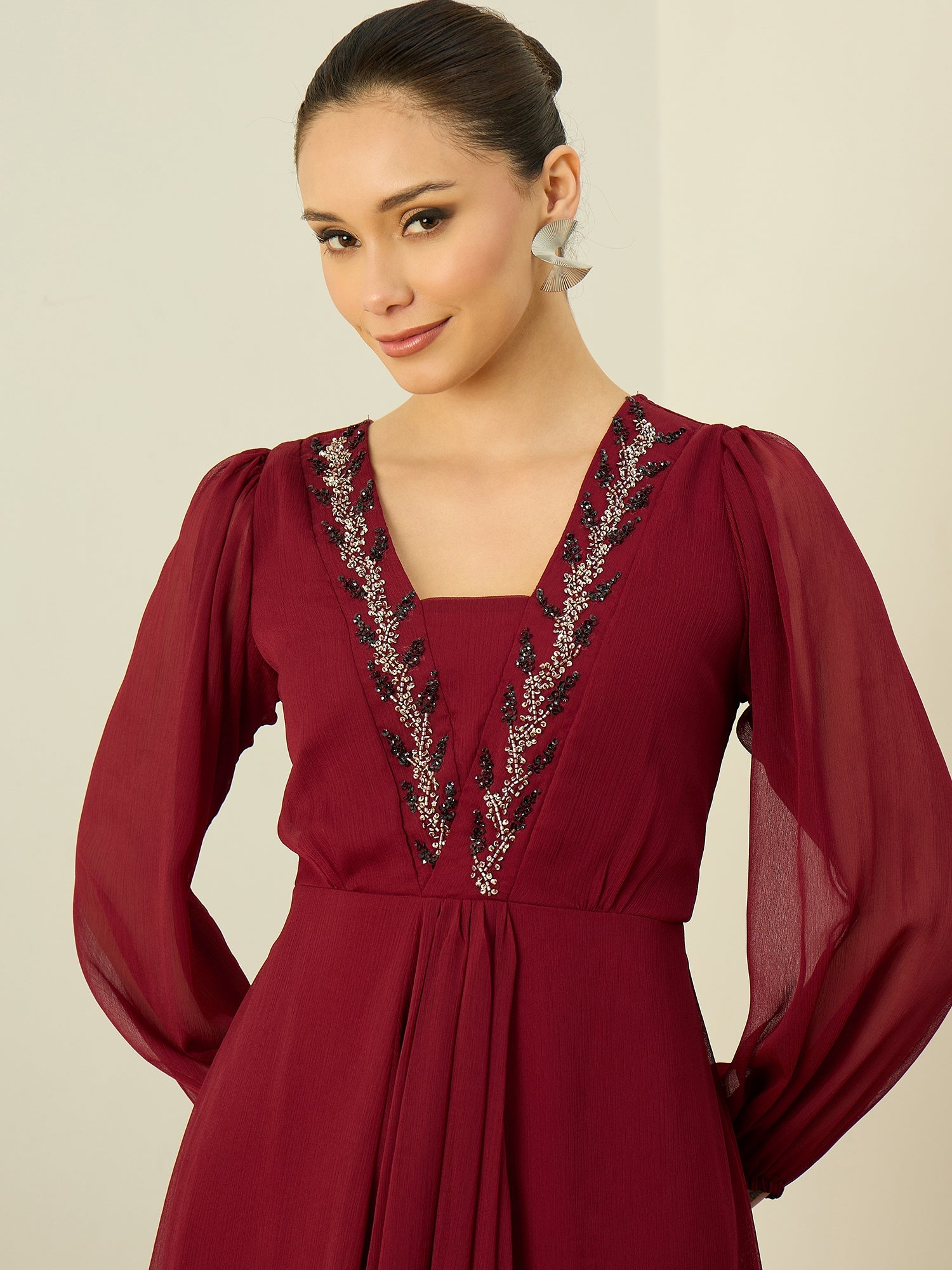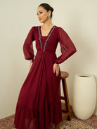 - Maroon and Maroon Embellished Fit & Flare dresses
