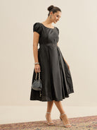 - Black and black solid fit & flare dress