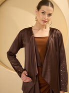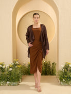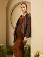 Antheaa Embellished Square Neck Ruched DetailsvA-Line Midi Dress With Jacket