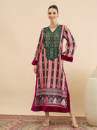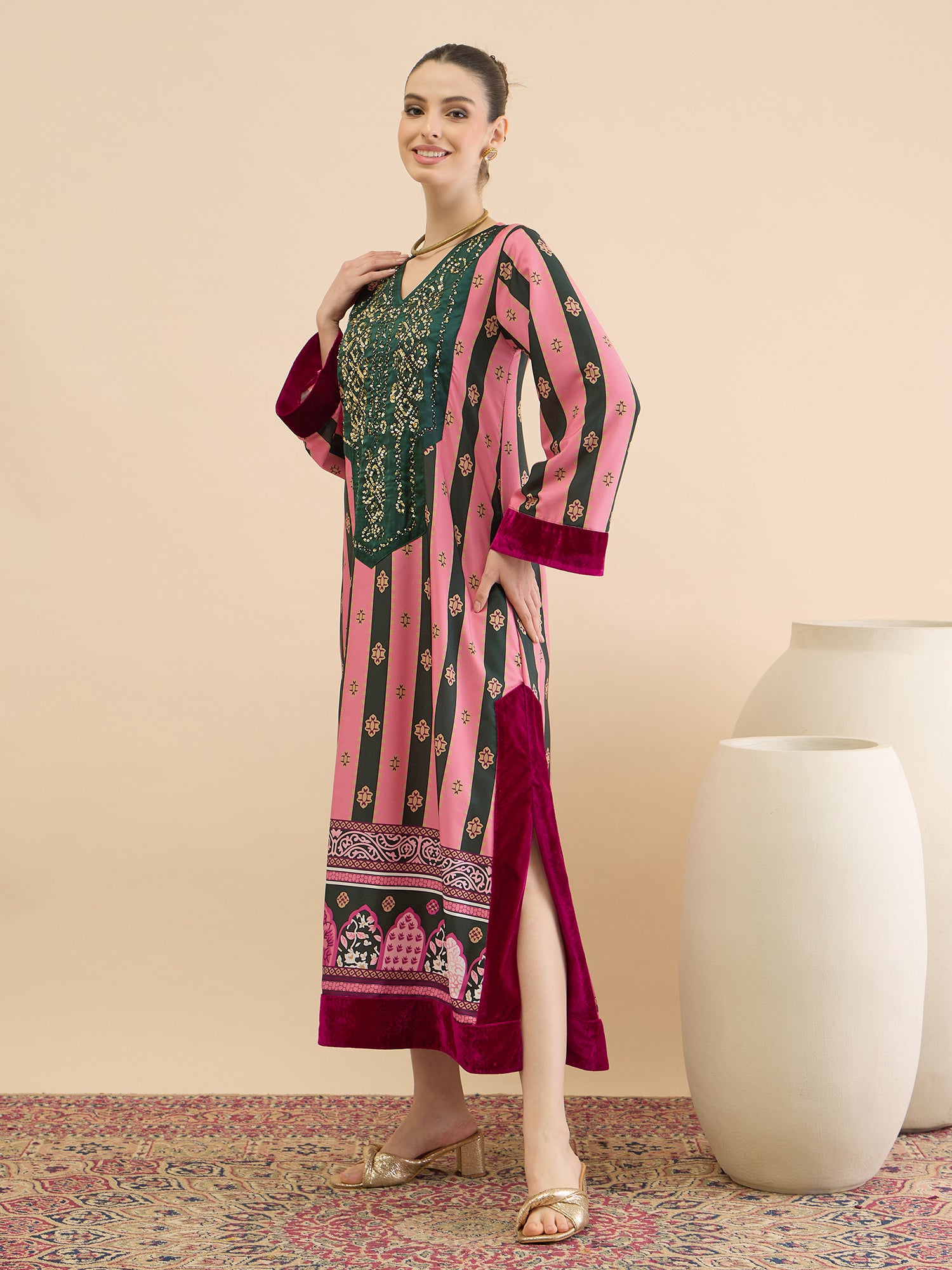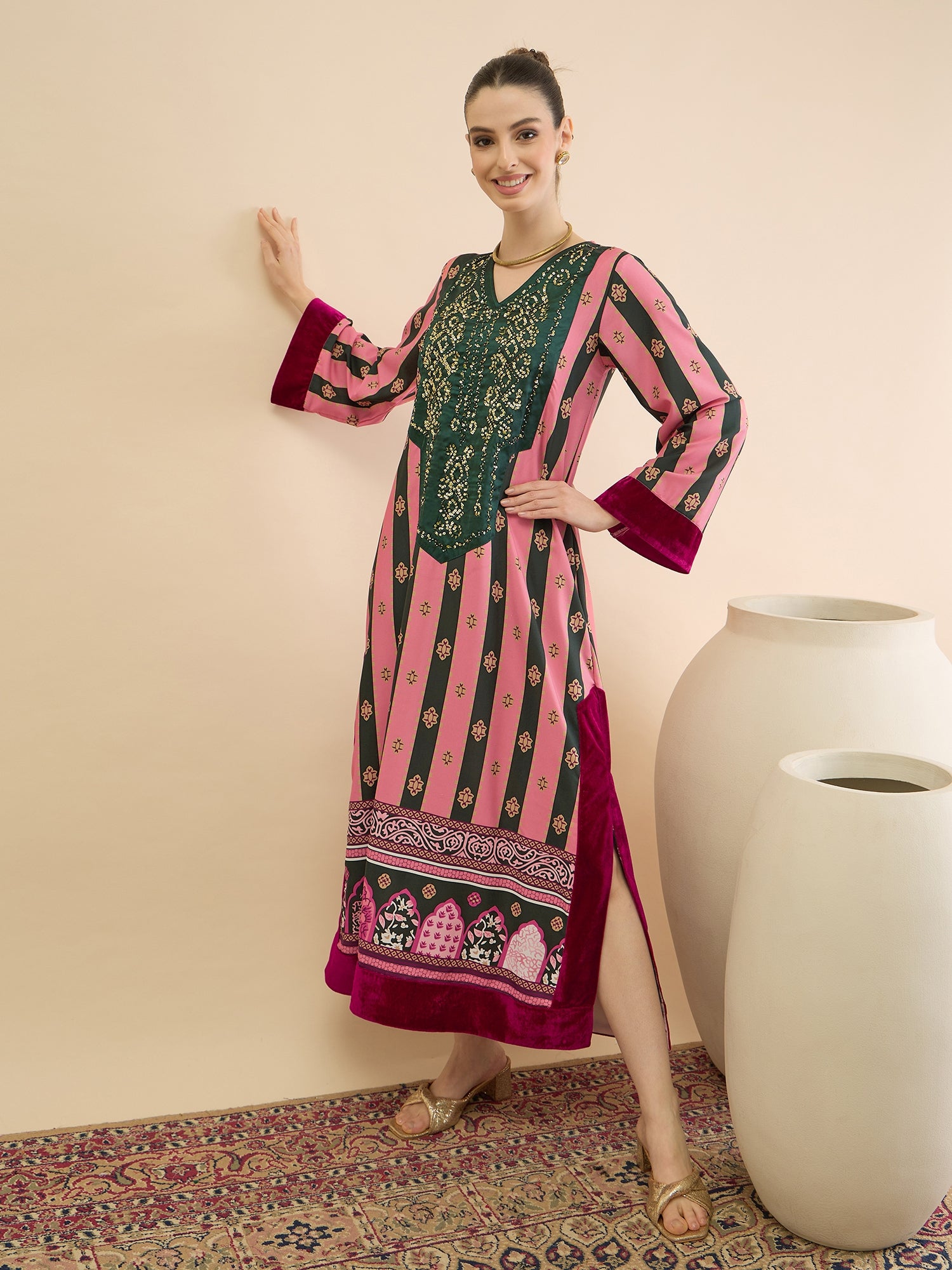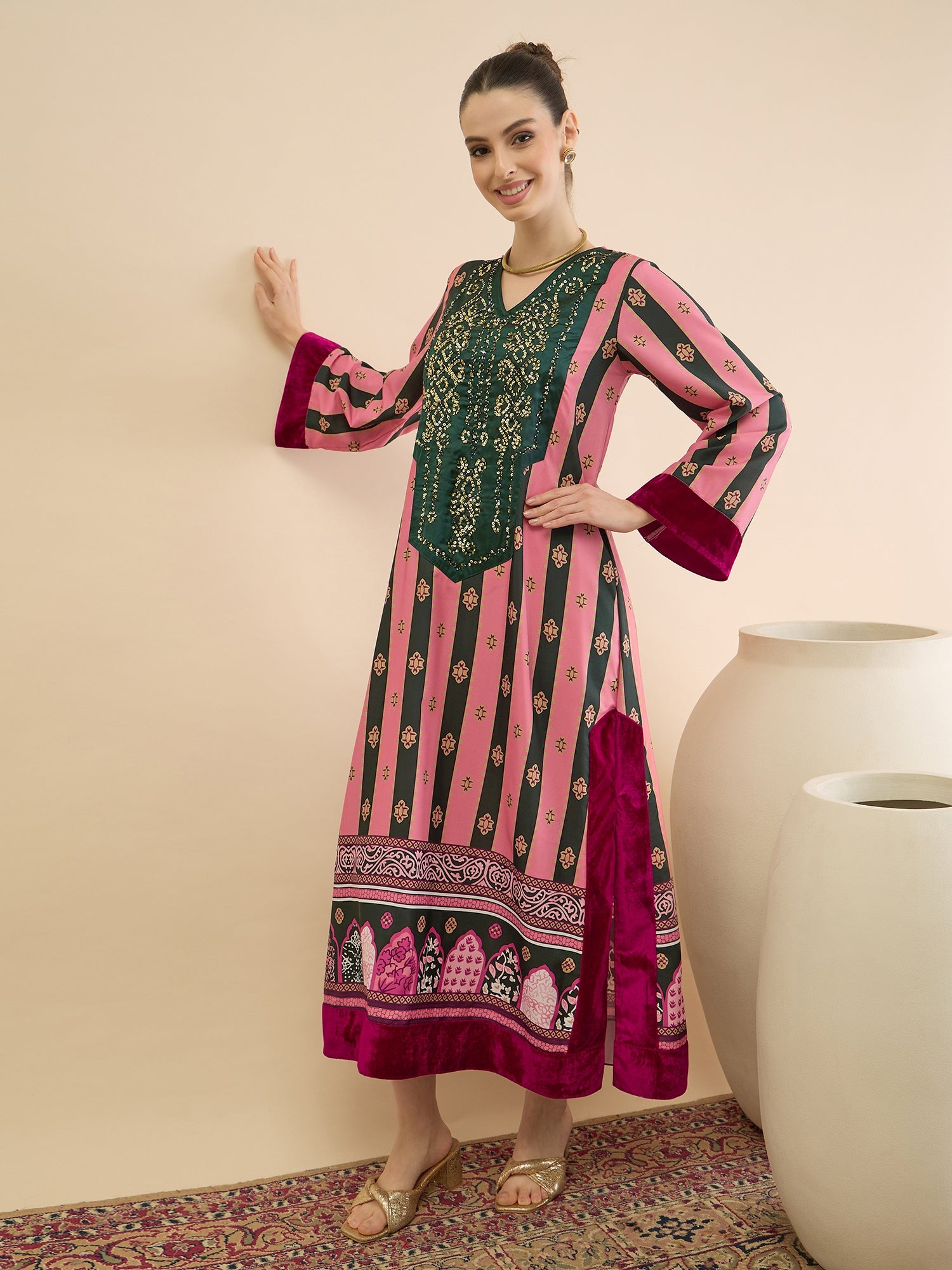 Antheaa Ethnic Motifs Print & Embellished Velvet Maxi Dress