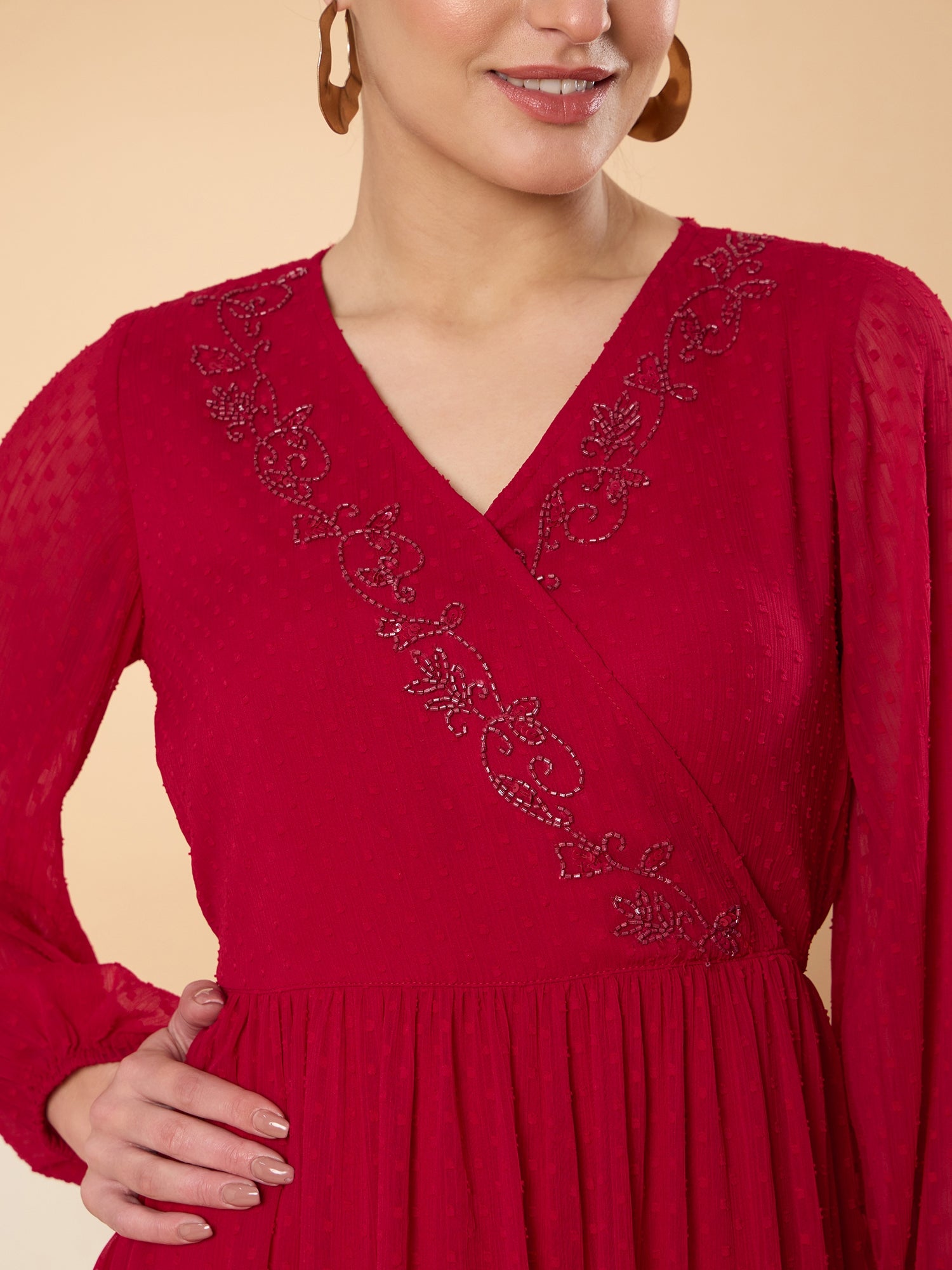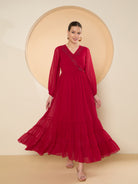 - Red solid maxi dress