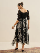 - Black and black floral print fit & flare dress